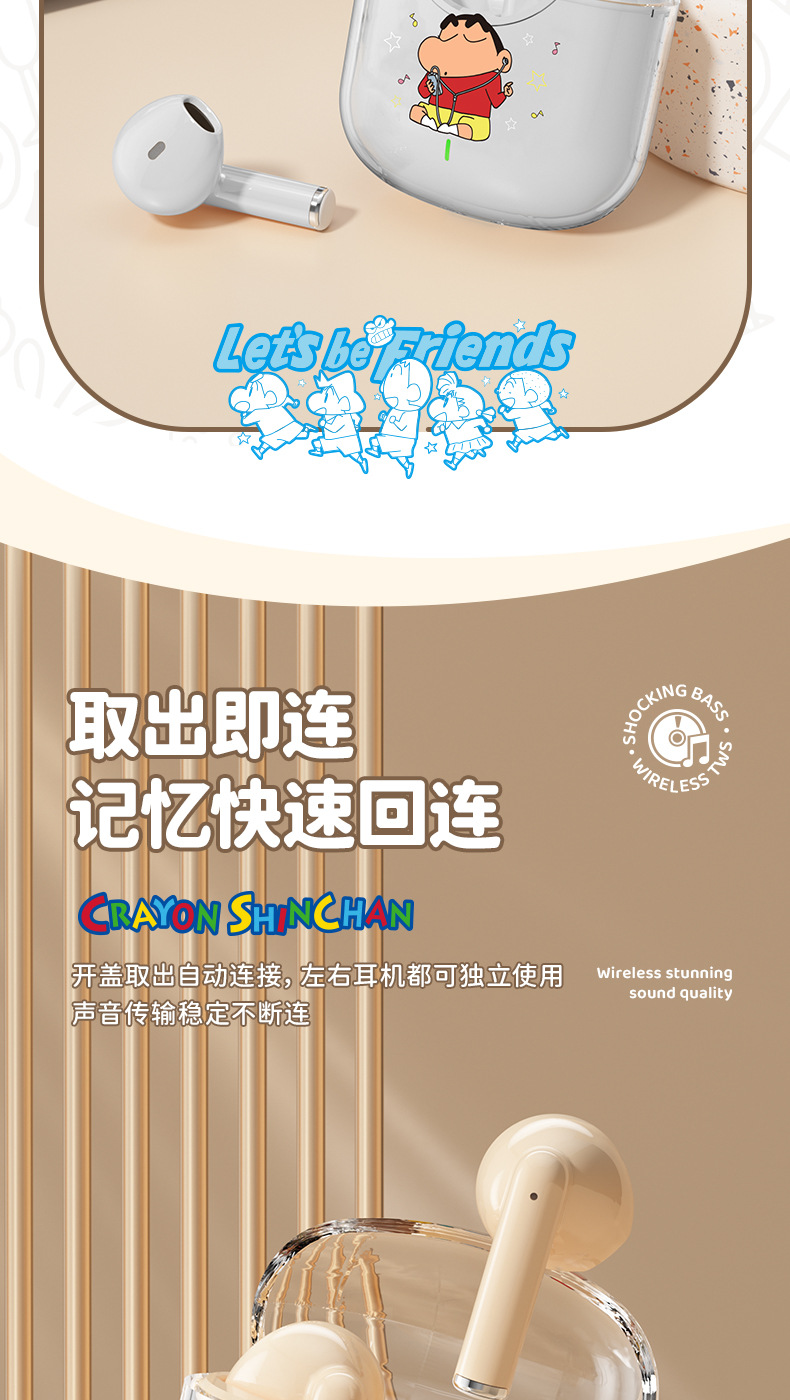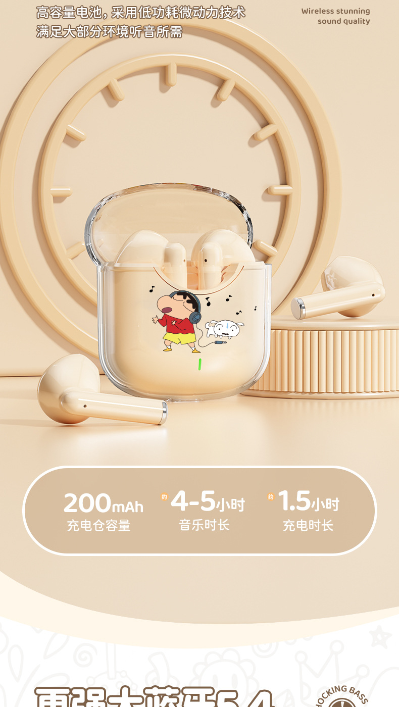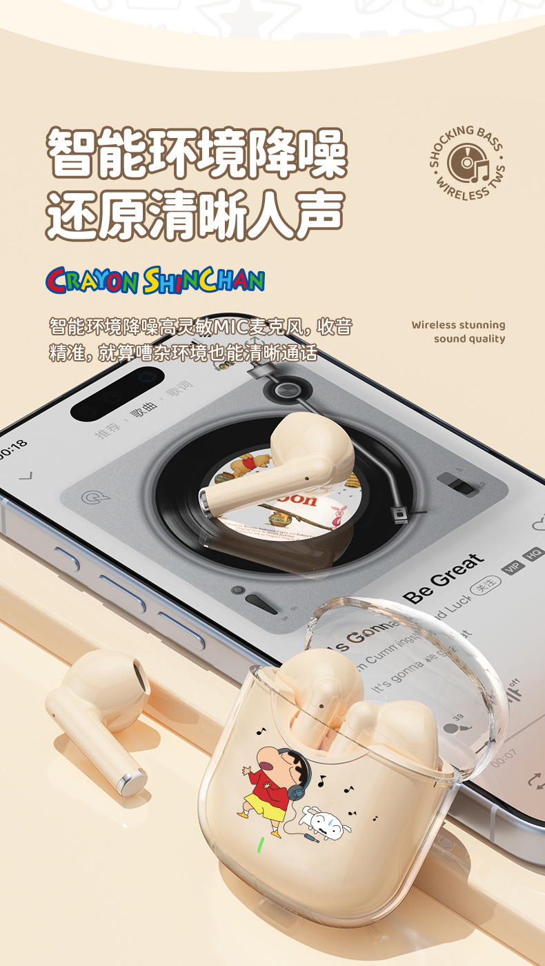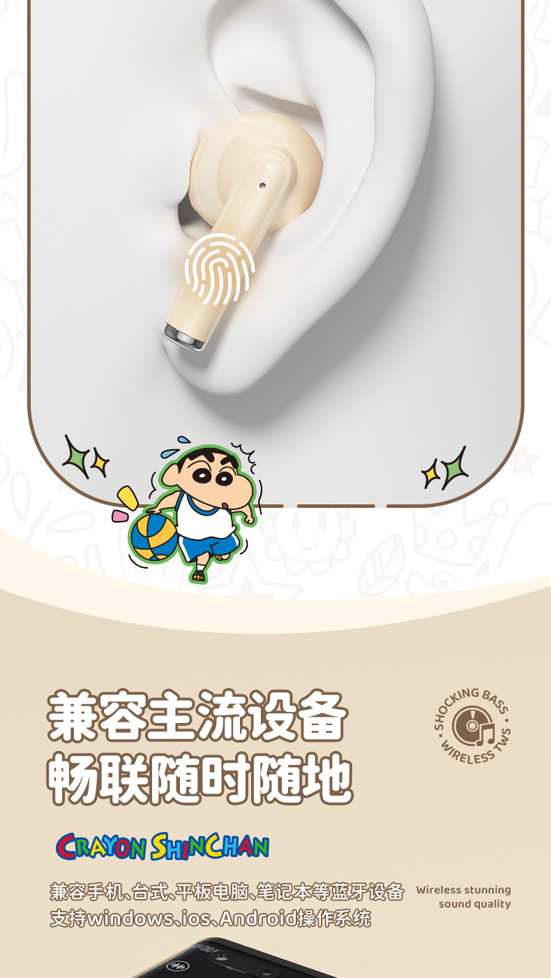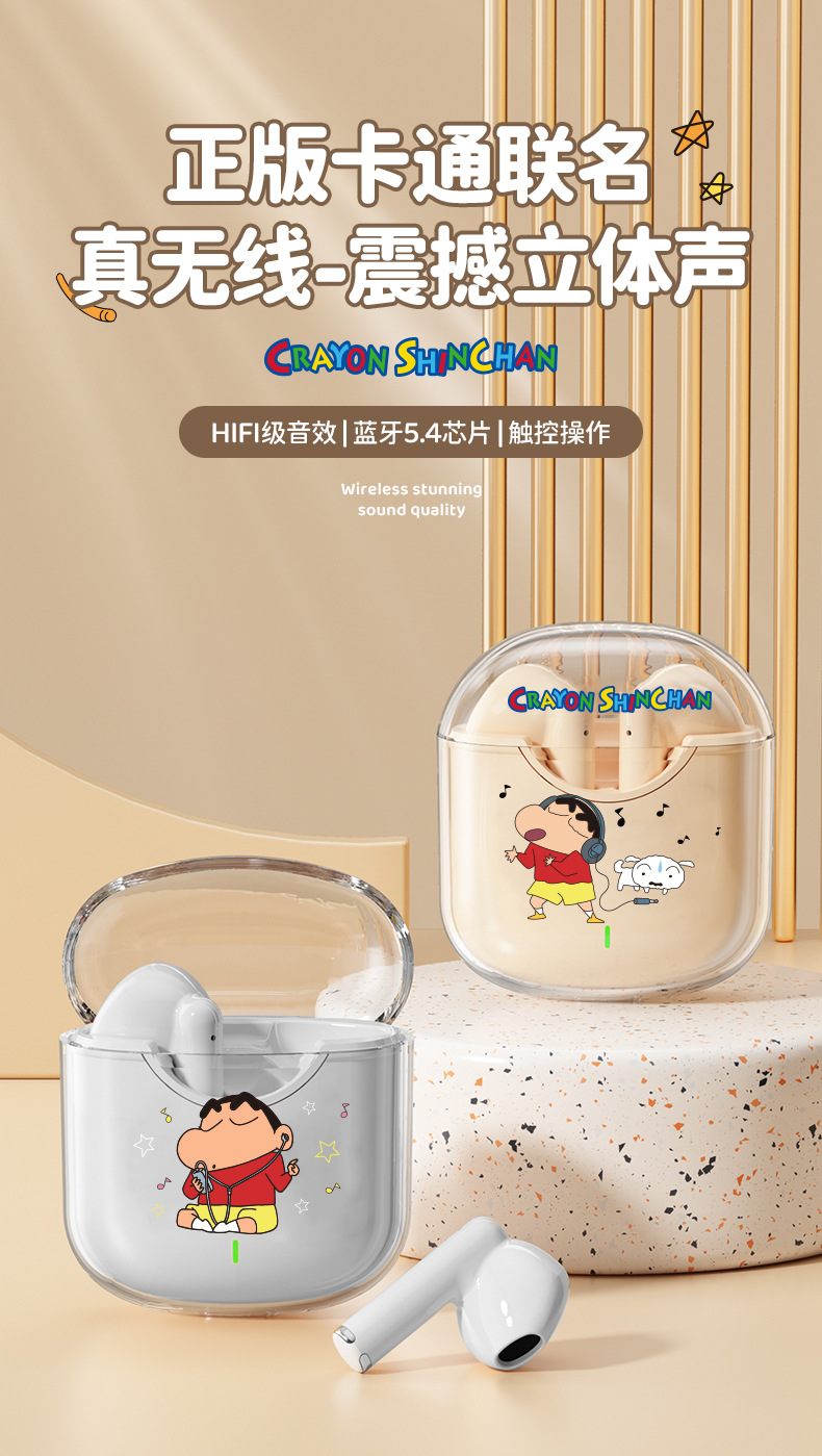 蜡笔小新联名蓝牙耳机高颜值环绕立体声半入耳式降噪高清通话耳麦