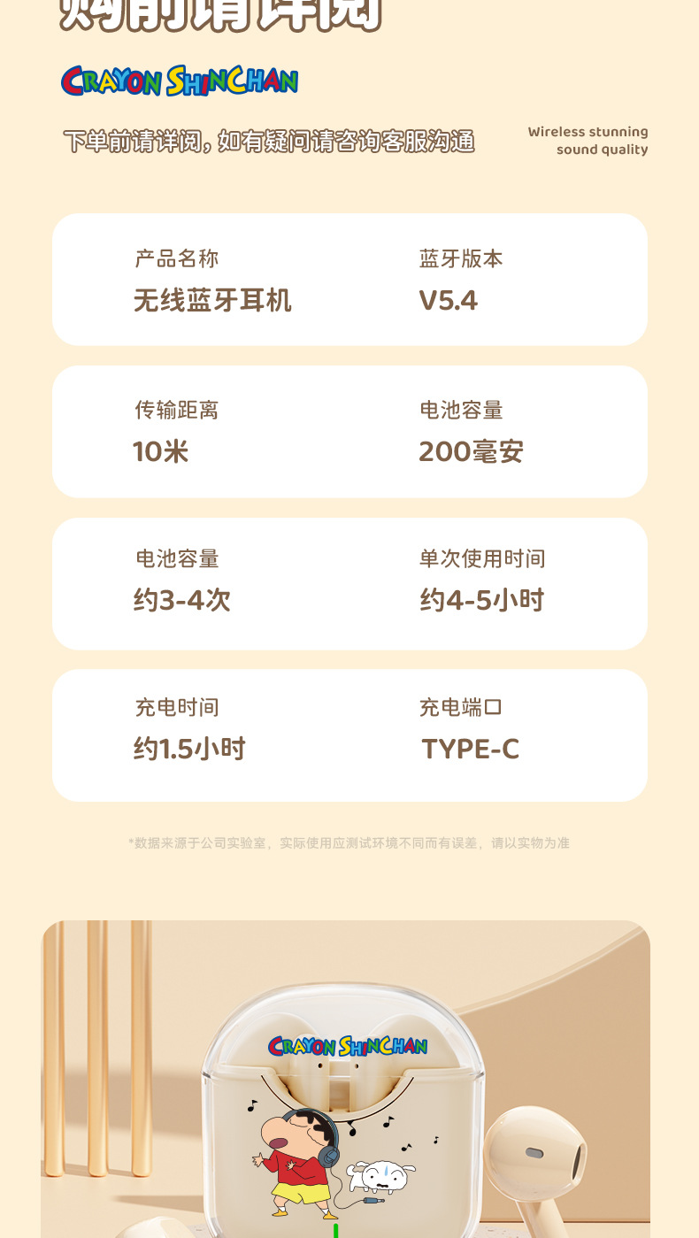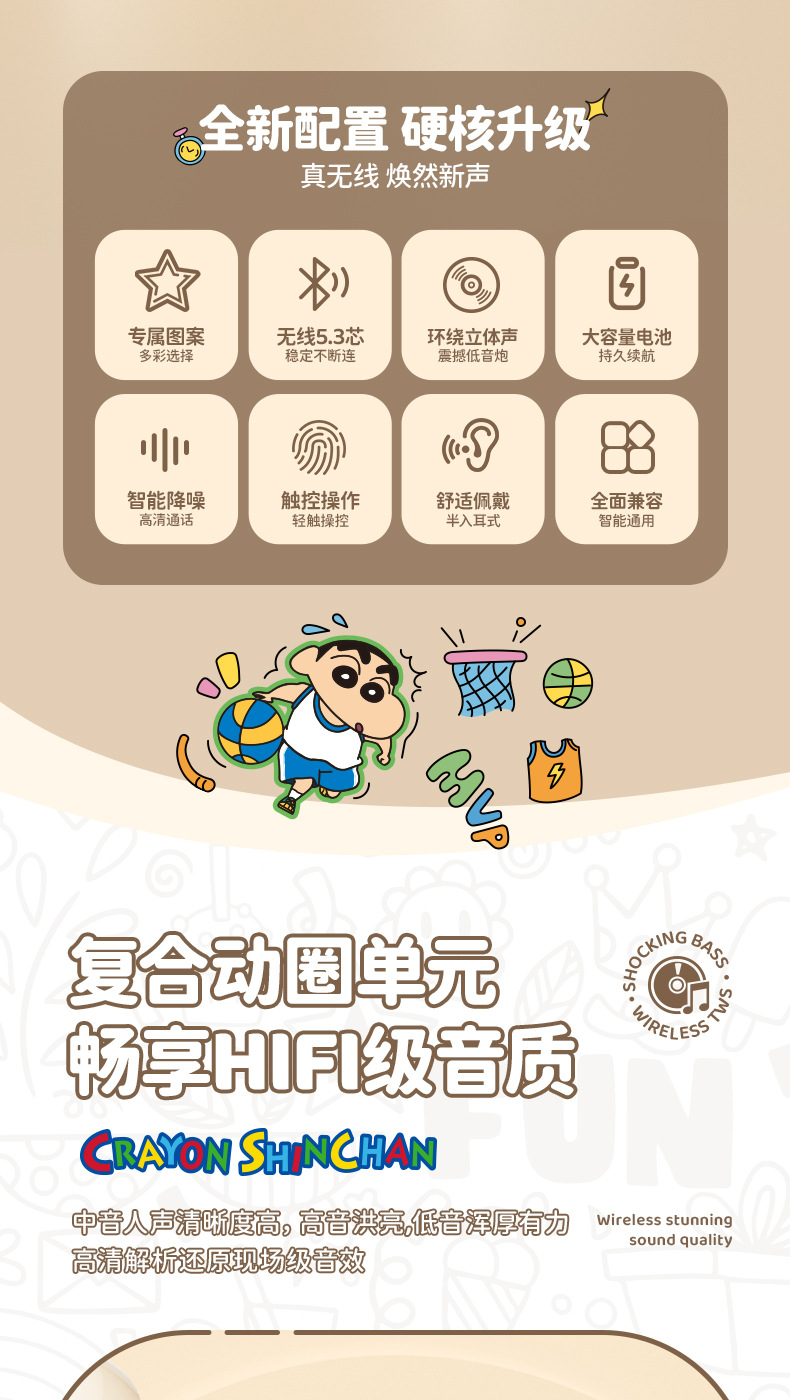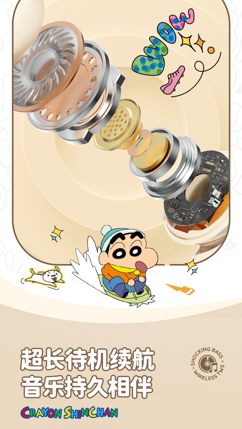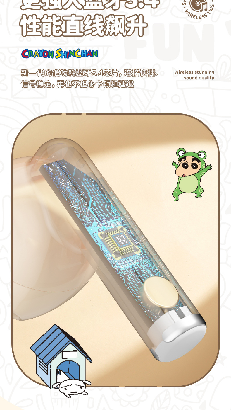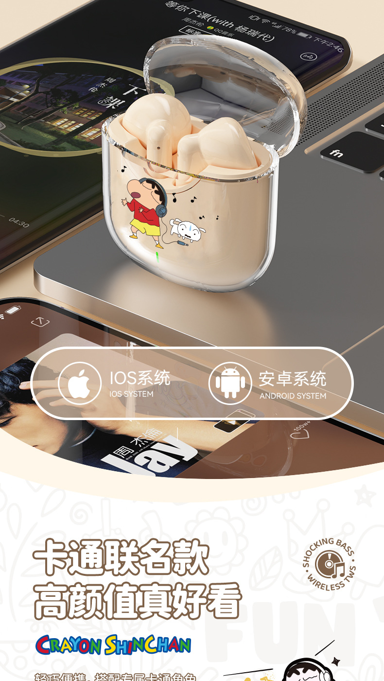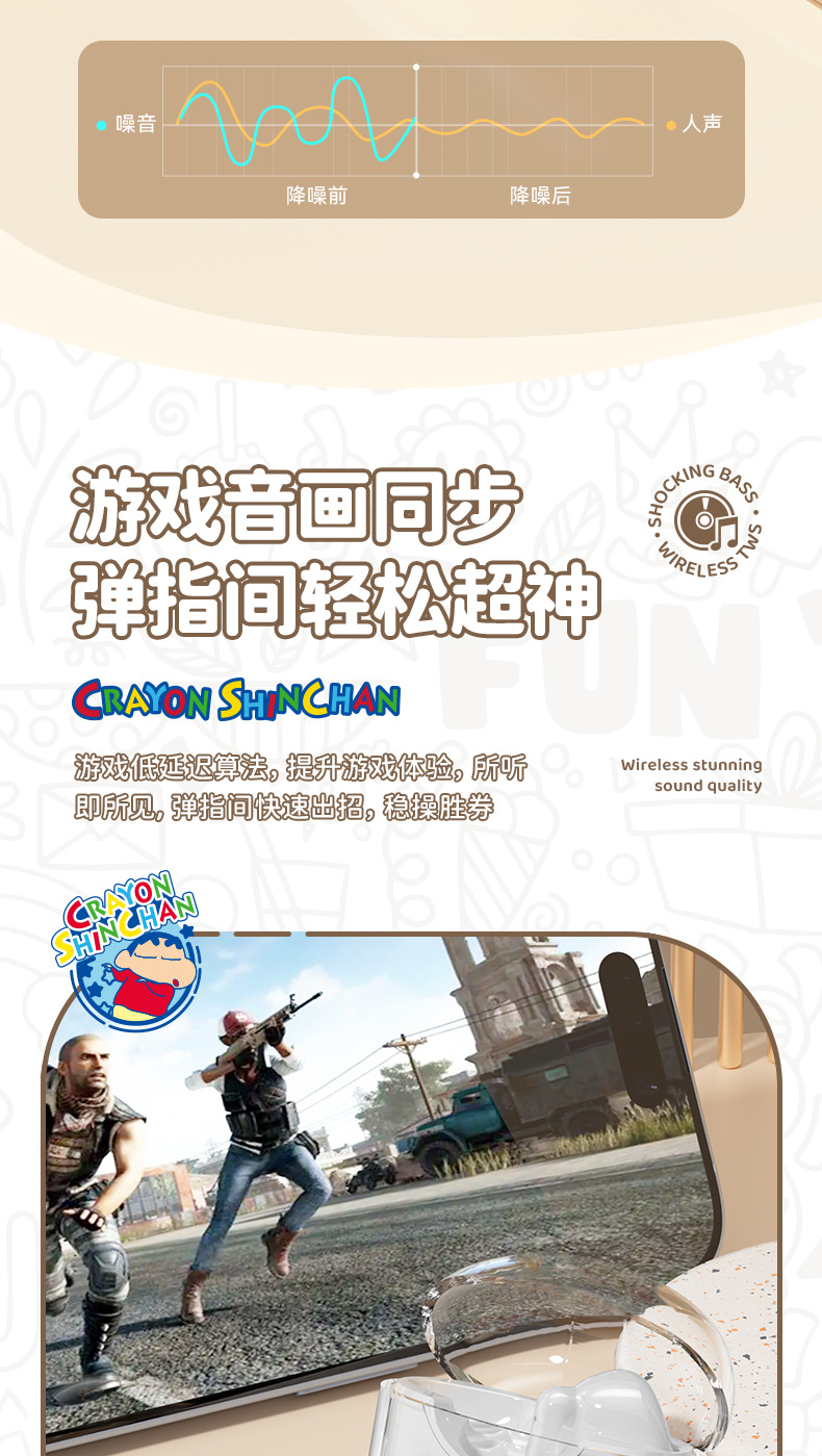 蜡笔小新联名蓝牙耳机高颜值环绕立体声半入耳式降噪高清通话耳麦