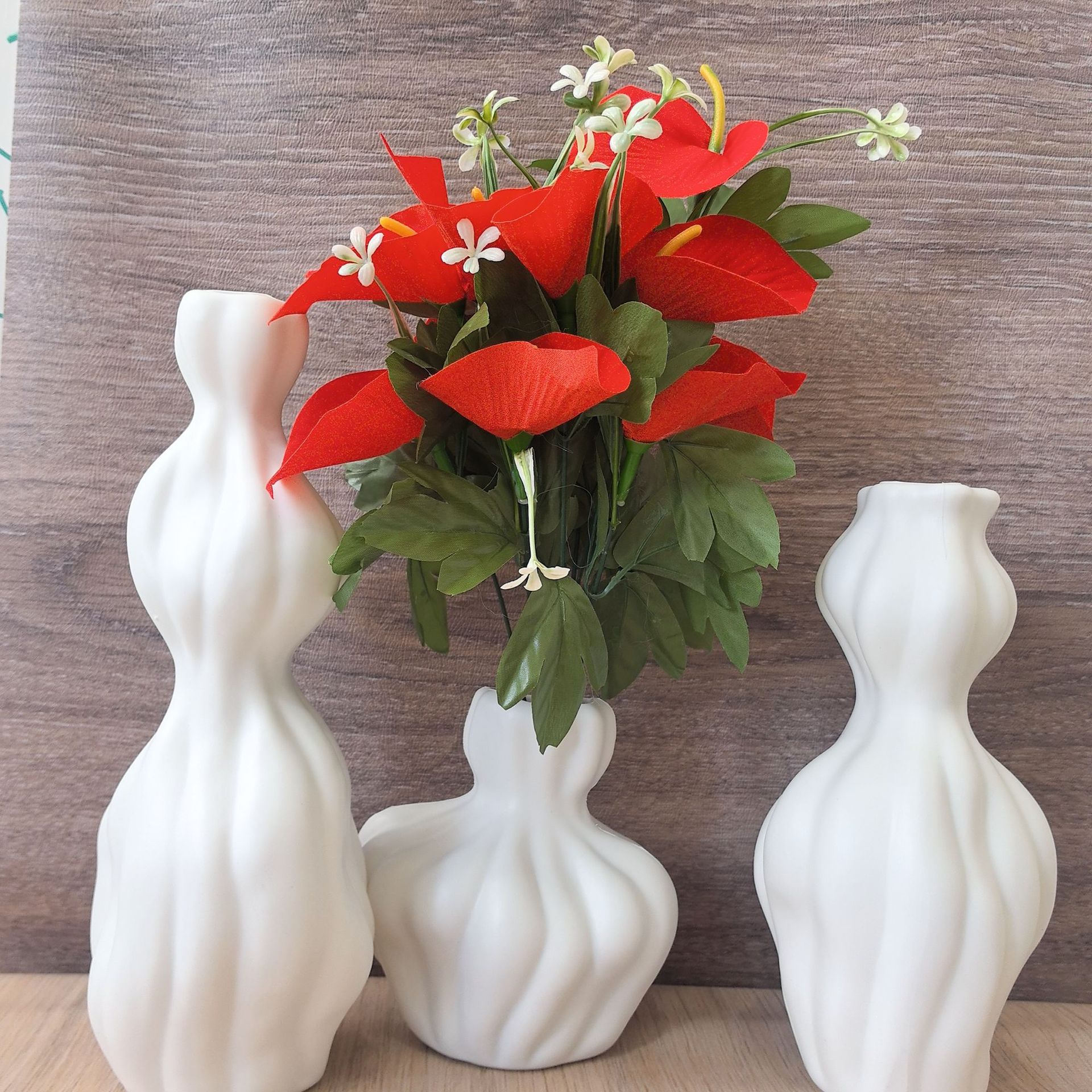 국경을 넘는 북유럽 플라스틱 모조 세라믹 꽃병 창조적 인 간단한 가벼운 고급 꽃 용기 홈 오피스 장식 장식품