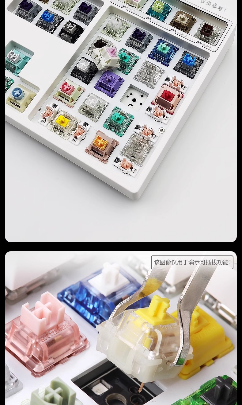当前价格仅为白菜豆腐轴价格,用户可自行选择配自已喜欢的键帽和轴,支持DIY,更换为其它轴和特色键帽价格请咨询客服!