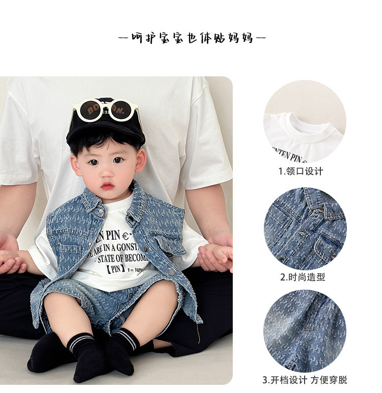 여름 아기 소년 부드러운 데님 패션 트렌드 작업복 조끼 탑 반바지 정장 여름 얇은 3 피스 세트스토어 가기