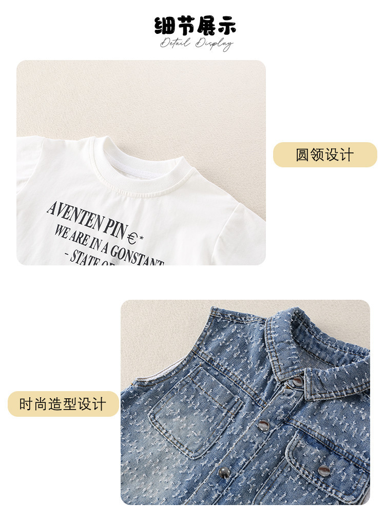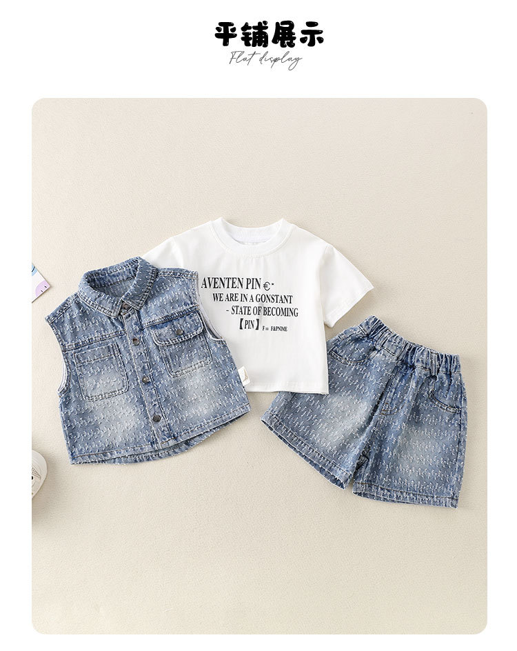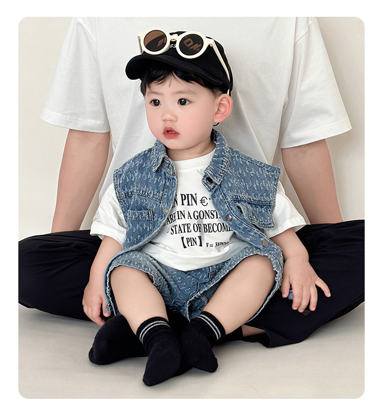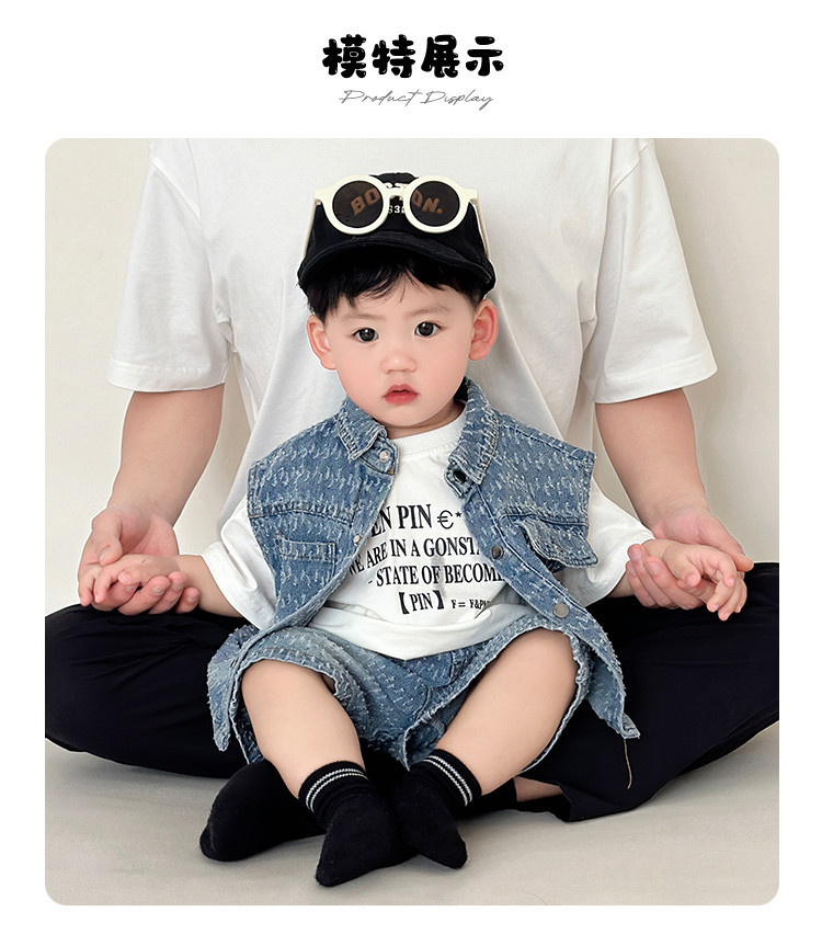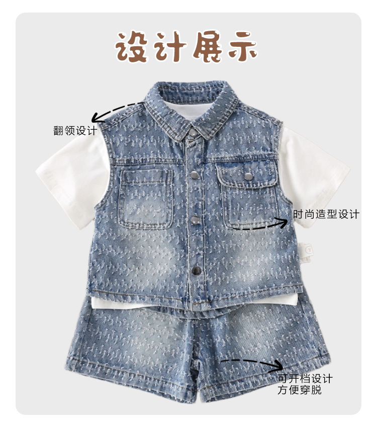 여름 아기 소년 부드러운 데님 패션 트렌드 작업복 조끼 탑 반바지 정장 여름 얇은 3 피스 세트