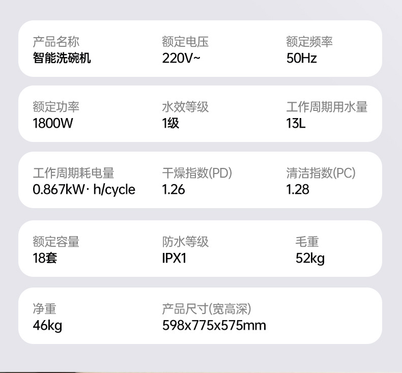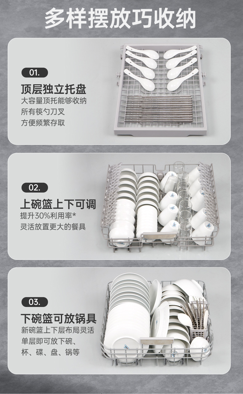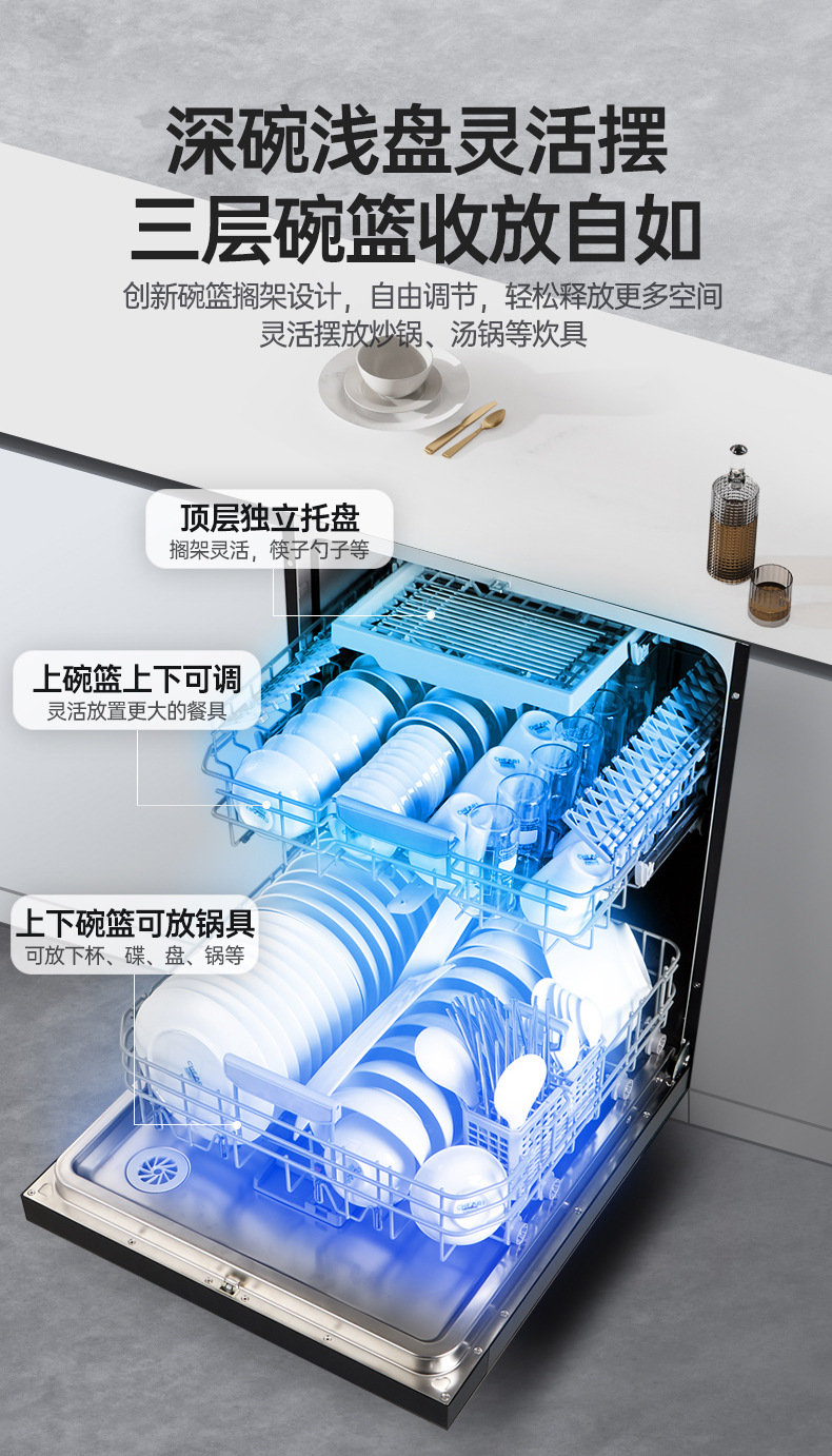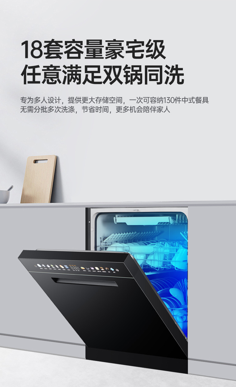 [계층형 세척] 대용량 가정용 전자동 식기세척기 18세트 지능형 AI 지능형 세척 3층 독립형 및 이중 용도