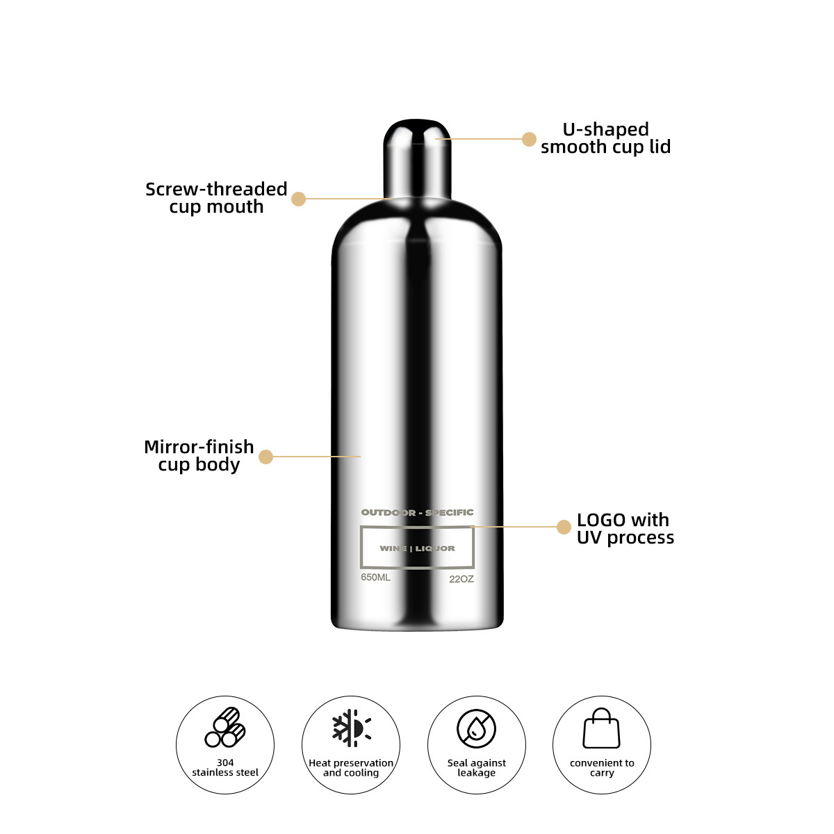 국경 간 인기 판매 전기 도금 강철 천연 색상 워터 컵 현대 304 스테인레스 스틸 두꺼운 진공 주전자 야외 등산 주전자스토어 가기