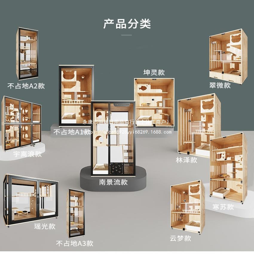야옹 고양이 빌라 파노라마 유리 공간을 차지하지 않는 가정용 실내 고양이 케이지 고양이 집 클라이밍 프레임 애완 동물 가게 Kunling스토어 가기