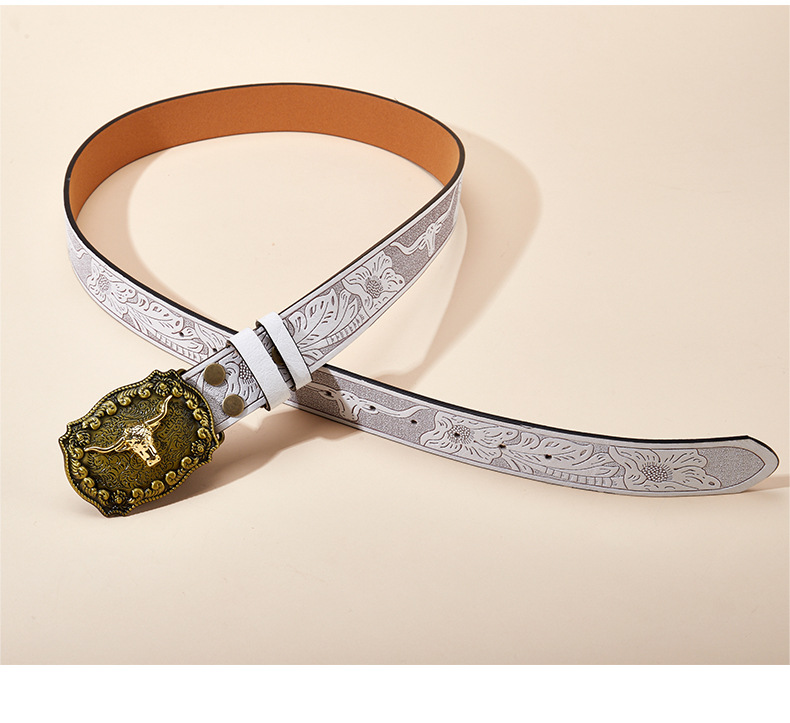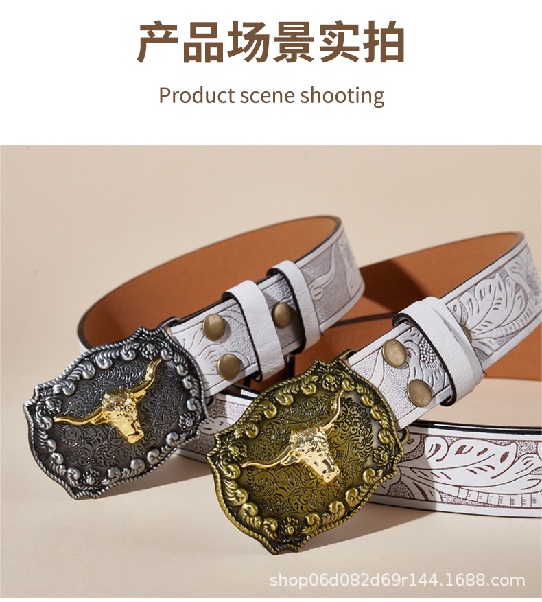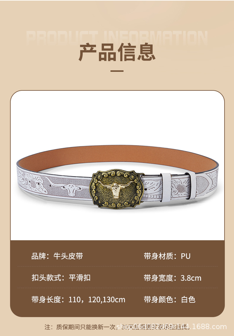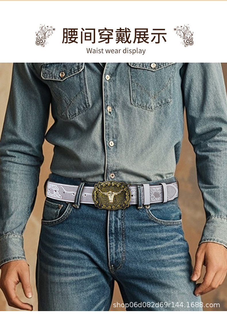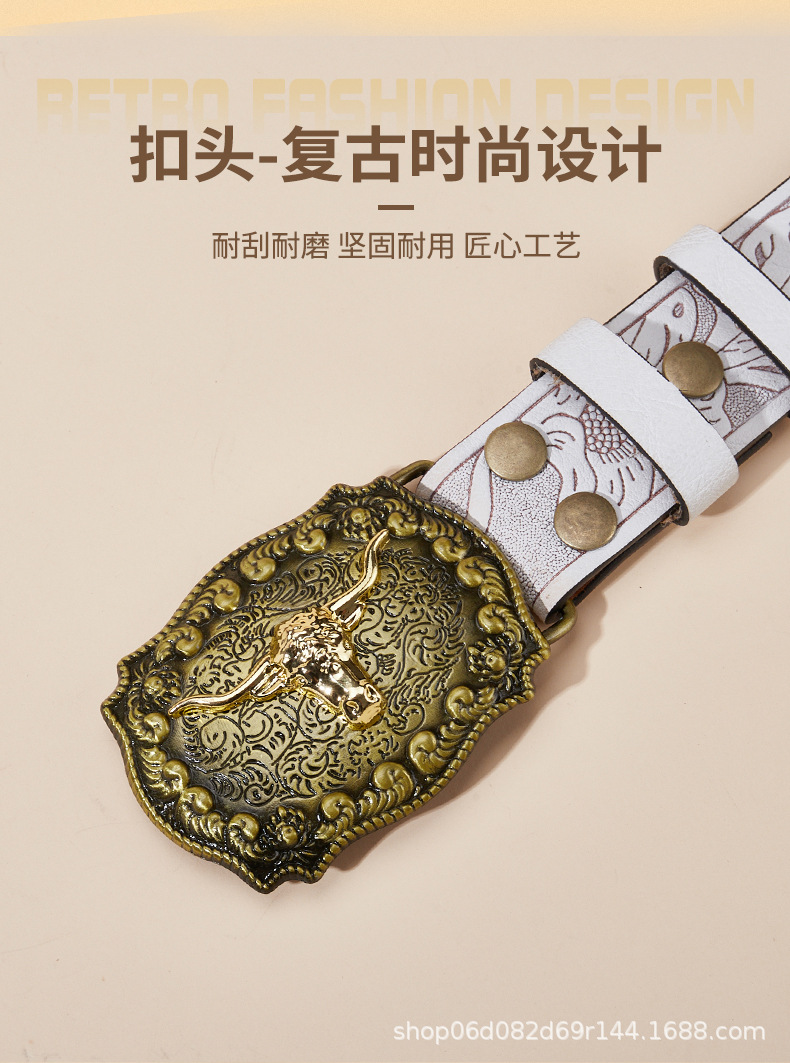 국경 간 서부 데님 벨트 니우 투 빅 플레이트 버클 화이트 빈티지 사회 젊은 남성과 여성 펑크 가죽 벨트