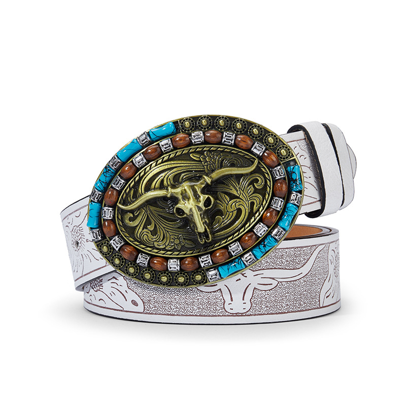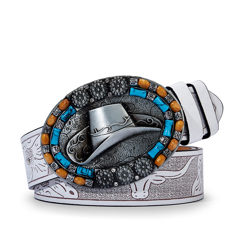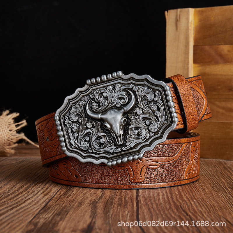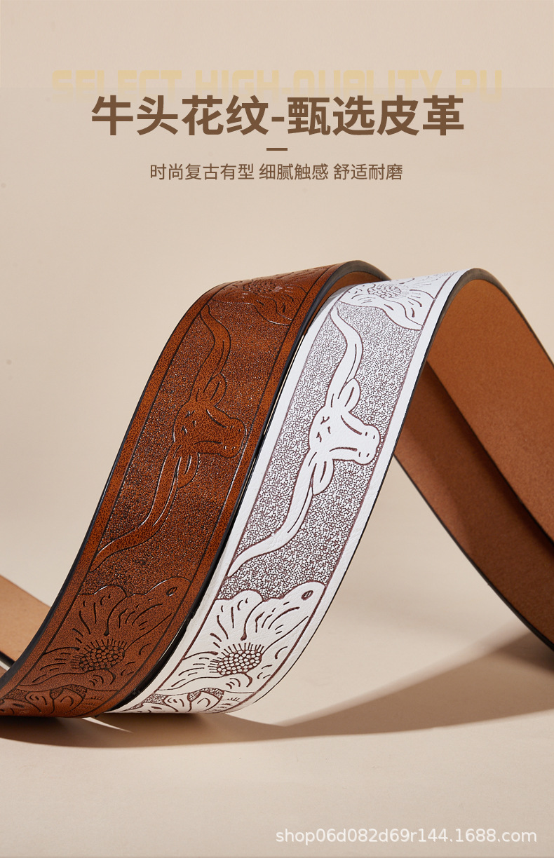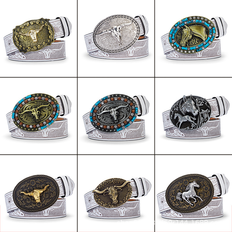 국경 간 서부 데님 벨트 니우 투 빅 플레이트 버클 화이트 빈티지 사회 젊은 남성과 여성 펑크 가죽 벨트