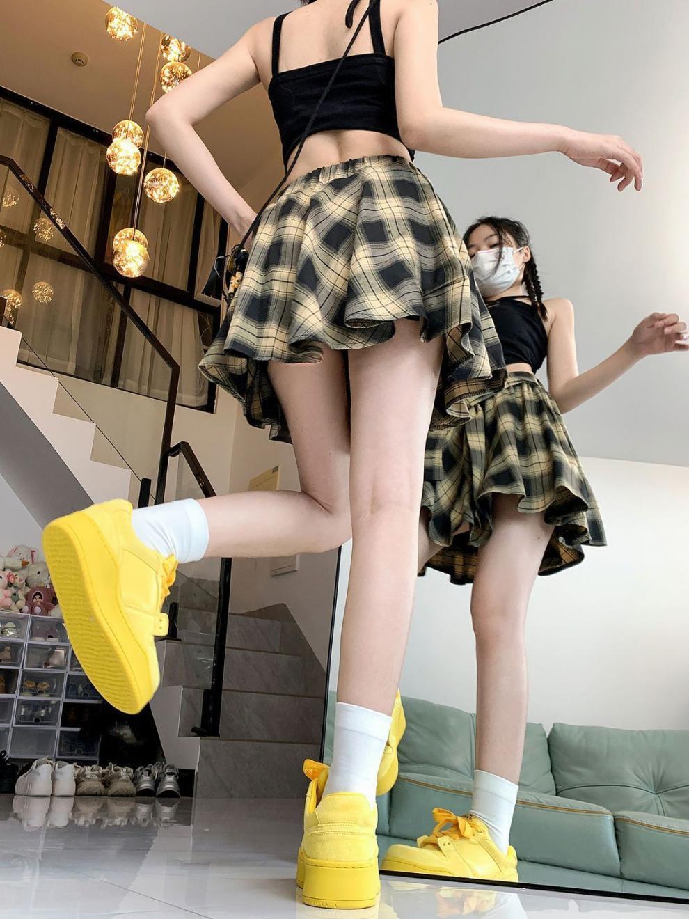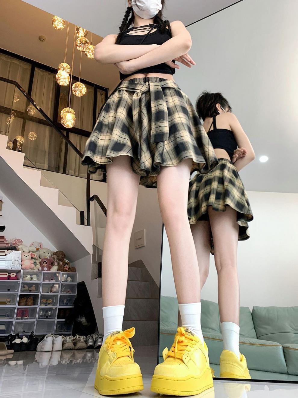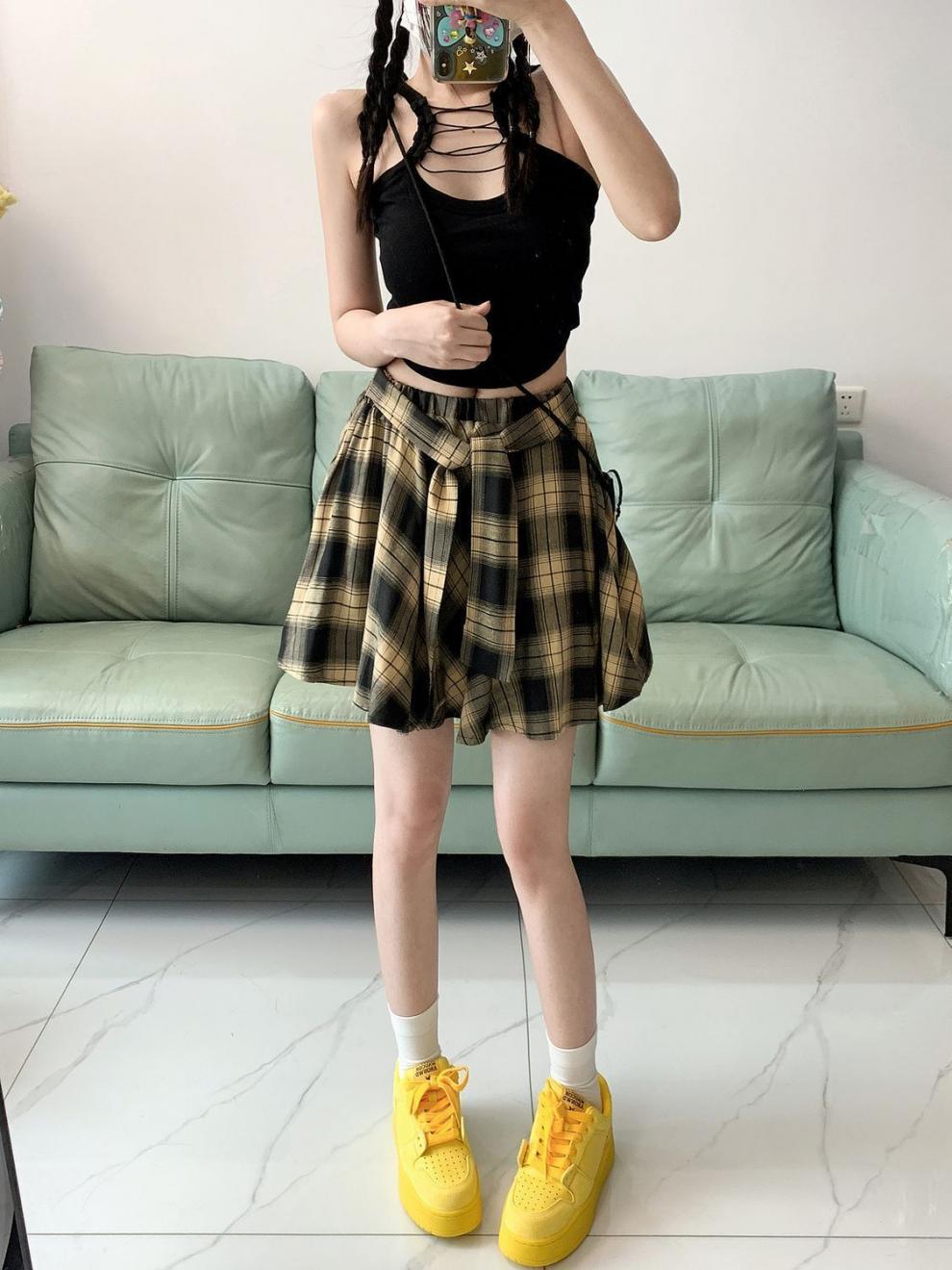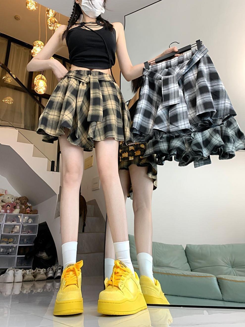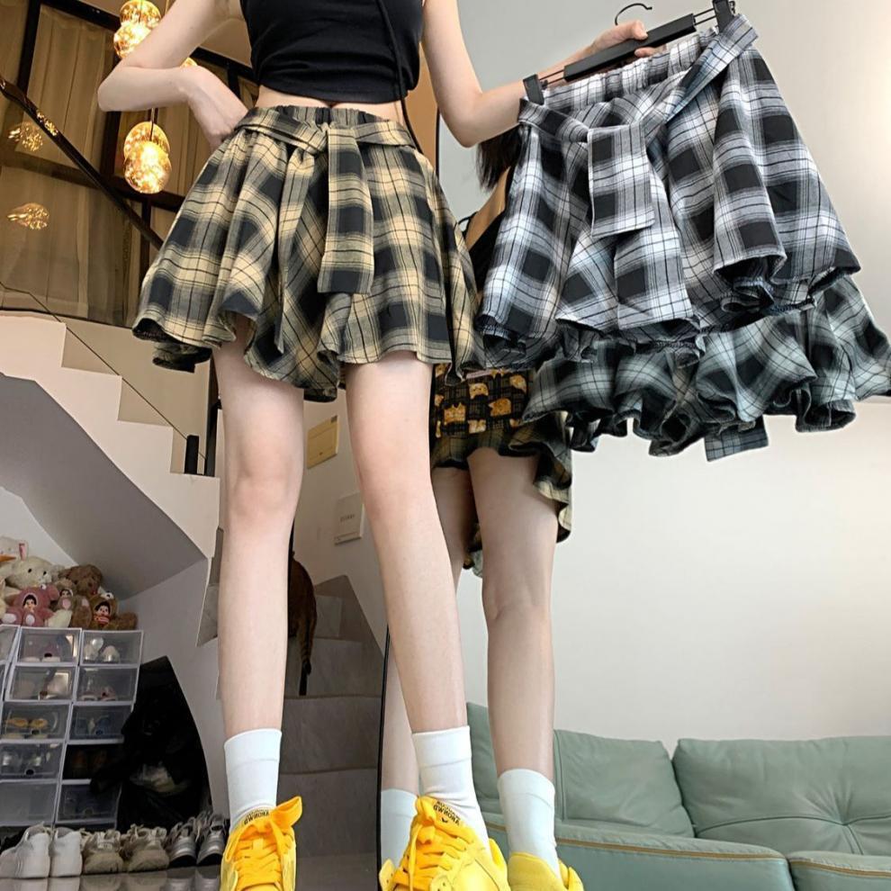 불규칙한 레트로 격자 무늬 스커트 여자 여름 올 매치 슬림 핏 눈부심 방지 아메리칸 스타일 핫 소녀 주름 치마스토어 가기