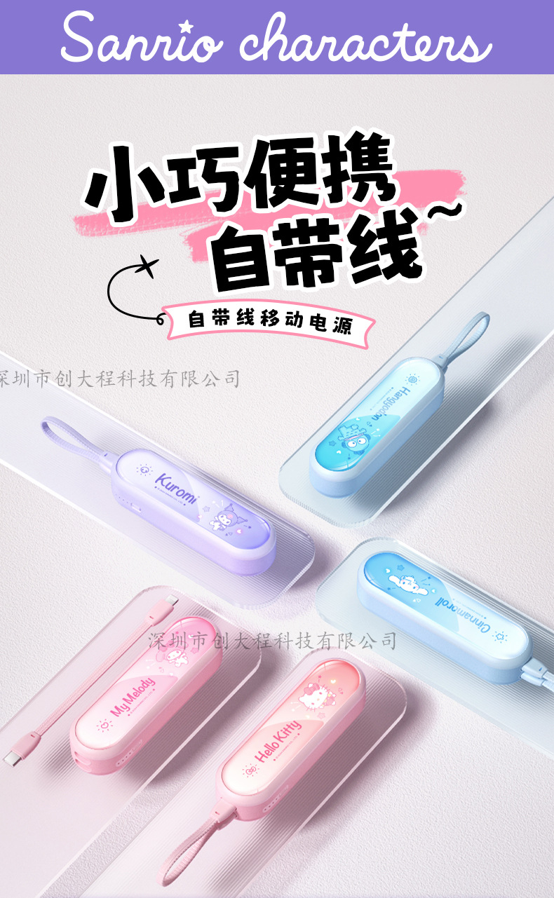 새로운 Sanrio는 비행기에서 사용할 수 있는 케이블이 포함된 보조 배터리, 양방향 고속 충전, 고급스럽고 컴팩트하며 휴대 가능한 보조 배터리입니다.스토어 가기