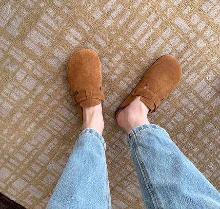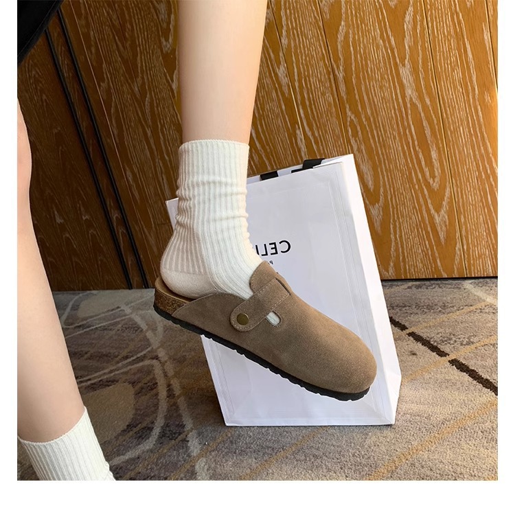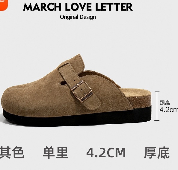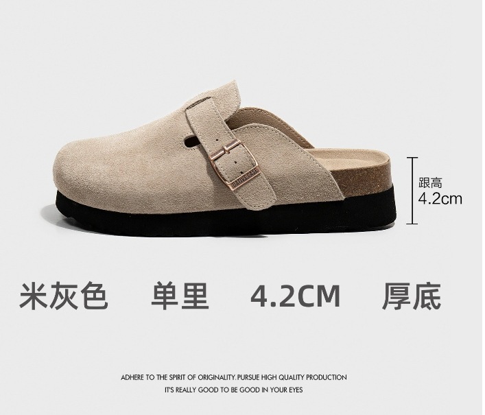 [재고] 출산 신발 여성 인터넷-유명한 두꺼운 밑창 높은 Bokenth Baotou 하프 슬리퍼 봄과 가을 슬립 온 신발스토어 가기