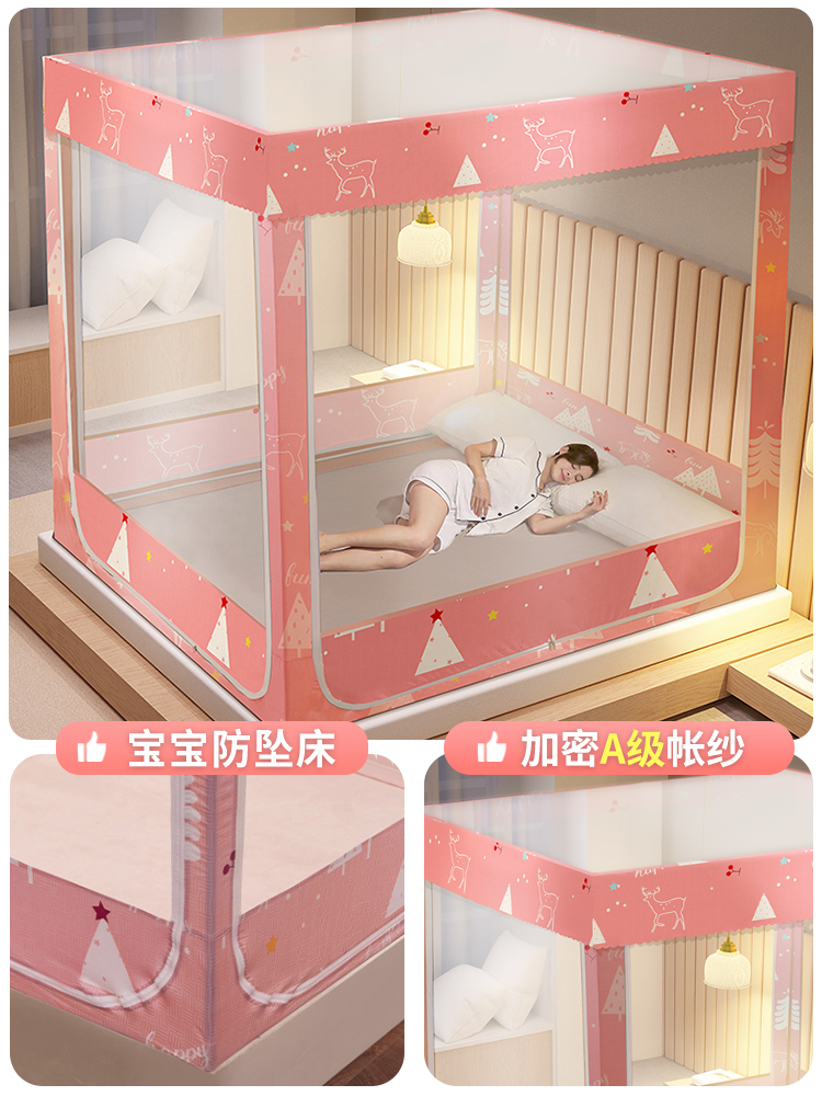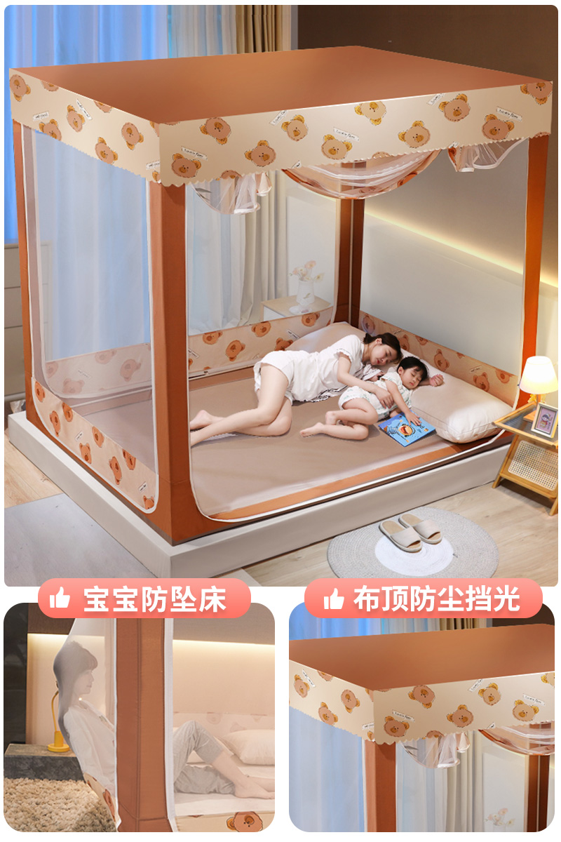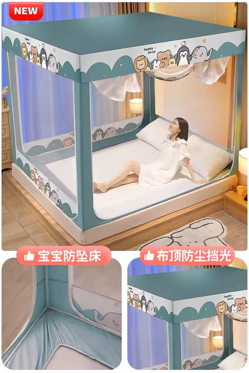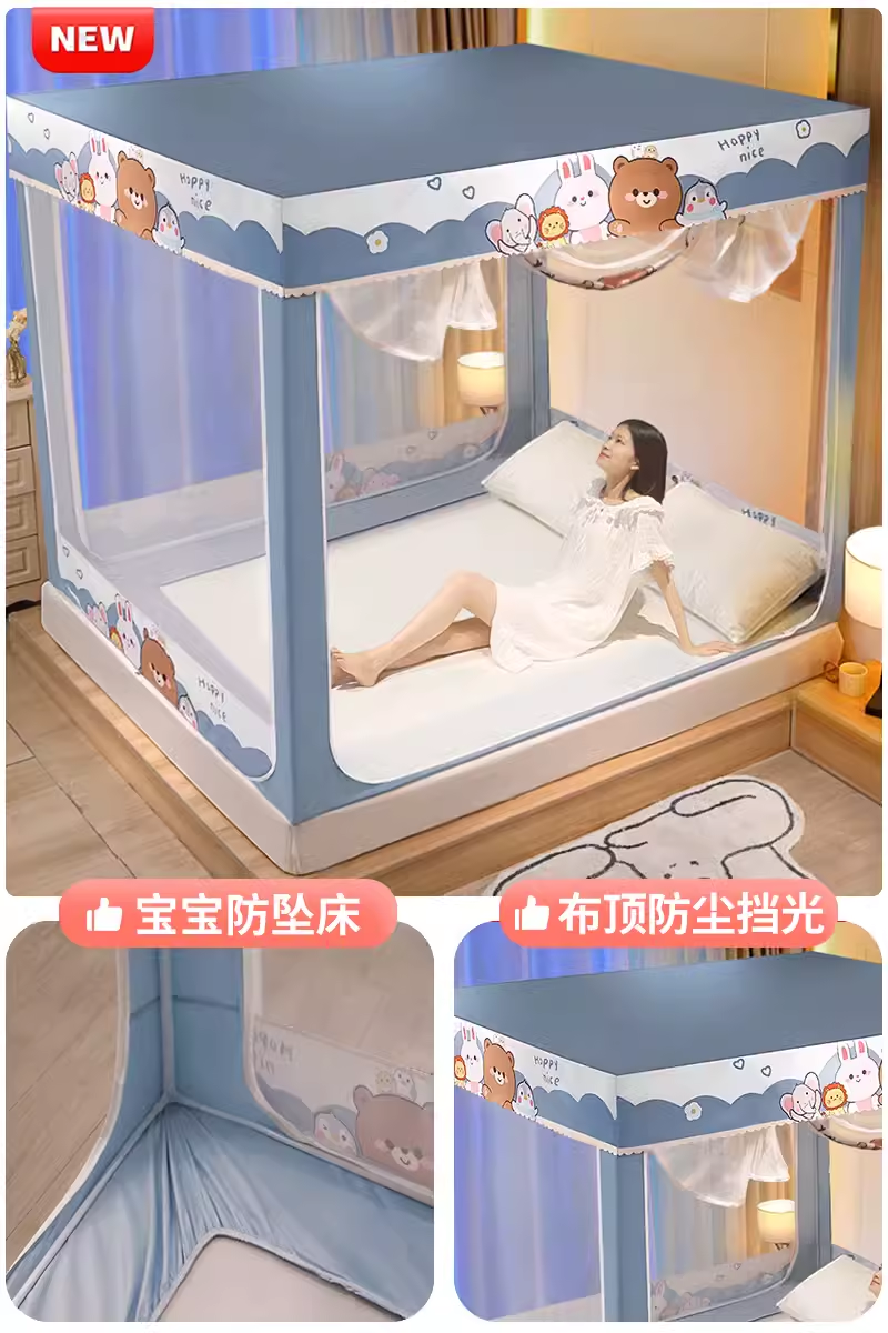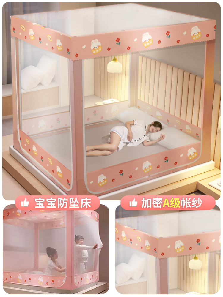 . 모기장 2024 새로운 스타일 가정용 침실 드롭 방지 어린이 침대 커튼 통합 음영 유르트 2024 사이버 빨간색 방지스토어 가기