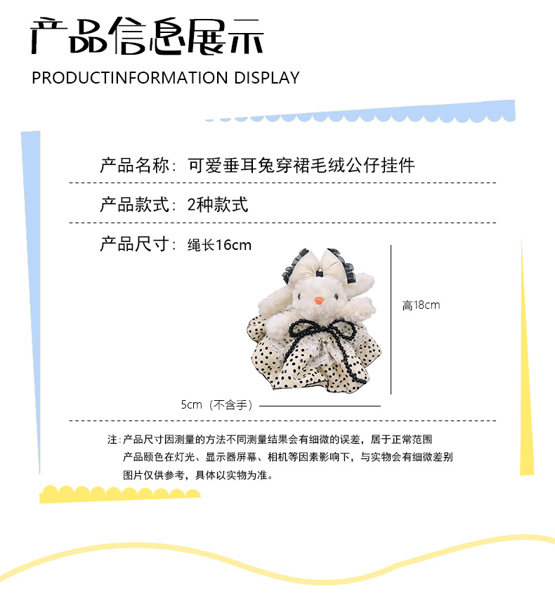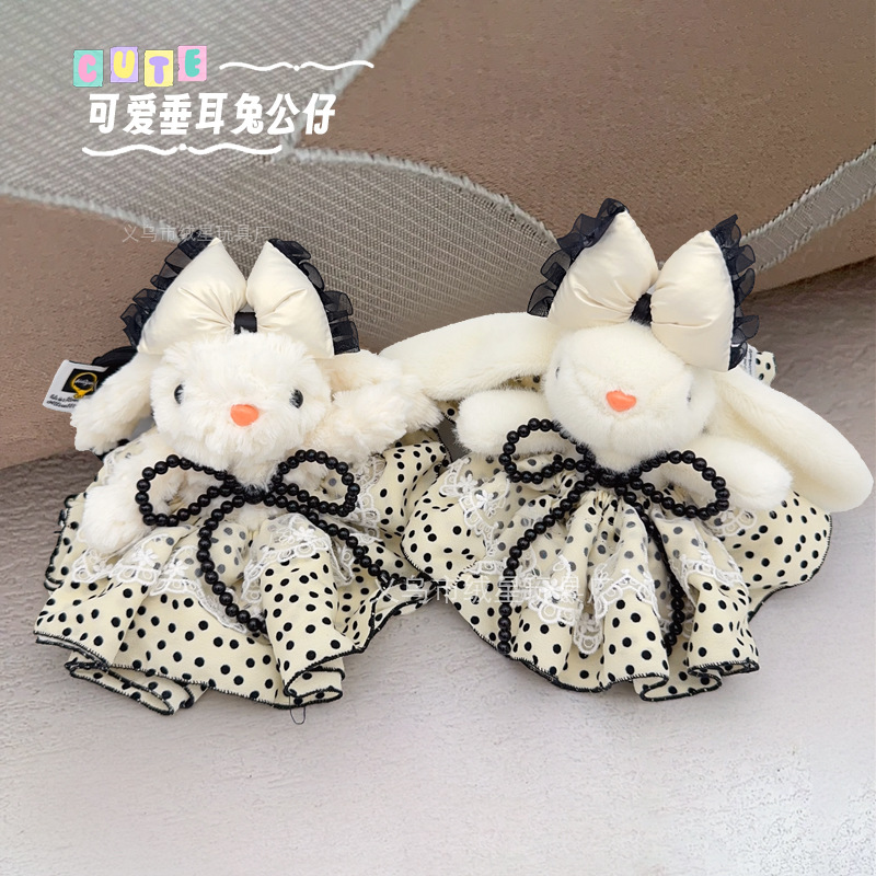 새로운 레이스 폴라 도트 원피스 귀 매달린 토끼 인형 펜던트 봄과 여름 달콤한 귀여운 토끼 인형 선물스토어 가기