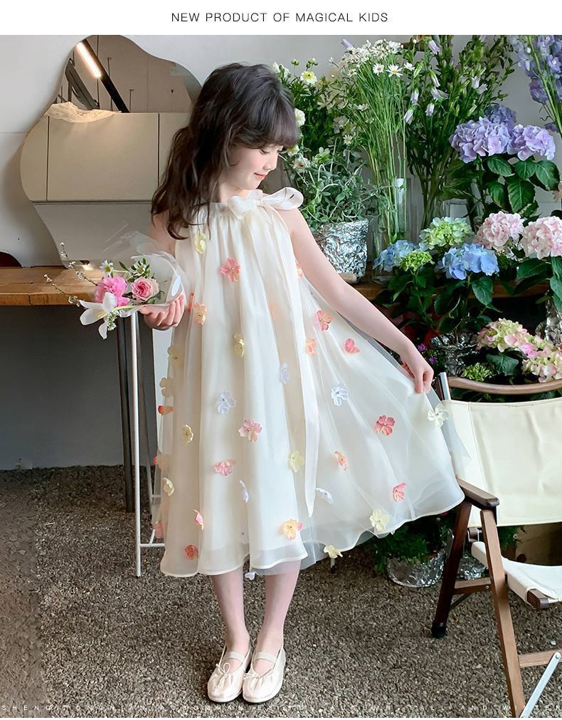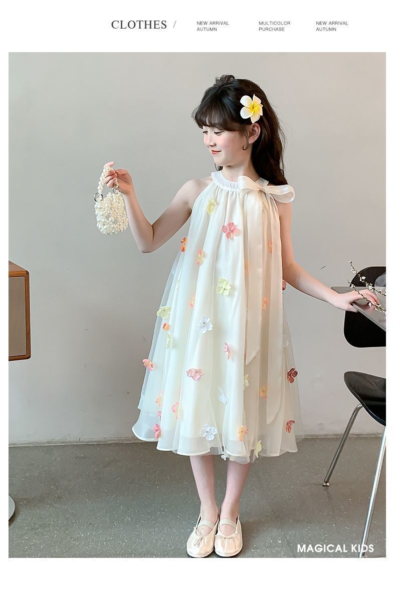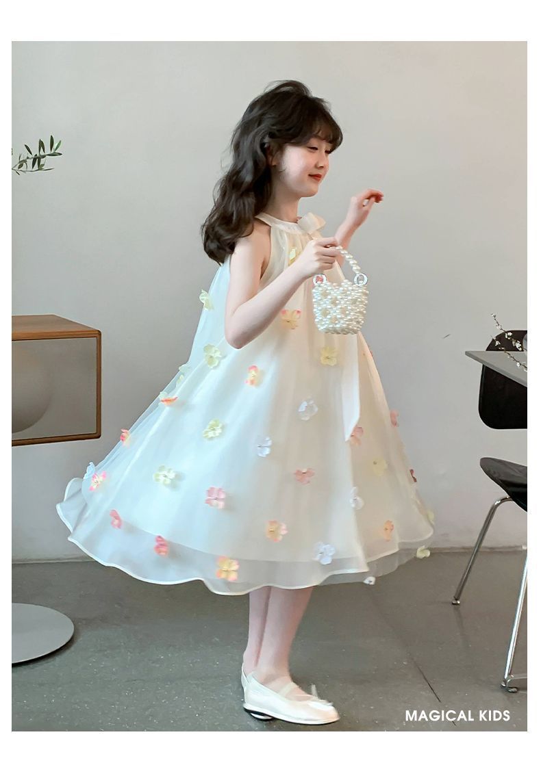 소녀의 치마 여름 2025 새로운 스타일 서양식 아동복 소녀의 여름 메쉬 비즈 스커트 어린이 여름 원피스