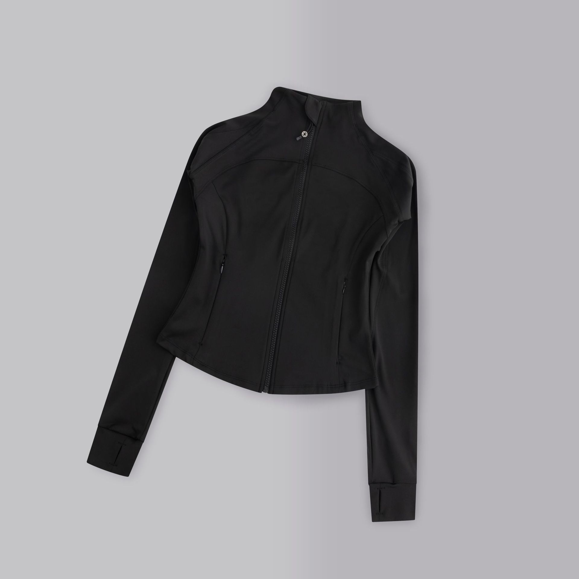 보이지 않는 포켓 요가 의류 여성의 긴 소매 달리기 스포츠 선 스크린 재킷 스탠드 칼라 지퍼 통기성 빠른 건조 피트니스 의류