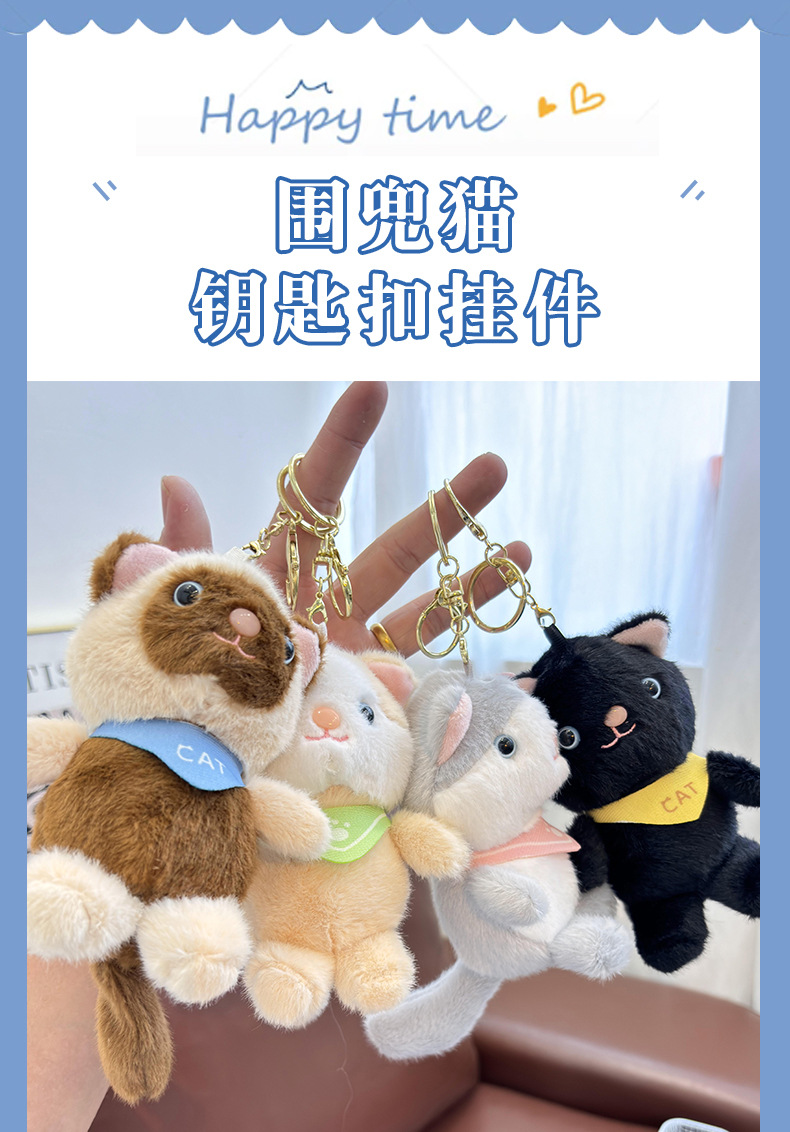 콩알 모양의 고양이 인형 장식품, 책가방 열쇠고리, 귀여운 봉제 인형 장난감 도매, 작은 장식품, 천 인형스토어 가기