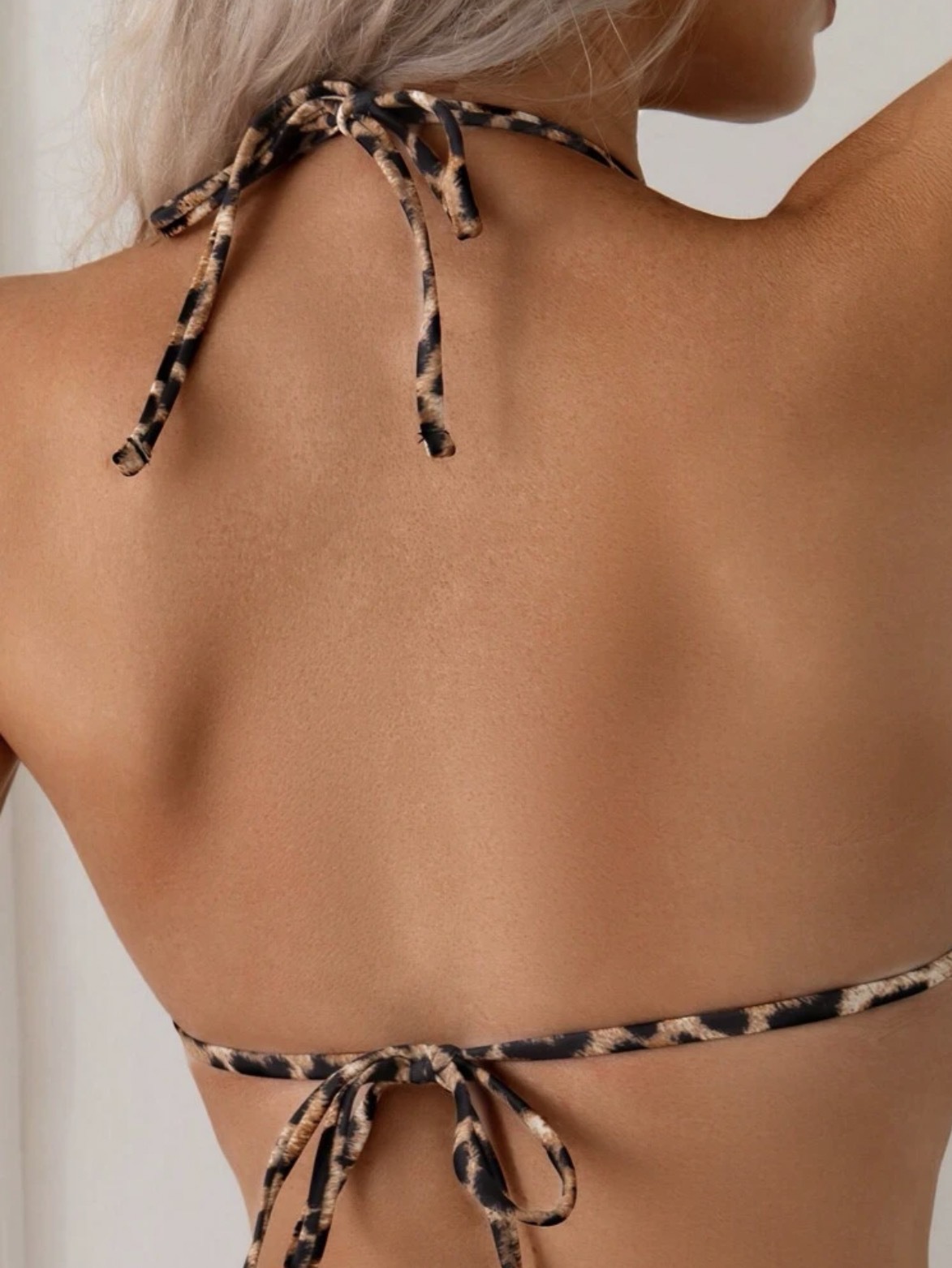 타이트한 백리스 유럽과 미국의 새로운 스타일의 비키니 스플릿 드로스트링 스트랩 섹시한 레오파드 프린트 수영복 여성용 크로스보더 스타일스토어 가기