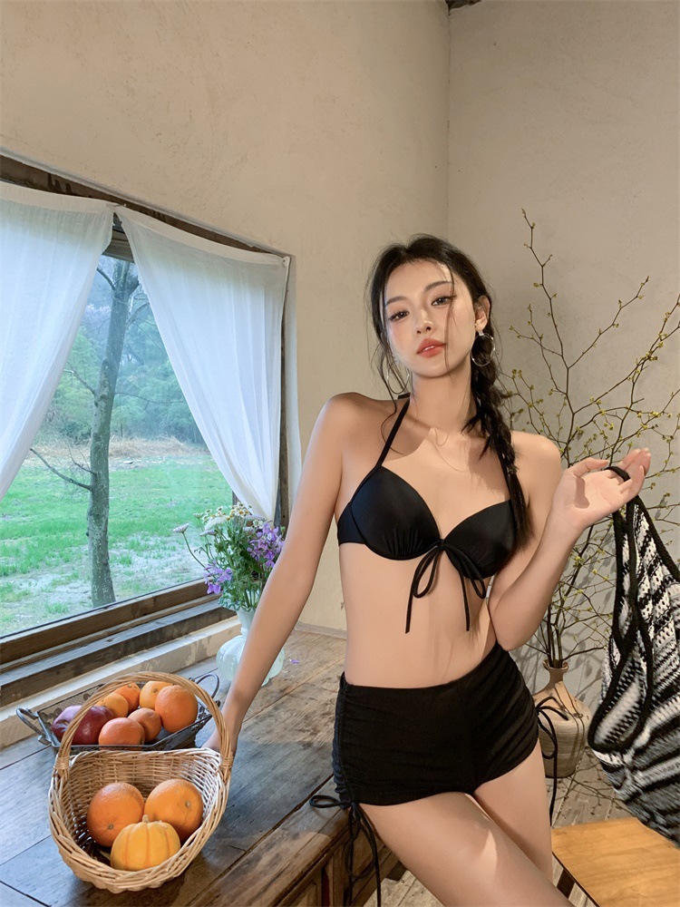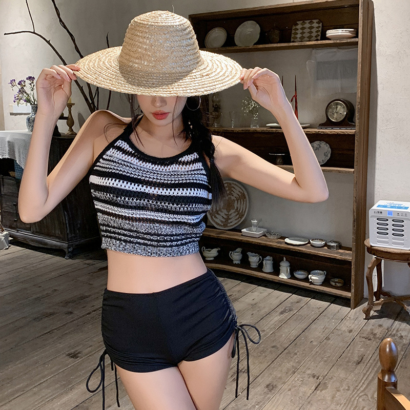여성을위한 레트로 중공 스트라이프 수영복 2025 여름 한국어 버전 새로운 하이 웨이스트 스플릿 3 피스 핫 소녀 비키니 수영복