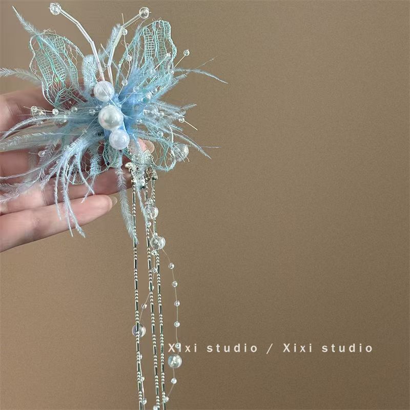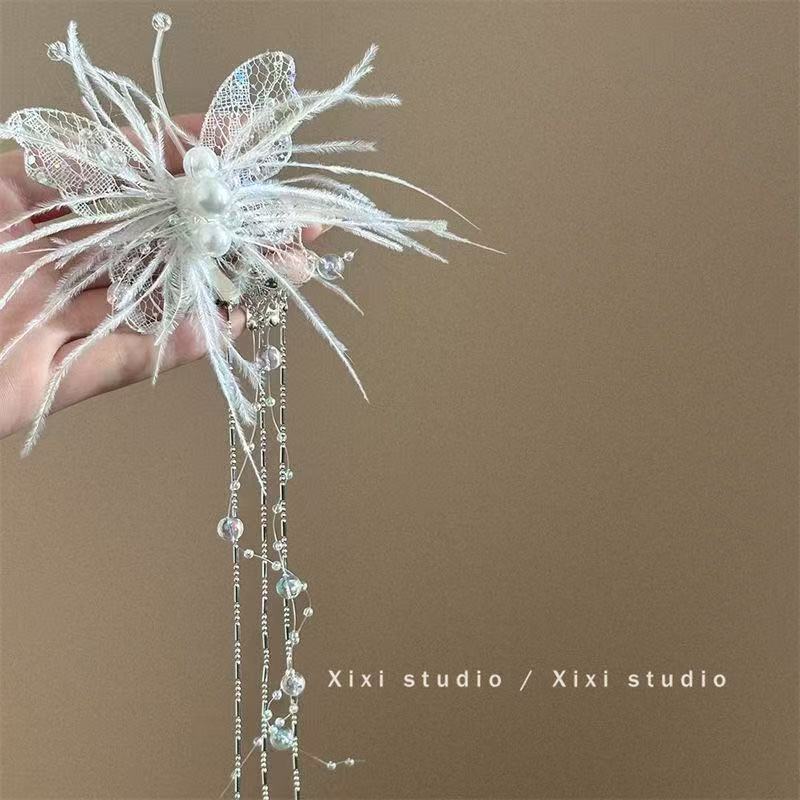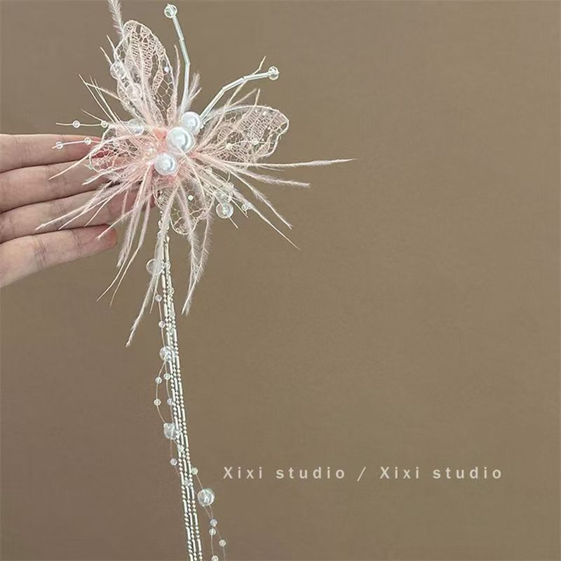 나비 슈퍼 요정 분위기 레이스 깃털 진주 머리핀 하이 센스 니쉬 사이드 신부 머리 액세서리스토어 가기