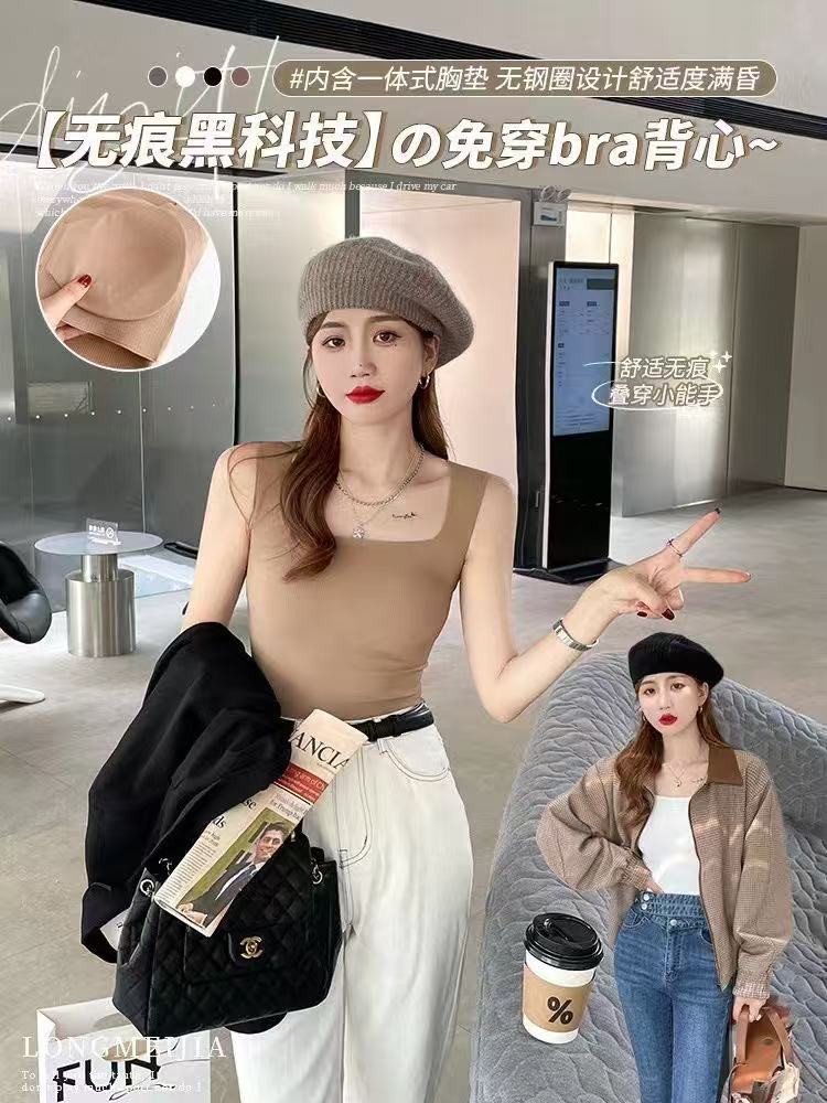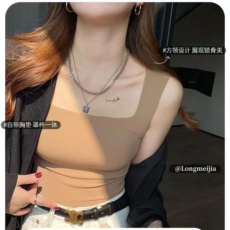 아이스 실크 여름 넓은 어깨 스트랩 작은 조끼 여성용 칼라 원활한 슬링 통합 벨트 가슴 패드 외부 착용 내부 기본 옷스토어 가기