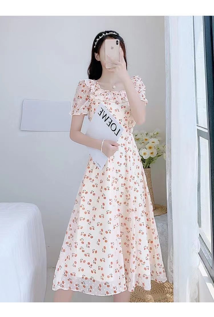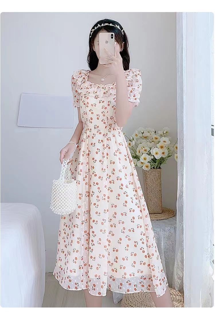 25 새로운 여성 차 브레이크 프랑스 꽃 원피스 여름 신선한 Platycodon grandiflorum 첫사랑 요정 원피스 소금으로 달콤 할 수 있습니다스토어 가기