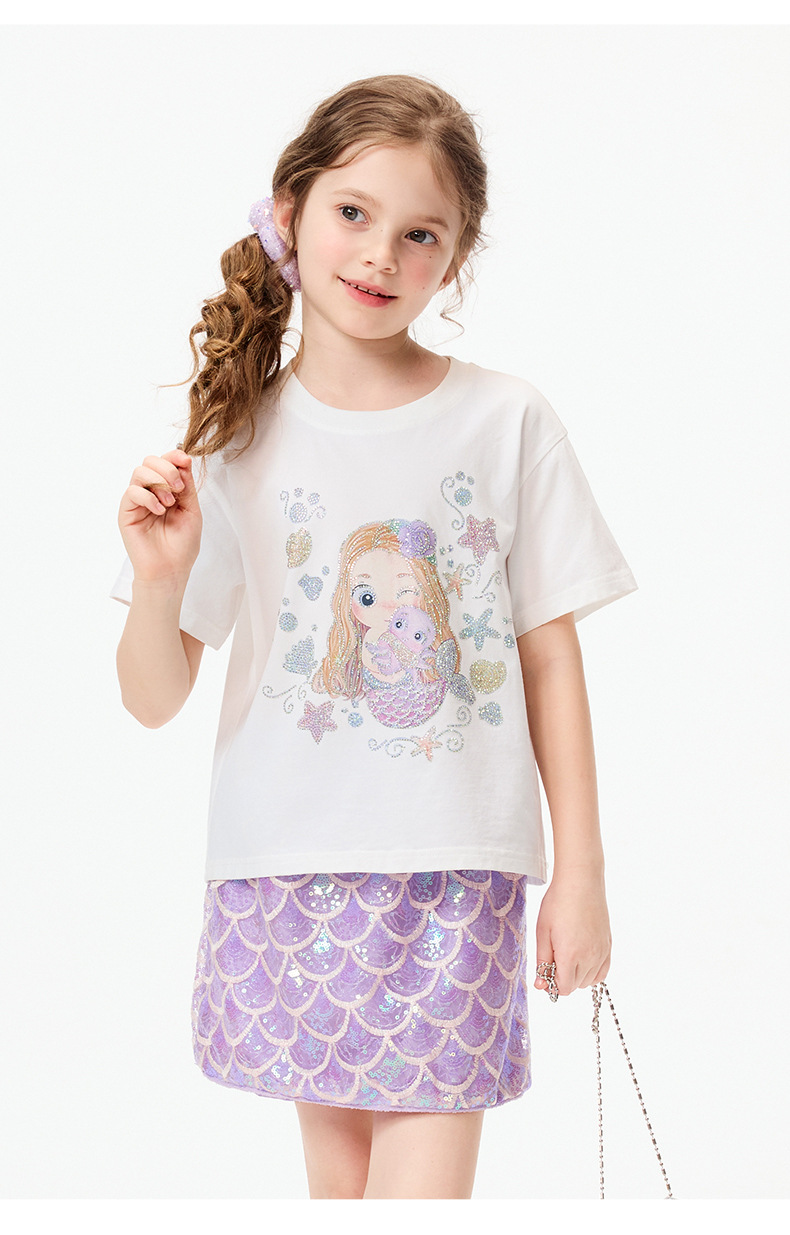 여자 스커트 2025 여름 새로운 한국어 버전 중대형 어린이 스타일 어린 소녀 스팽글 스커트 도매스토어 가기