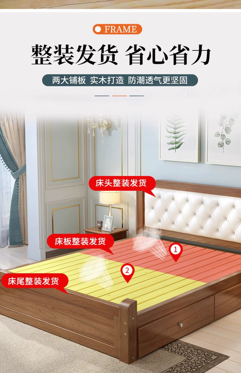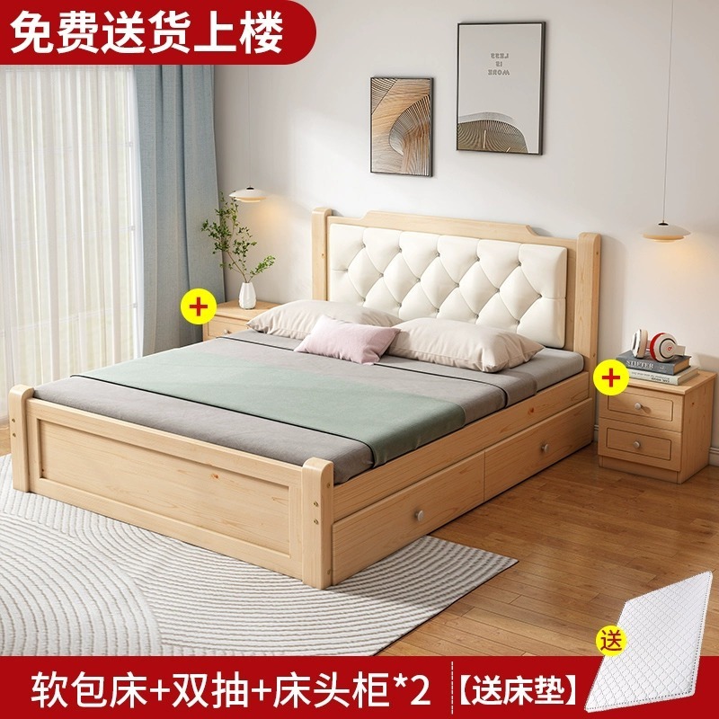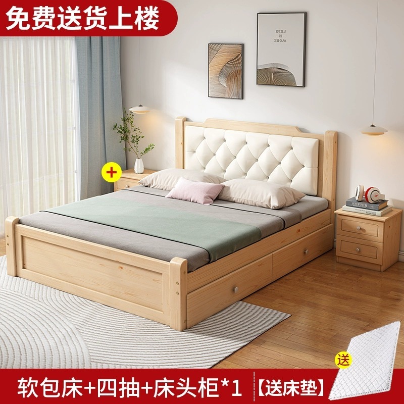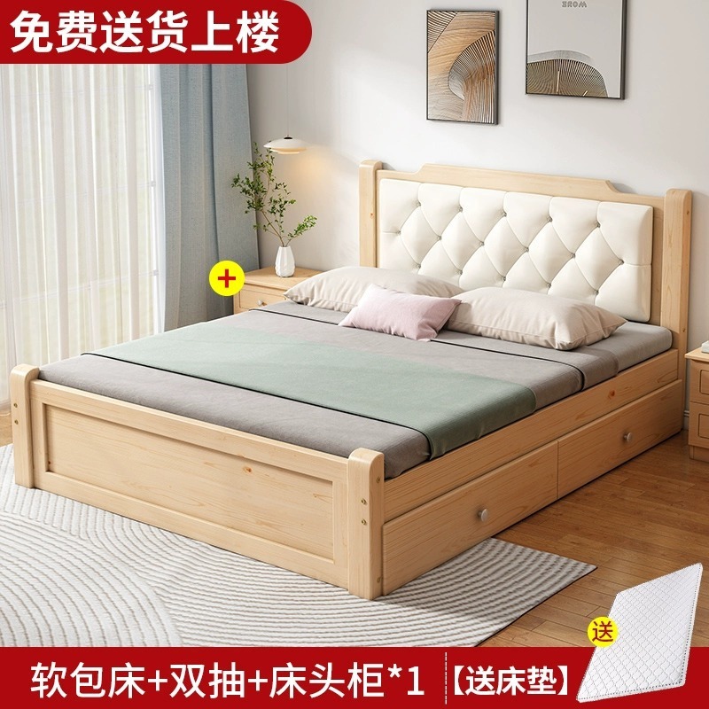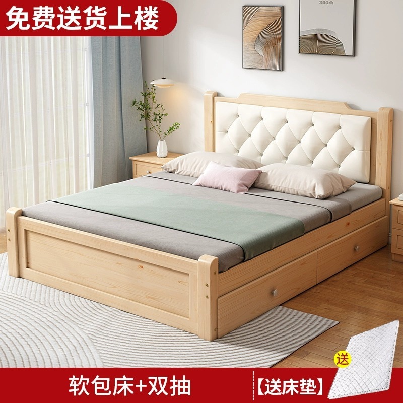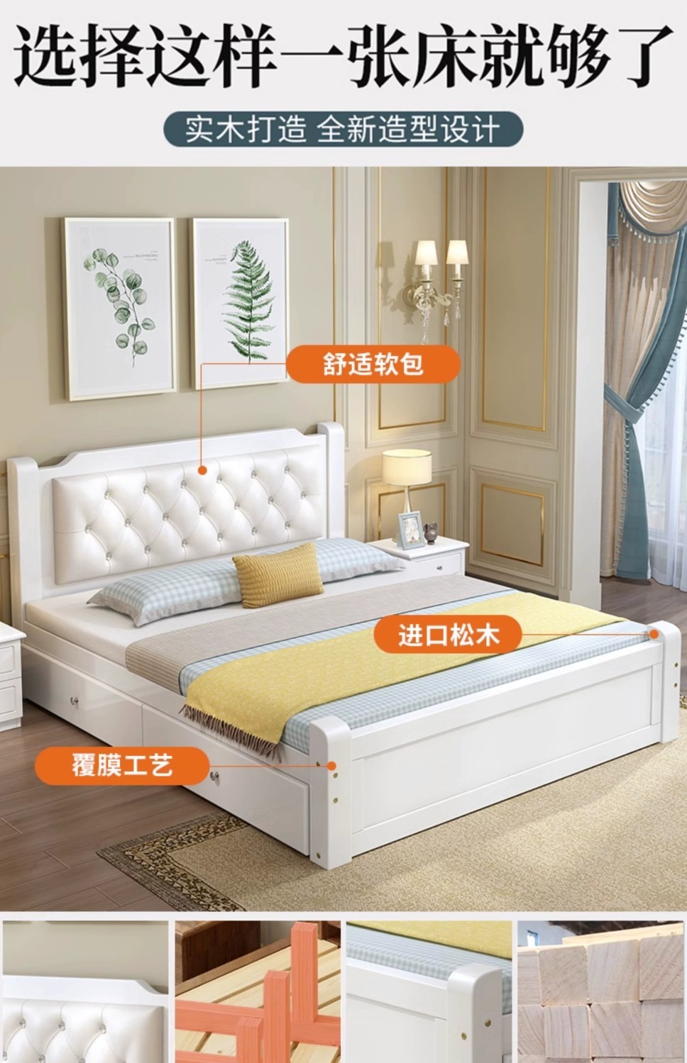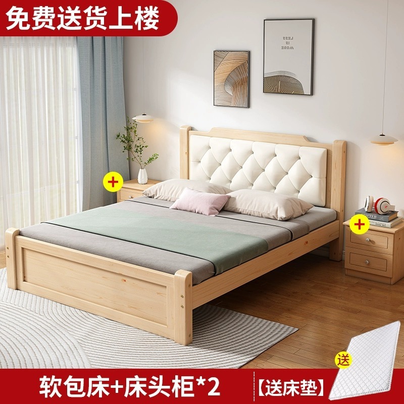 원목 침대 1.8m 경제적인 성인용 마스터 침실 더블 침대 유럽식 침대 1.5m 가정용 1.2m 싱글 침대 1m스토어 가기