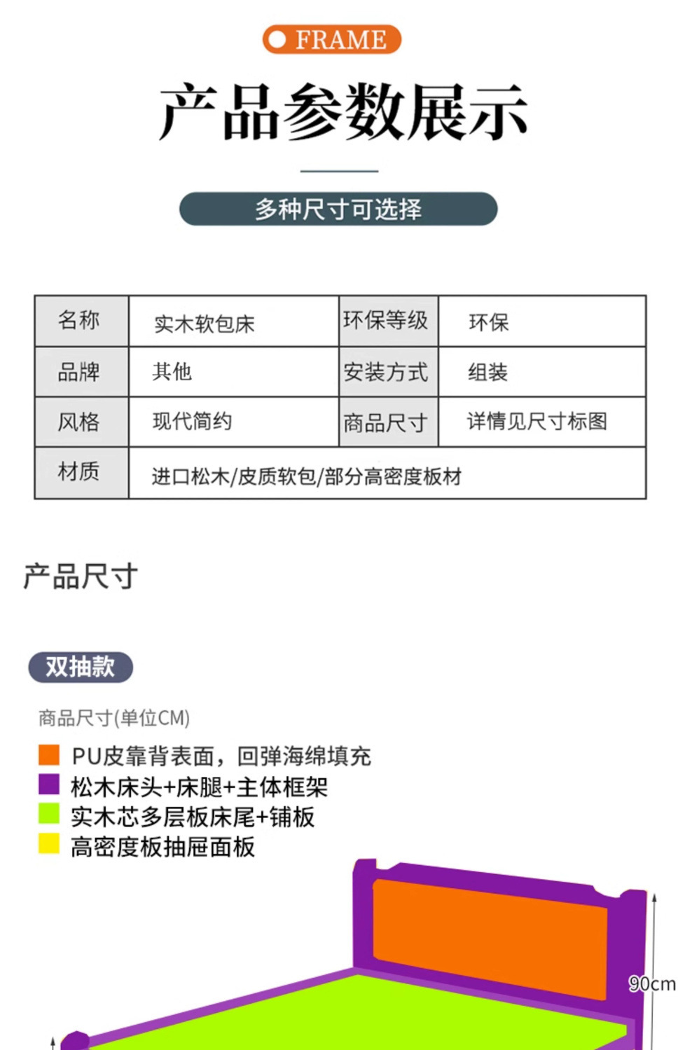 • [오리지널 컬러] 침대 + 매트리스 + 더블 서랍 + 침대 옆 테이블 2