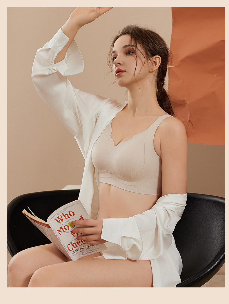 소프트 지원 고정 컵 tracless 속옷 여성의 큰 가슴 작은 얇은 비 림리스 더블 풀 안티 처짐 브래지어스토어 가기