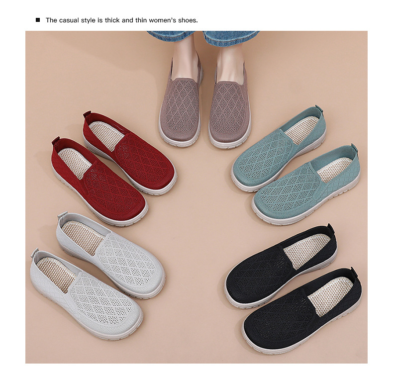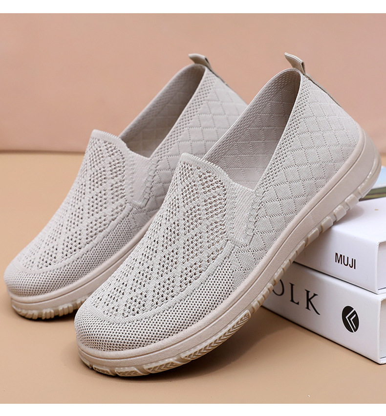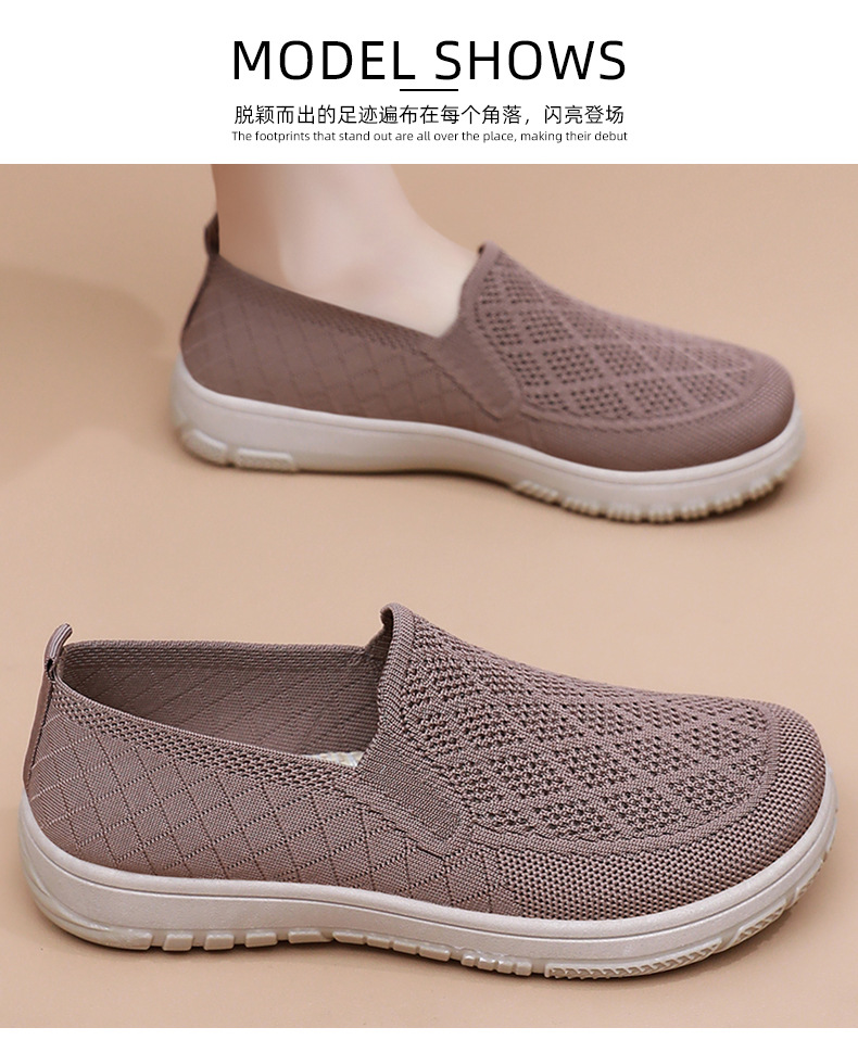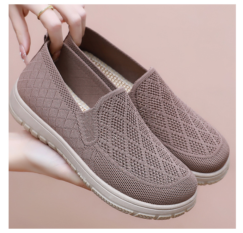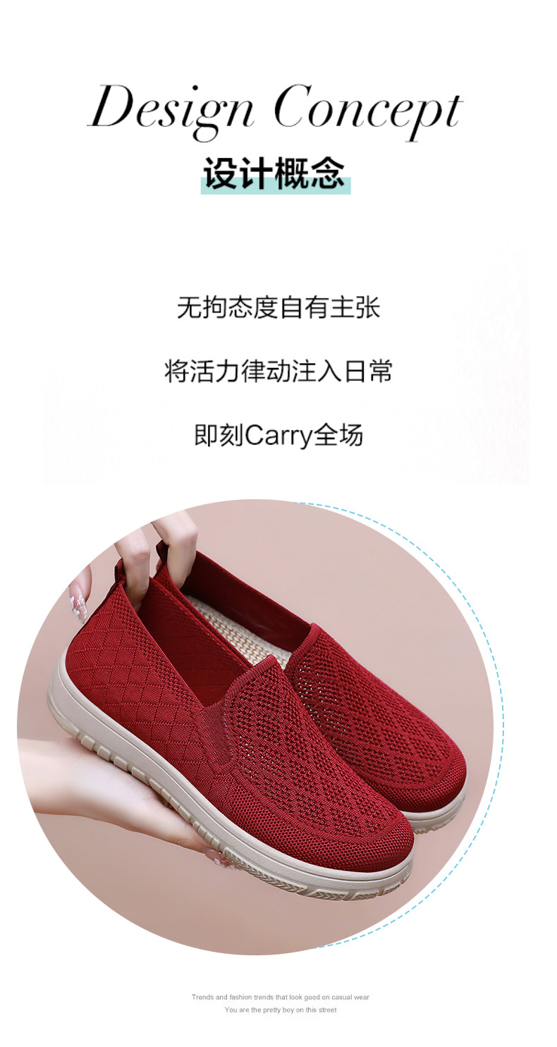 여성용 가을 신상 캐주얼 슈즈, 슬립온 스타일의 베이징 천 신발, 얕은 굽의 플랫 슈즈, 부드러운 밑창의 편안한 엄마 신발스토어 가기