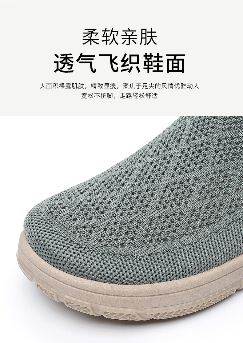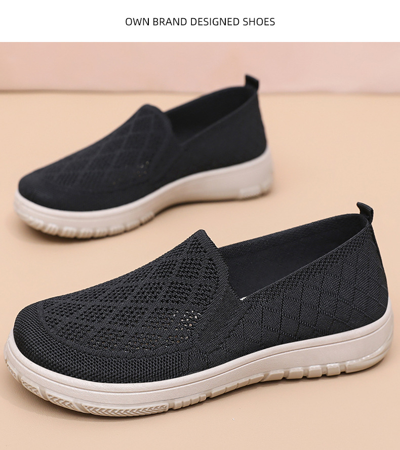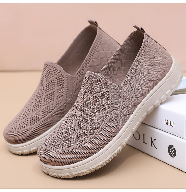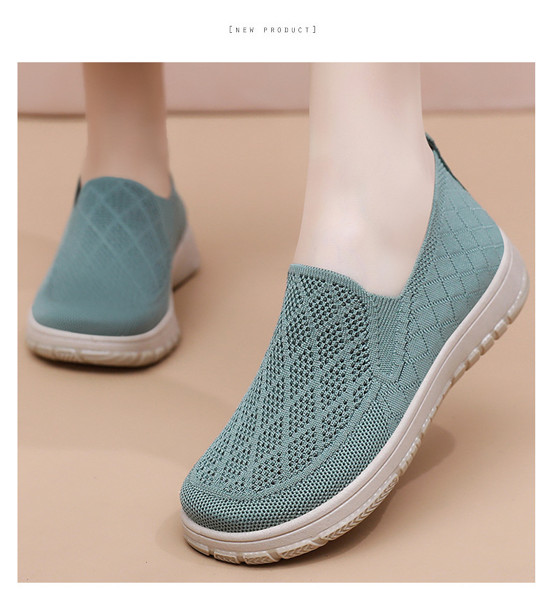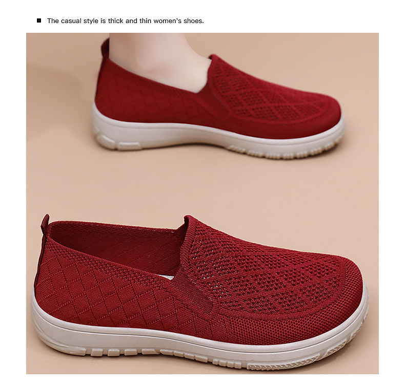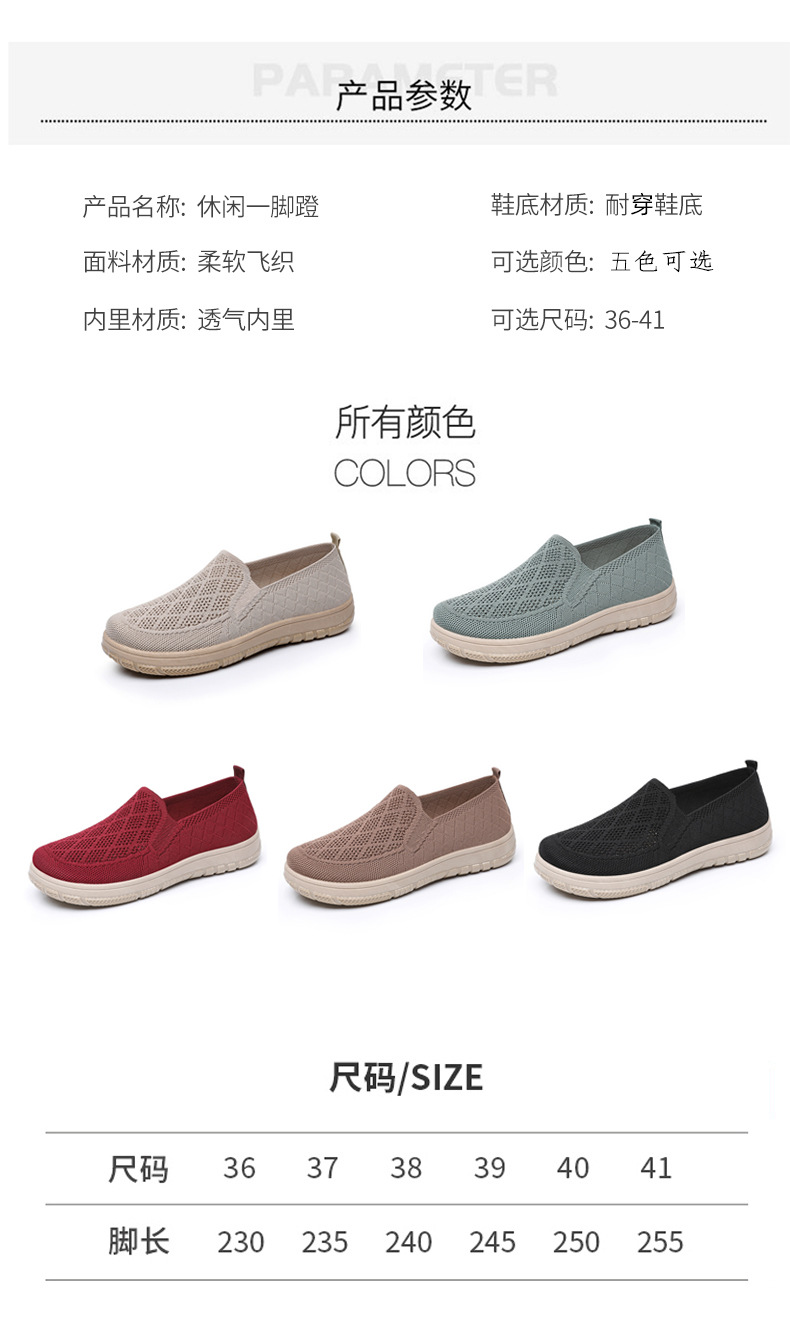 여성용 가을 신상 캐주얼 슈즈, 슬립온 스타일의 베이징 천 신발, 얕은 굽의 플랫 슈즈, 부드러운 밑창의 편안한 엄마 신발스토어 가기