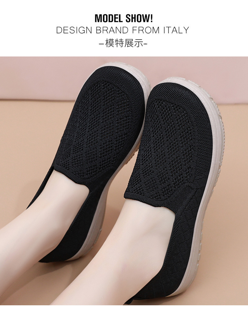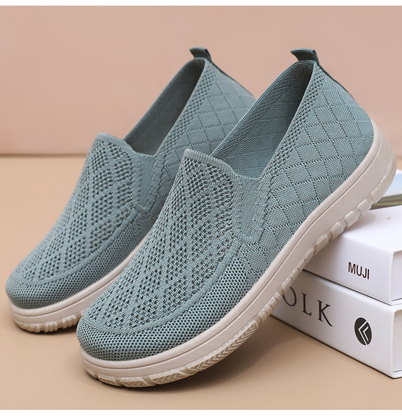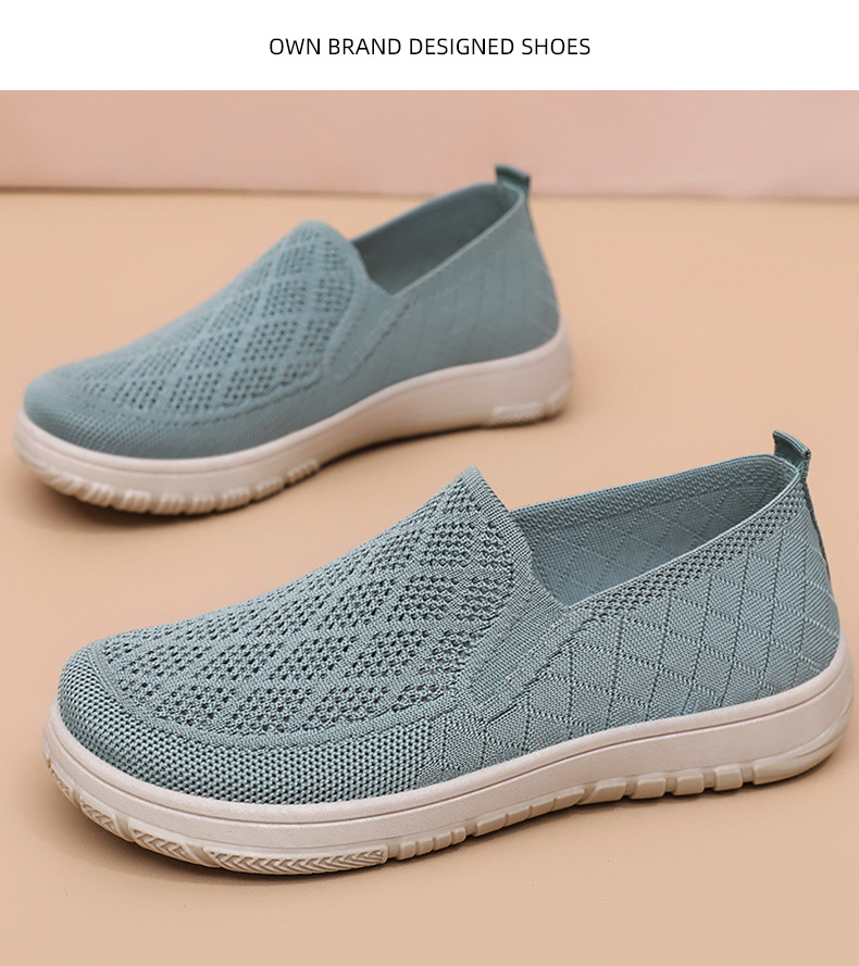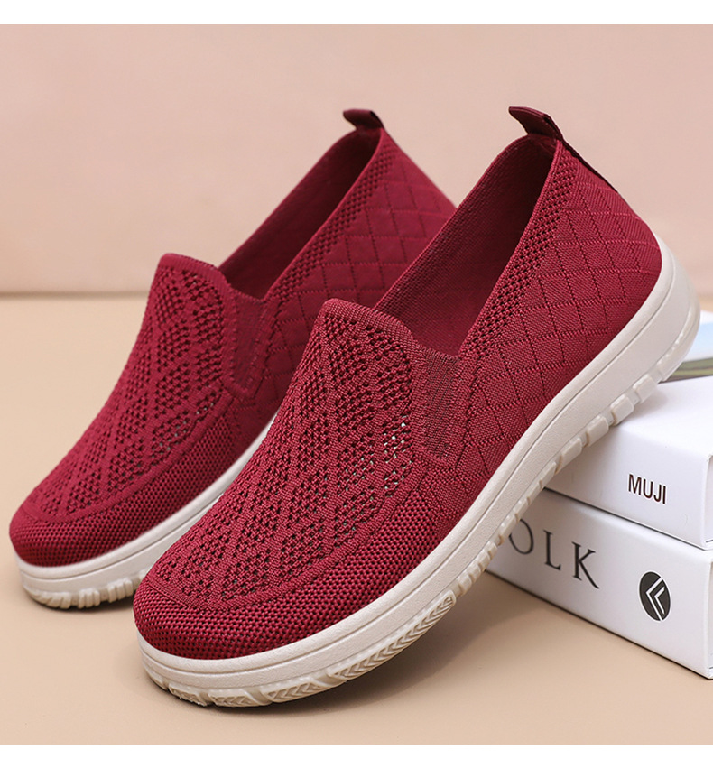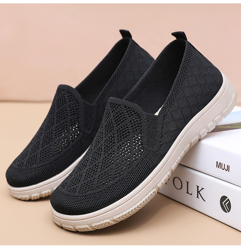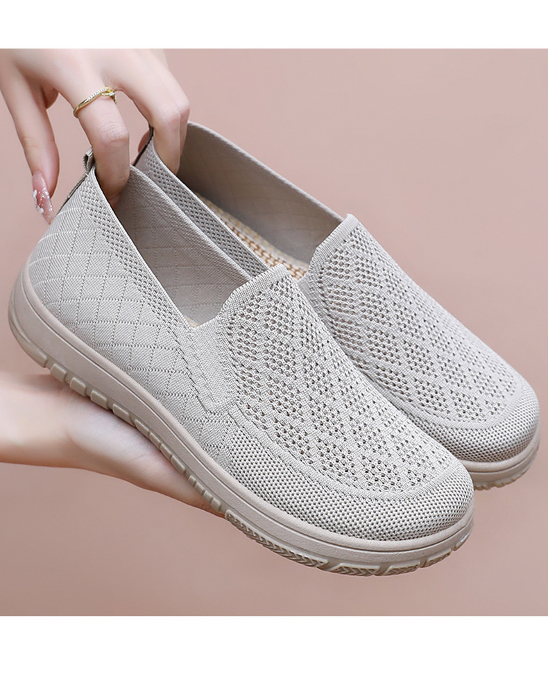 여성용 가을 신상 캐주얼 슈즈, 슬립온 스타일의 베이징 천 신발, 얕은 굽의 플랫 슈즈, 부드러운 밑창의 편안한 엄마 신발스토어 가기