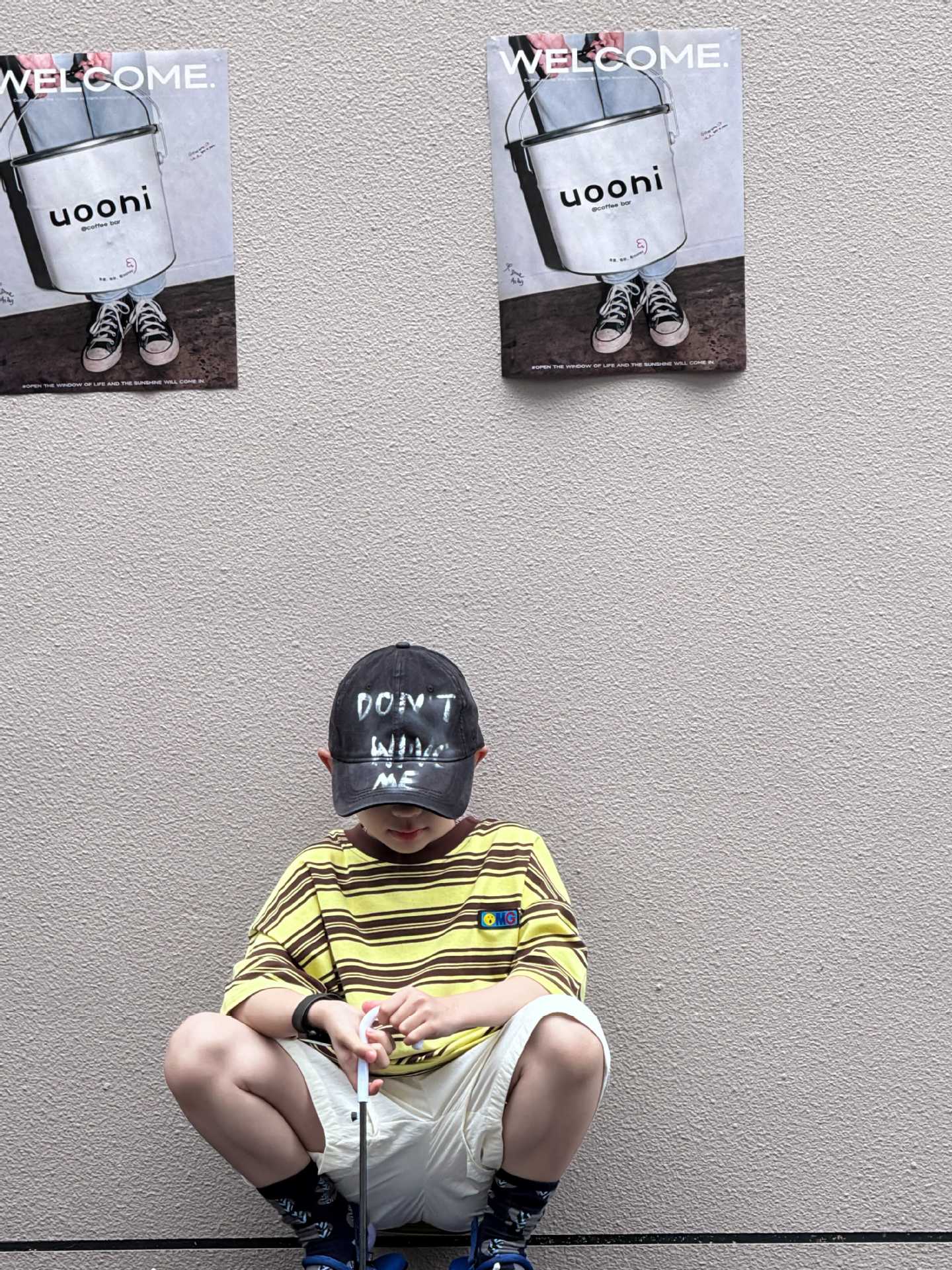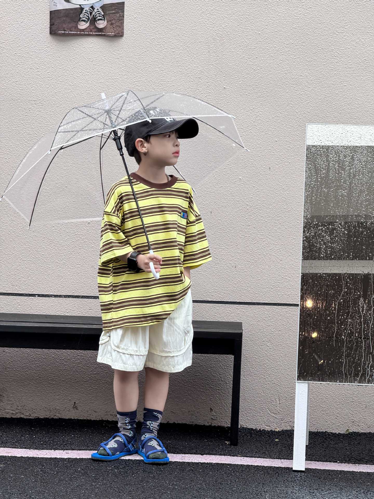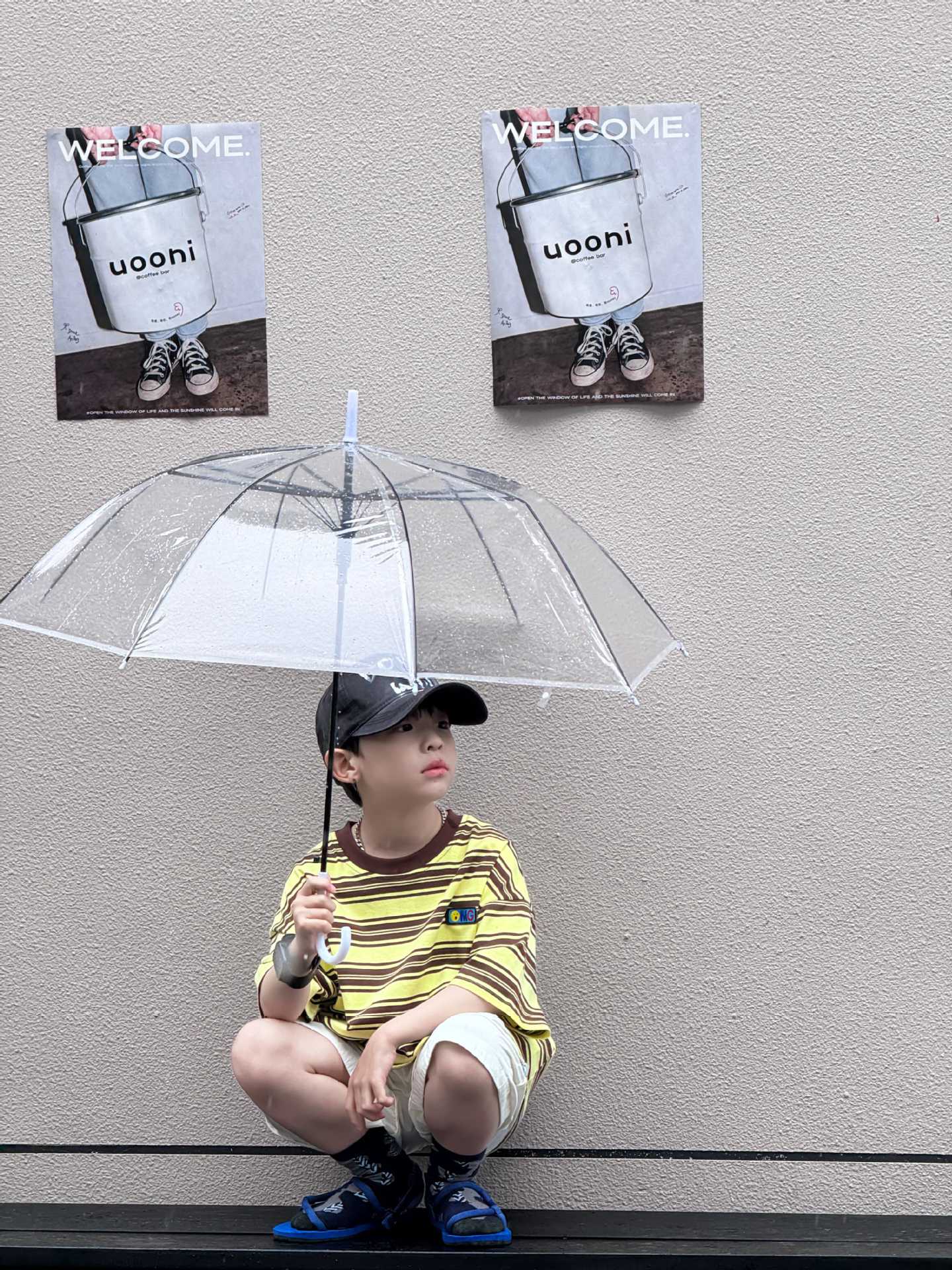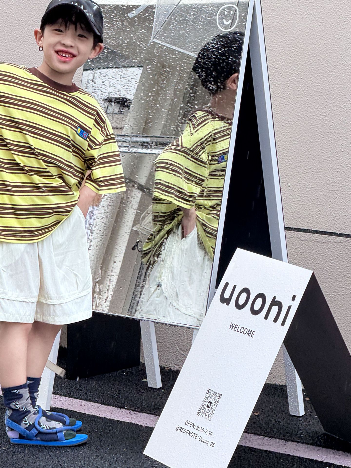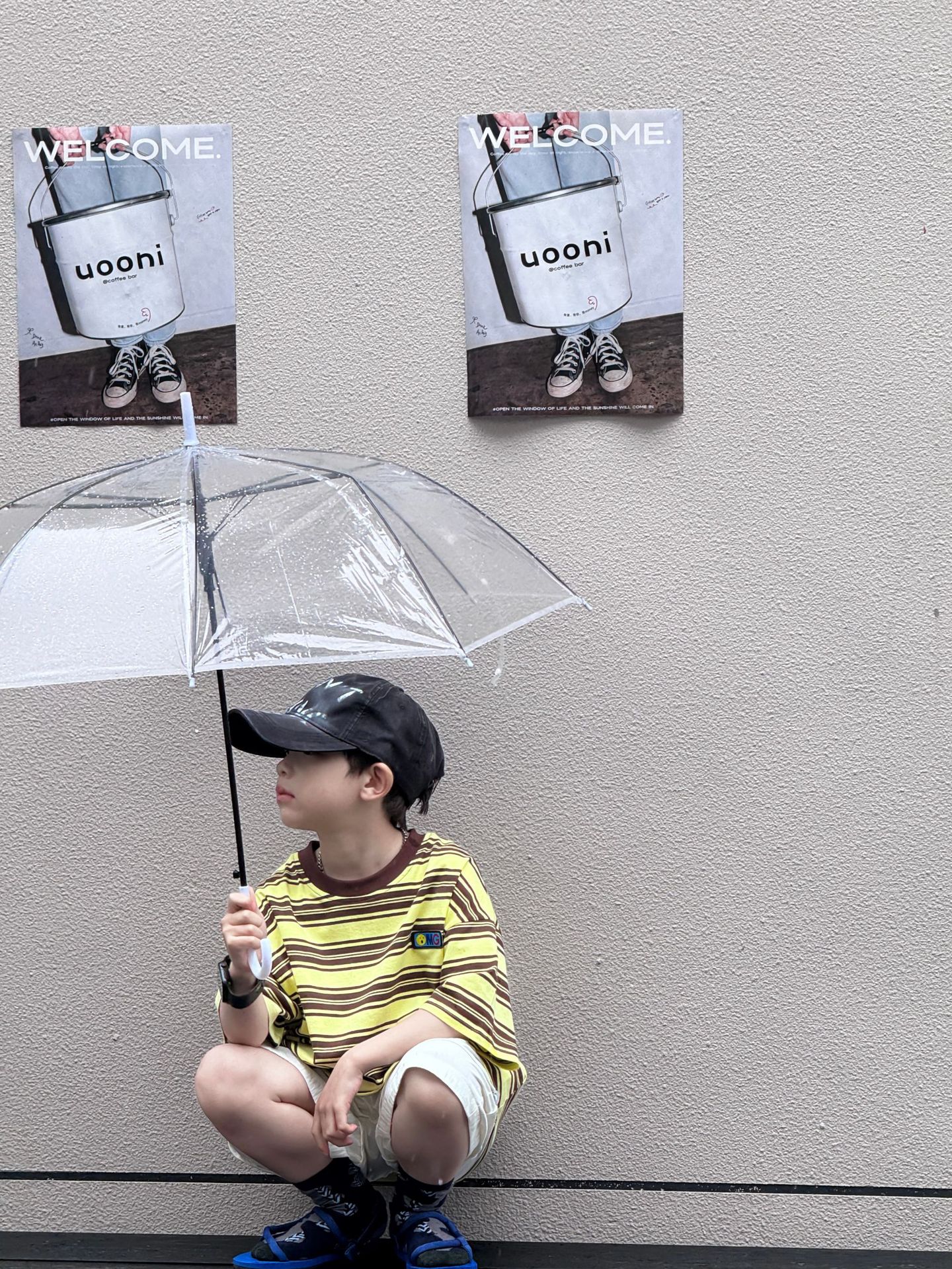 25 여름 한국 아동복 밝은 노란색 줄무늬 대비 컬러 코튼 라벨 크루 넥 반팔 티셔츠 탑스토어 가기