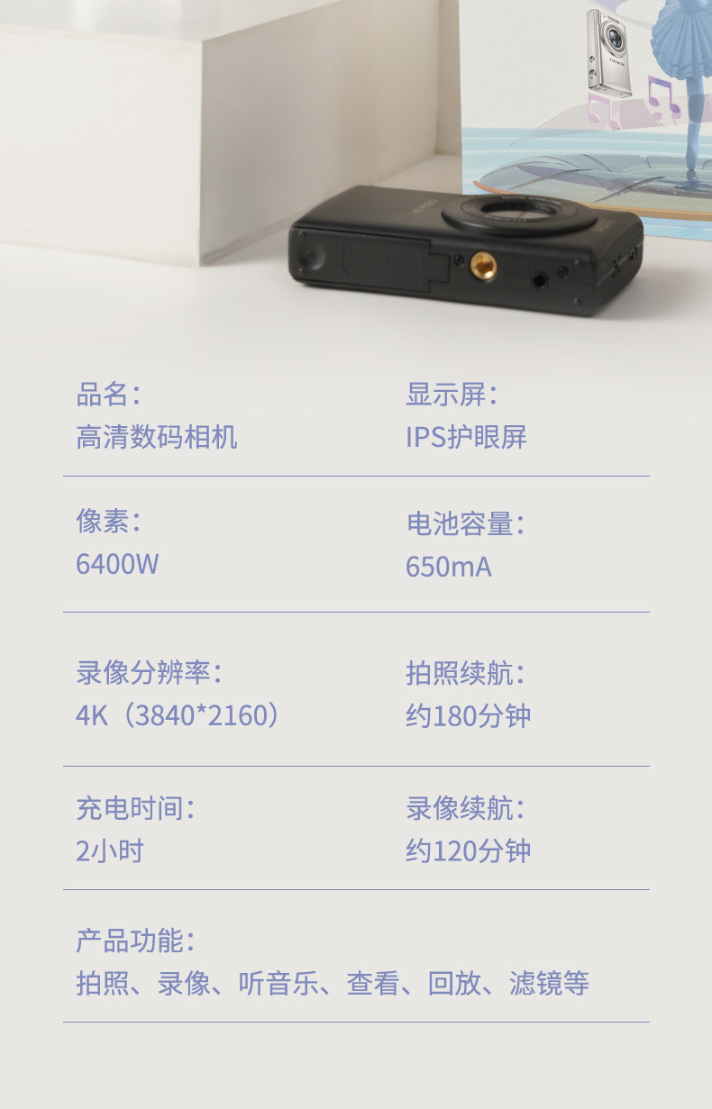 신입생 파티 카메라, 구식 디지털 미러리스 카메라, 보급형 소형 여행 셀카 복고풍 카드 카메라