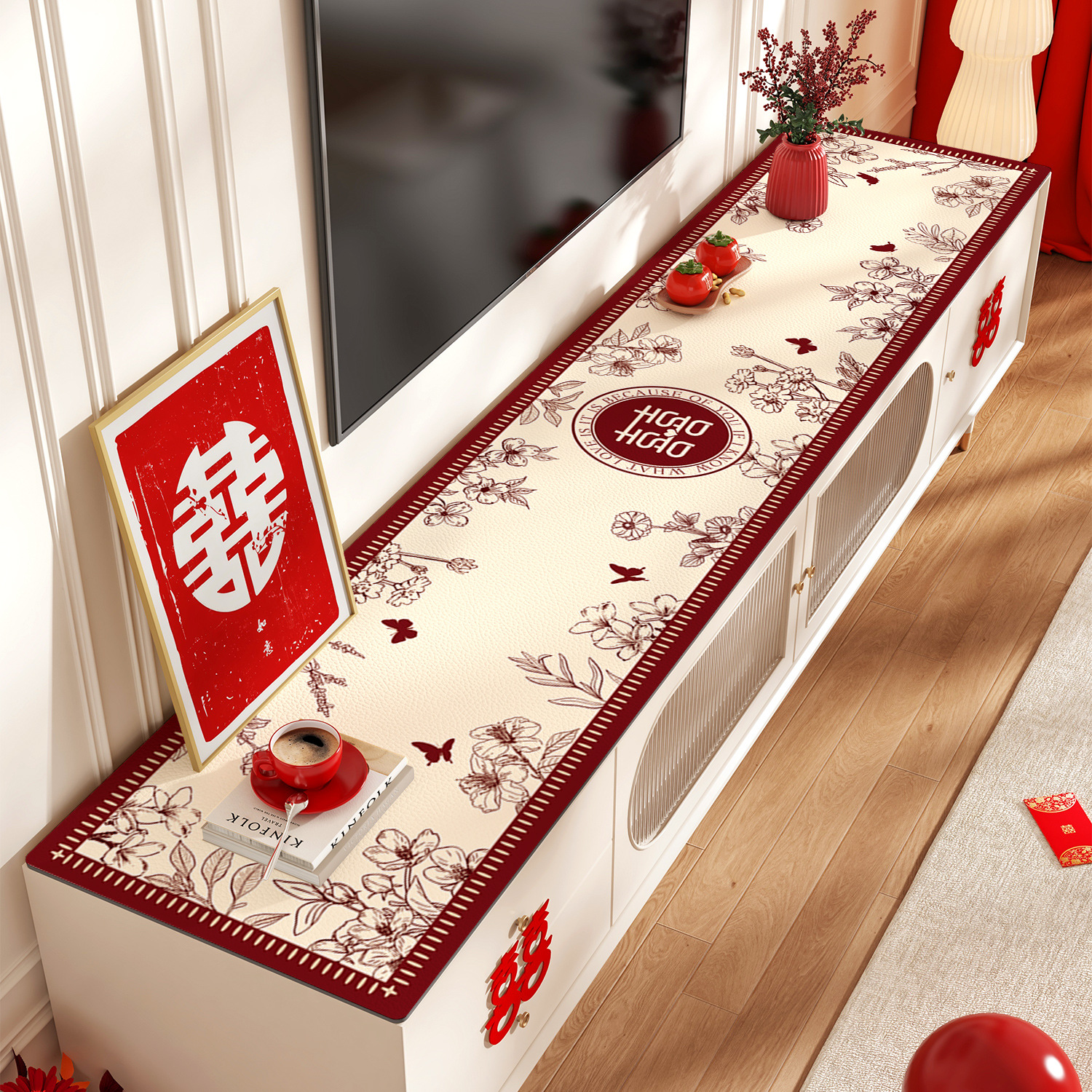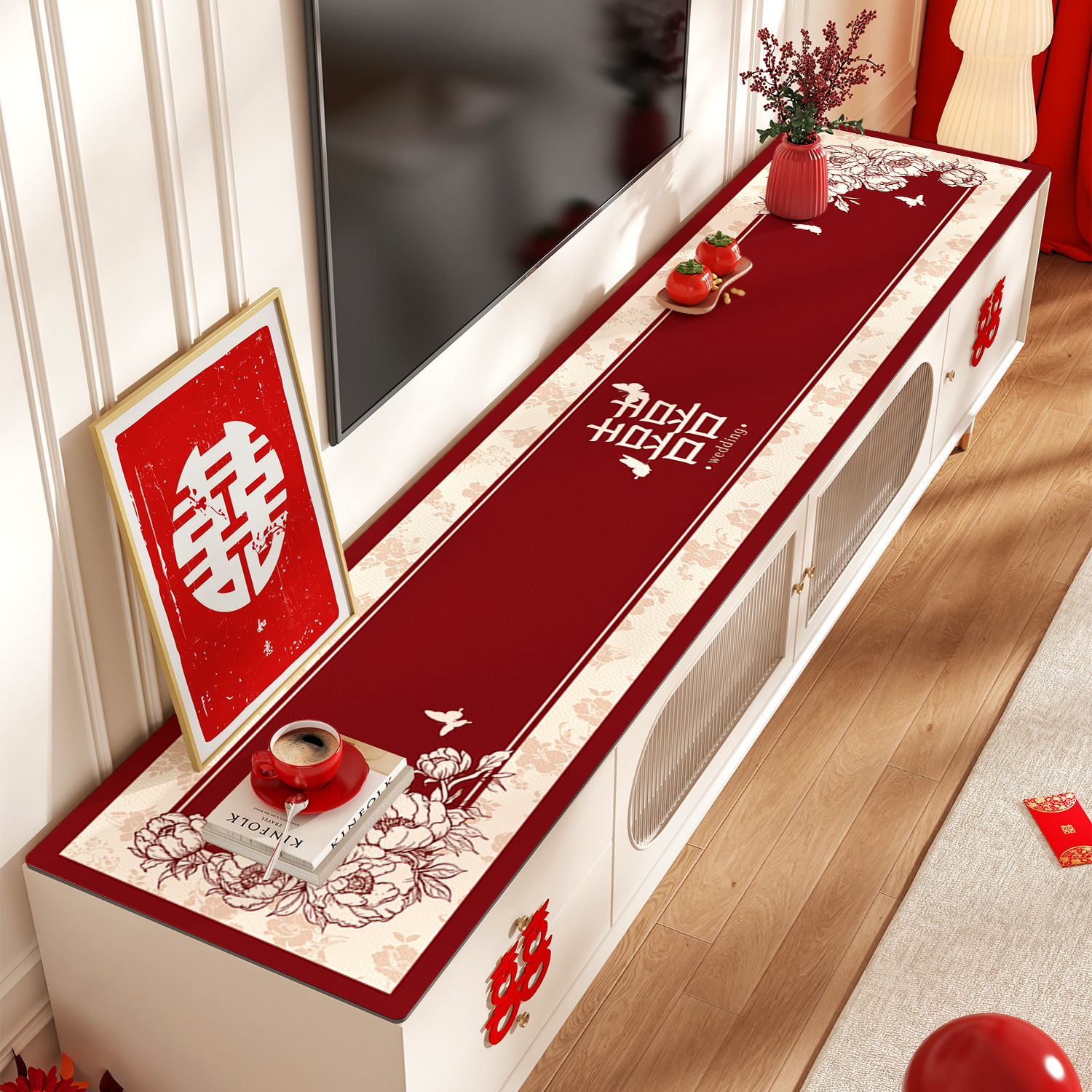 빨간색 웨딩 TV 캐비닛 테이블 매트 웨딩 축제 분위기 식탁보 찬장 매트 신발 카운터 상단 보호 매트스토어 가기