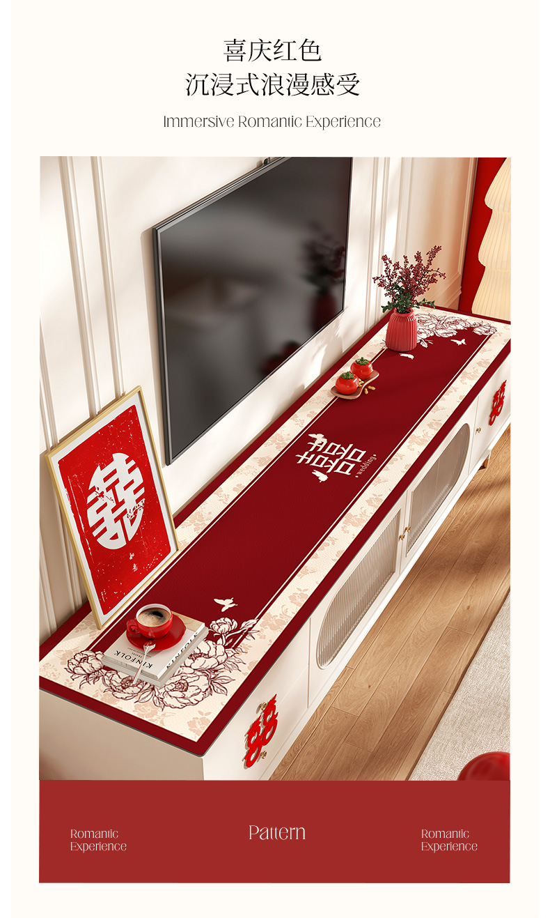 빨간색 웨딩 TV 캐비닛 테이블 매트 웨딩 축제 분위기 식탁보 찬장 매트 신발 카운터 상단 보호 매트
