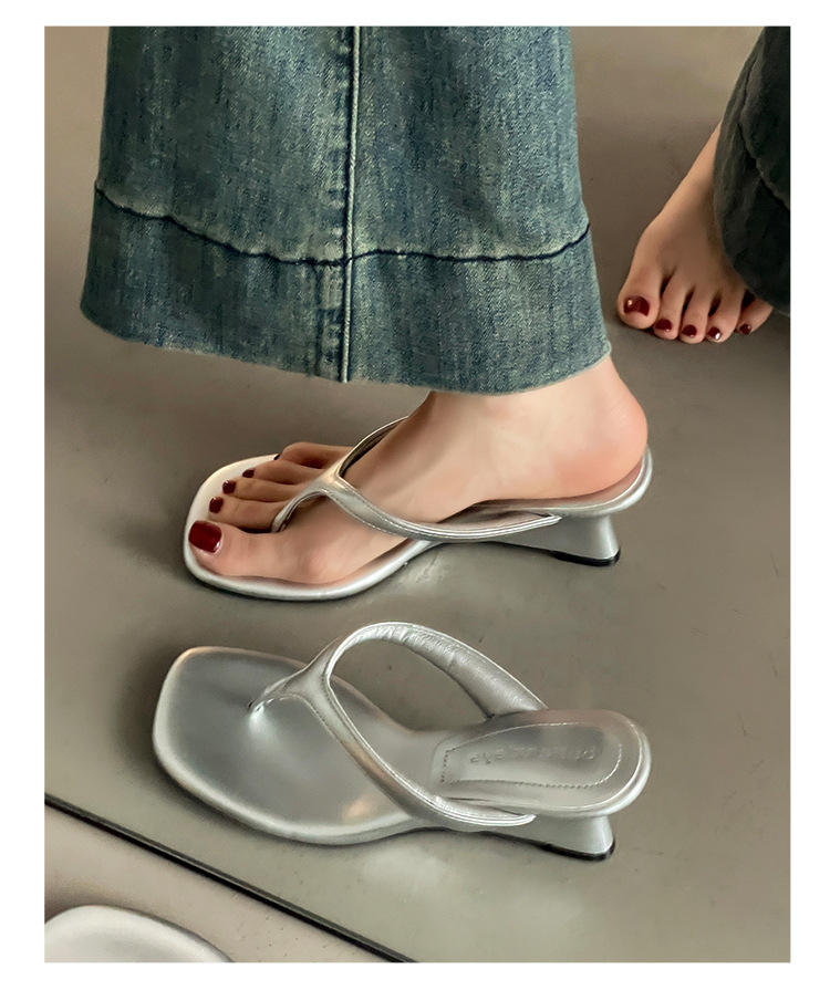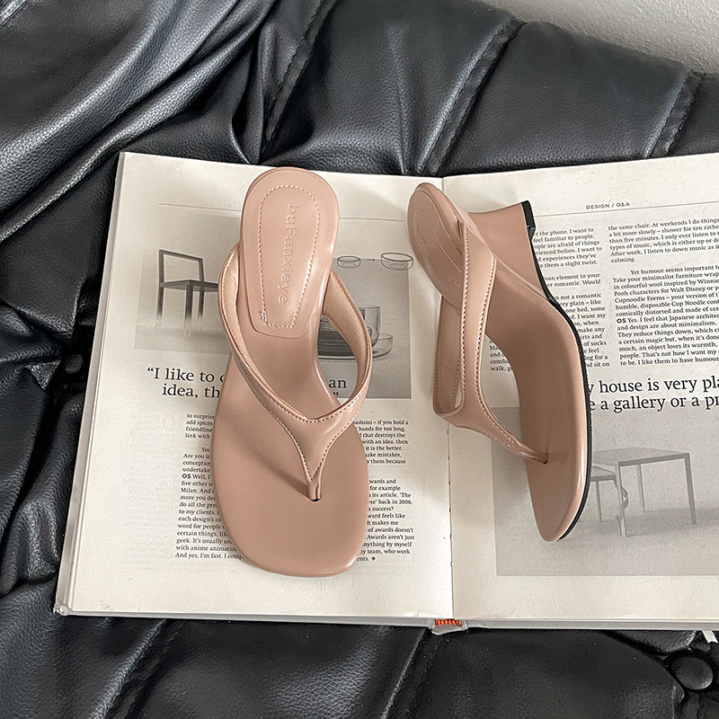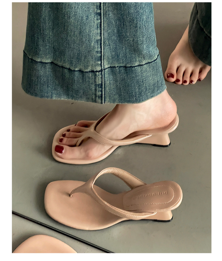 간단한 웨지 하이힐 슈즈 플립 플롭 플롭 플립 플롭 여성용 2025 년 여름 새로운 도착 올 매치 비치 샌들 트렌디스토어 가기
