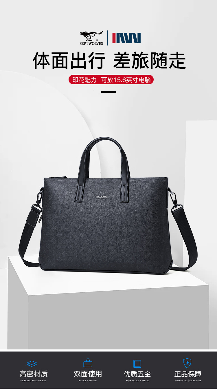 [Septwolves] 남성용 서류 가방 소가죽 핸드백 신작 남성용 가방 대용량 다기능 15.6inch 컴퓨터 가방스토어 가기