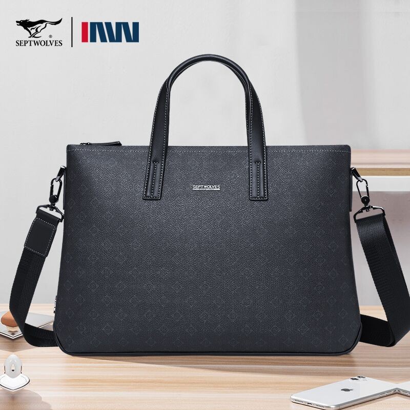 [Septwolves] 남성용 서류 가방 소가죽 핸드백 신작 남성용 가방 대용량 다기능 15.6inch 컴퓨터 가방