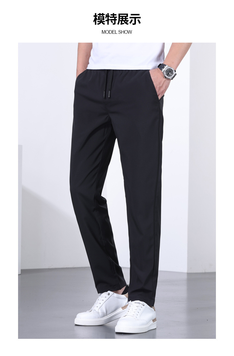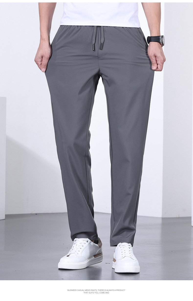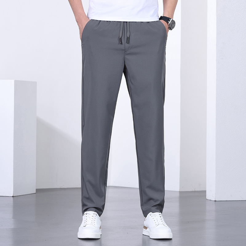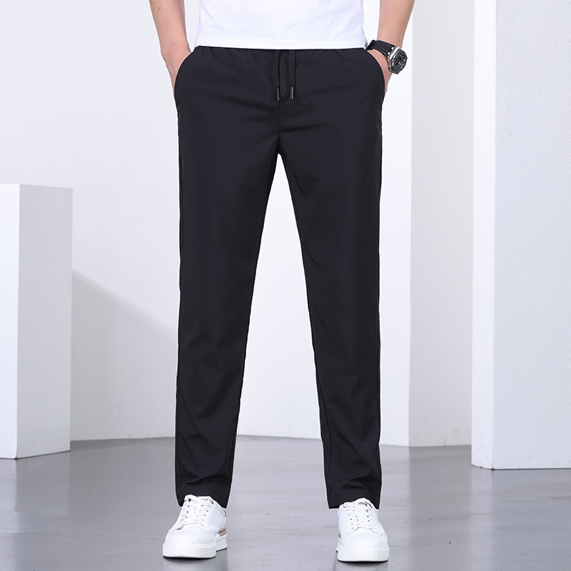 시원한 아이스 실크 바지 남자 여름 얇은 탄성 스트레이트 바지 울트라 얇은 빠른 건조 통기성 스포츠 캐주얼 바지스토어 가기