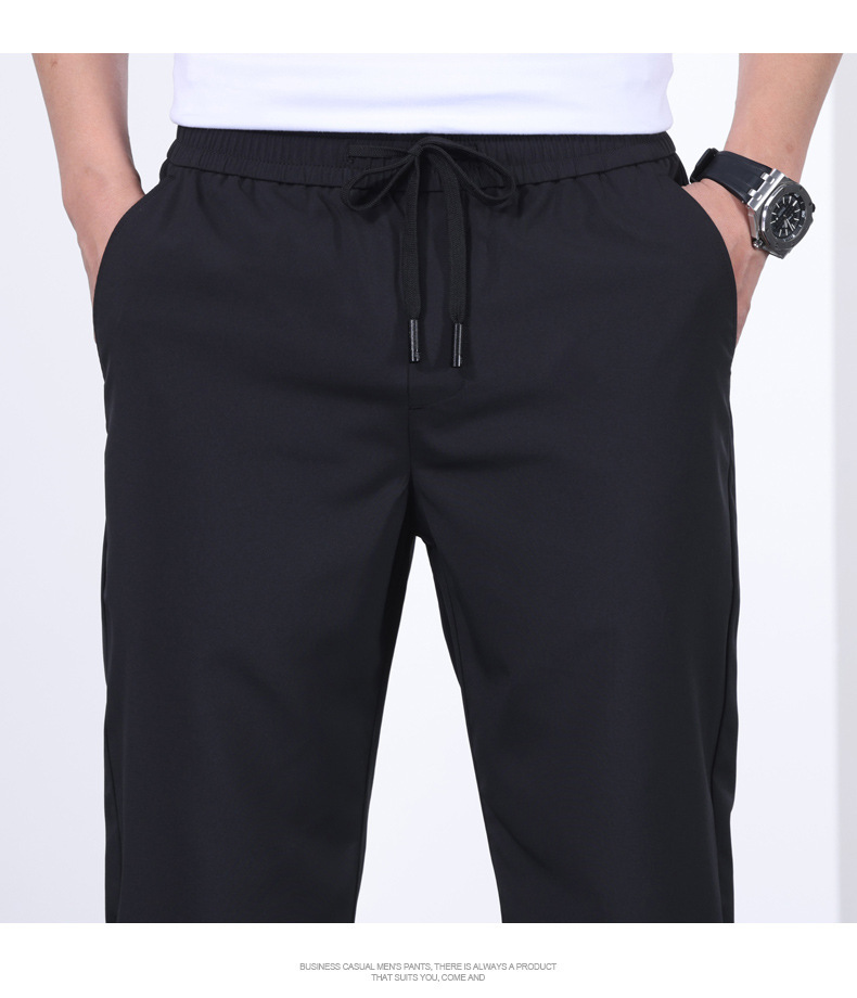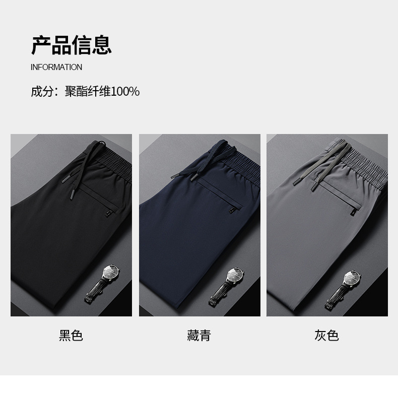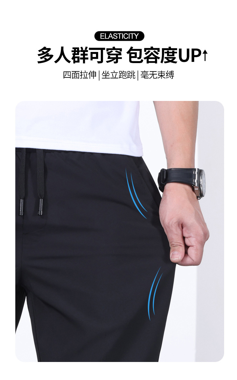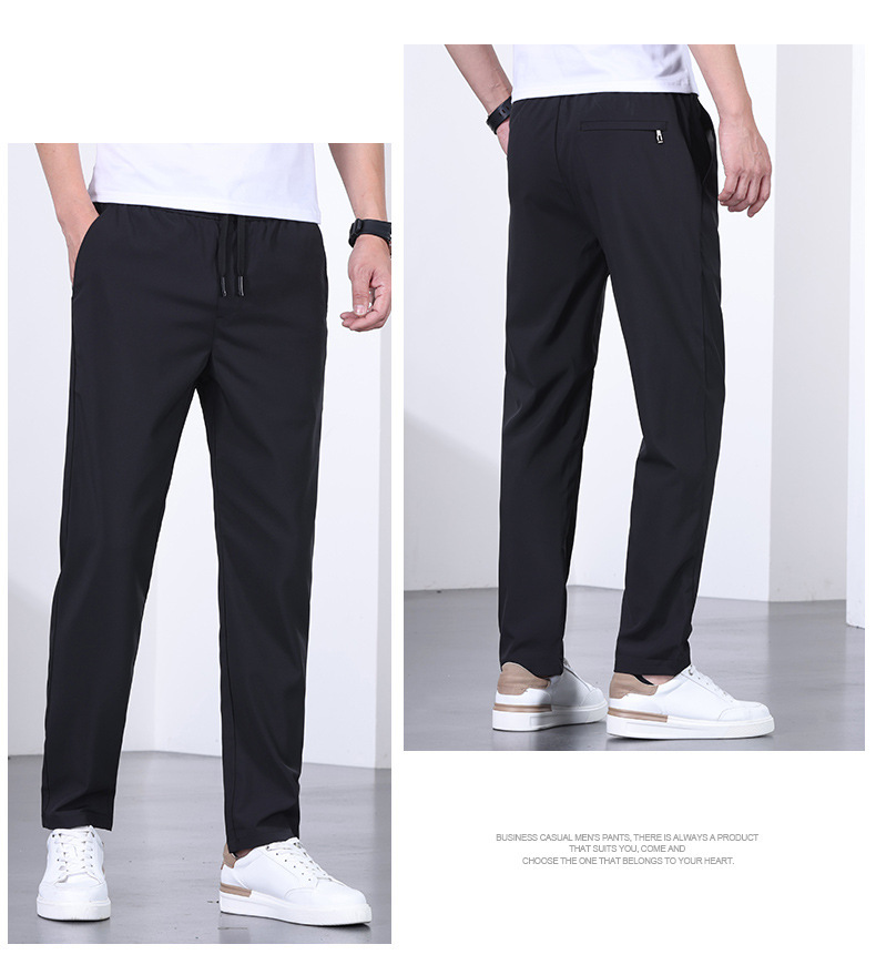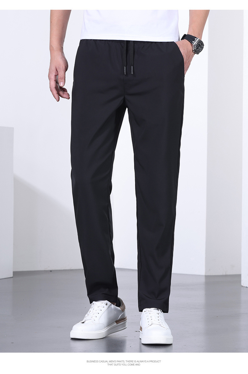 시원한 아이스 실크 바지 남자 여름 얇은 탄성 스트레이트 바지 울트라 얇은 빠른 건조 통기성 스포츠 캐주얼 바지스토어 가기