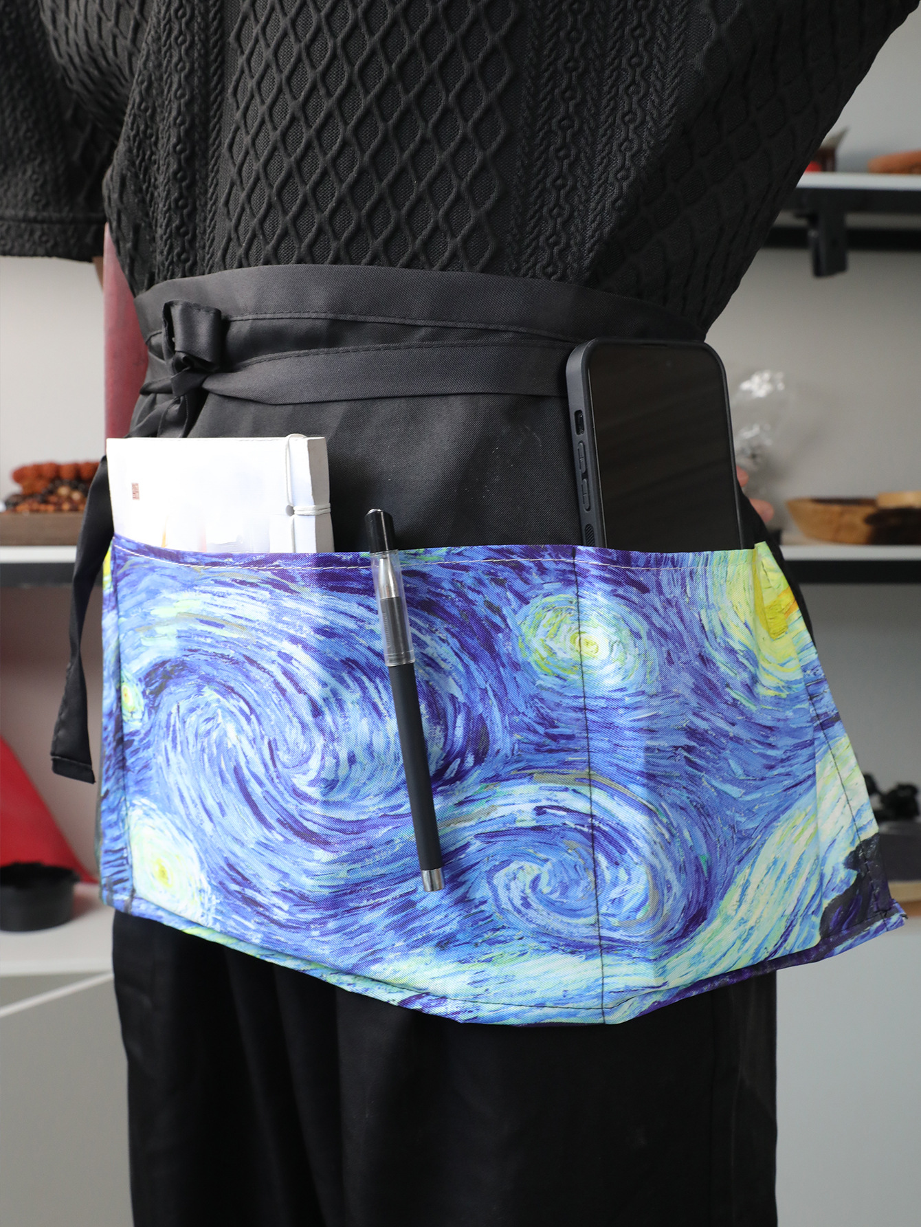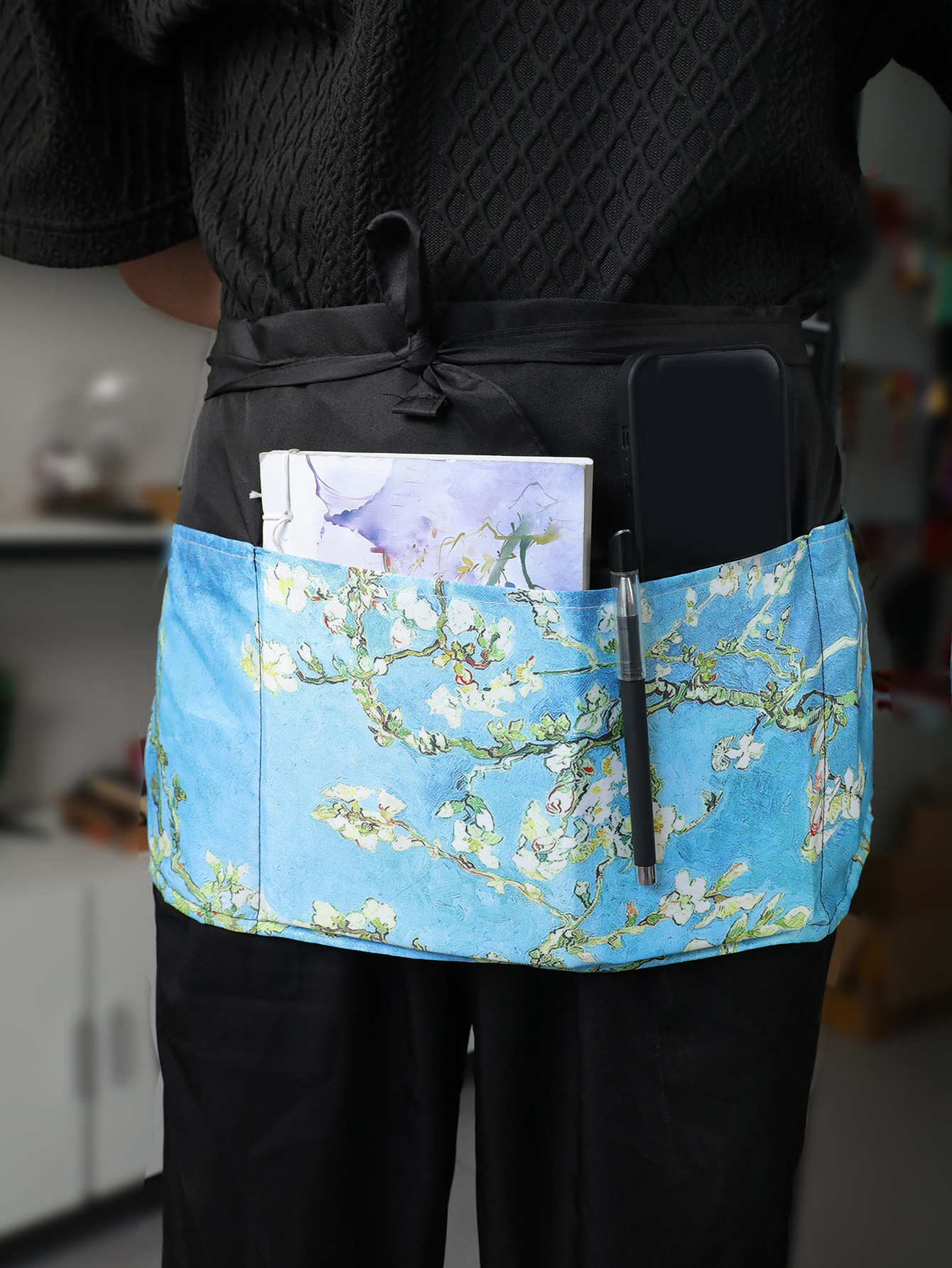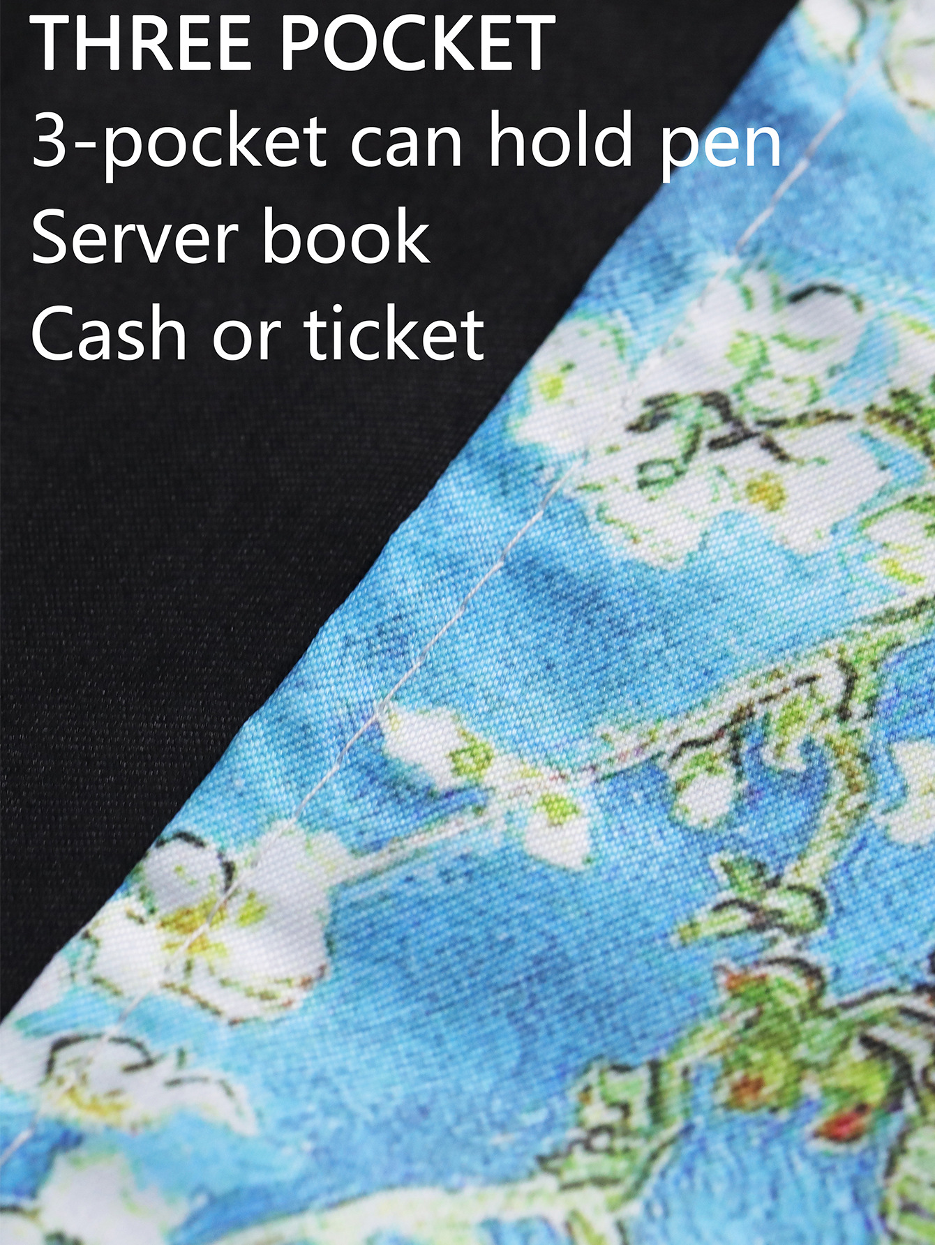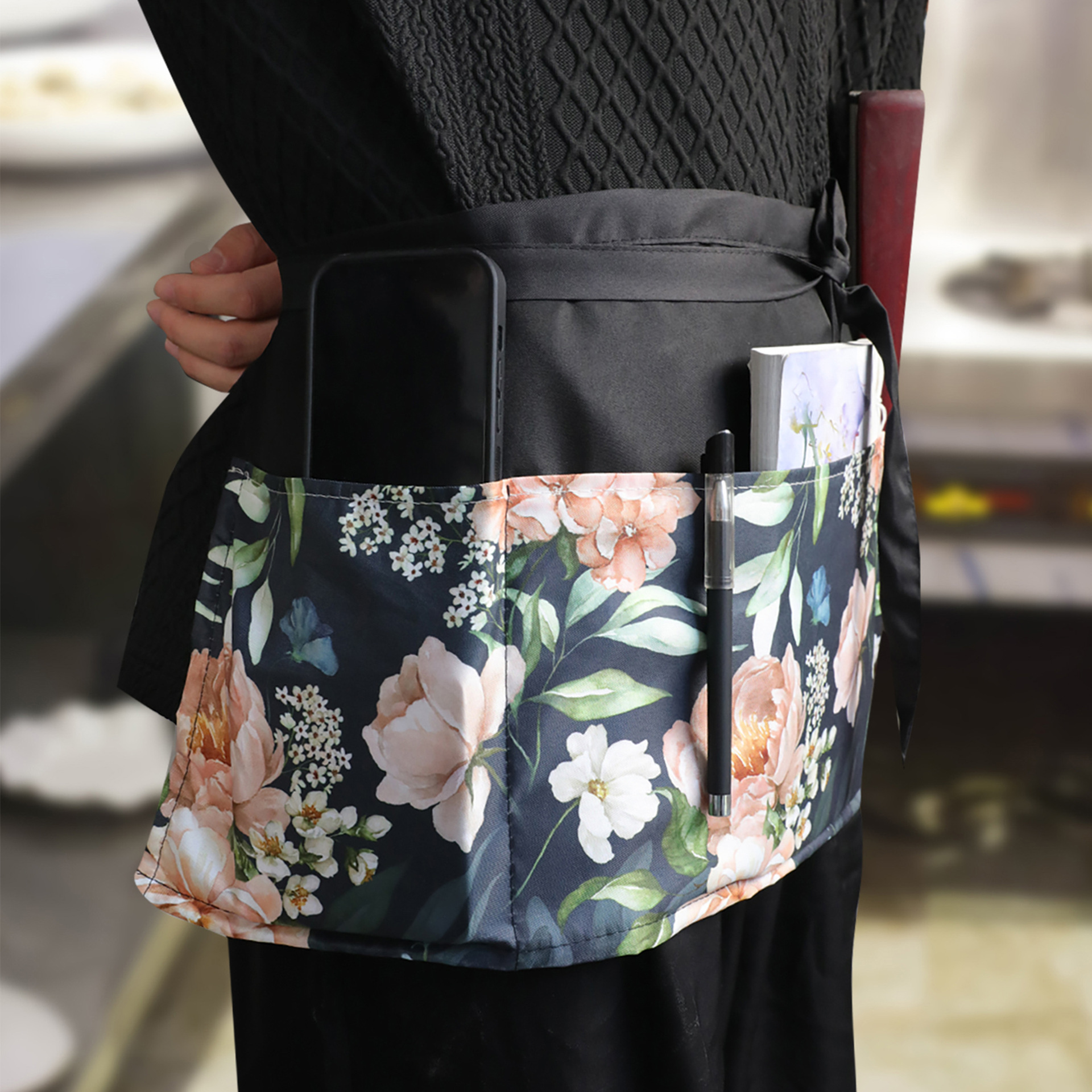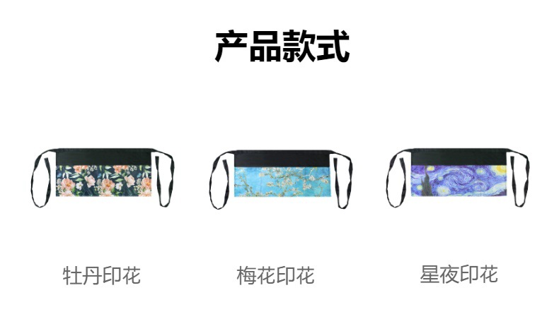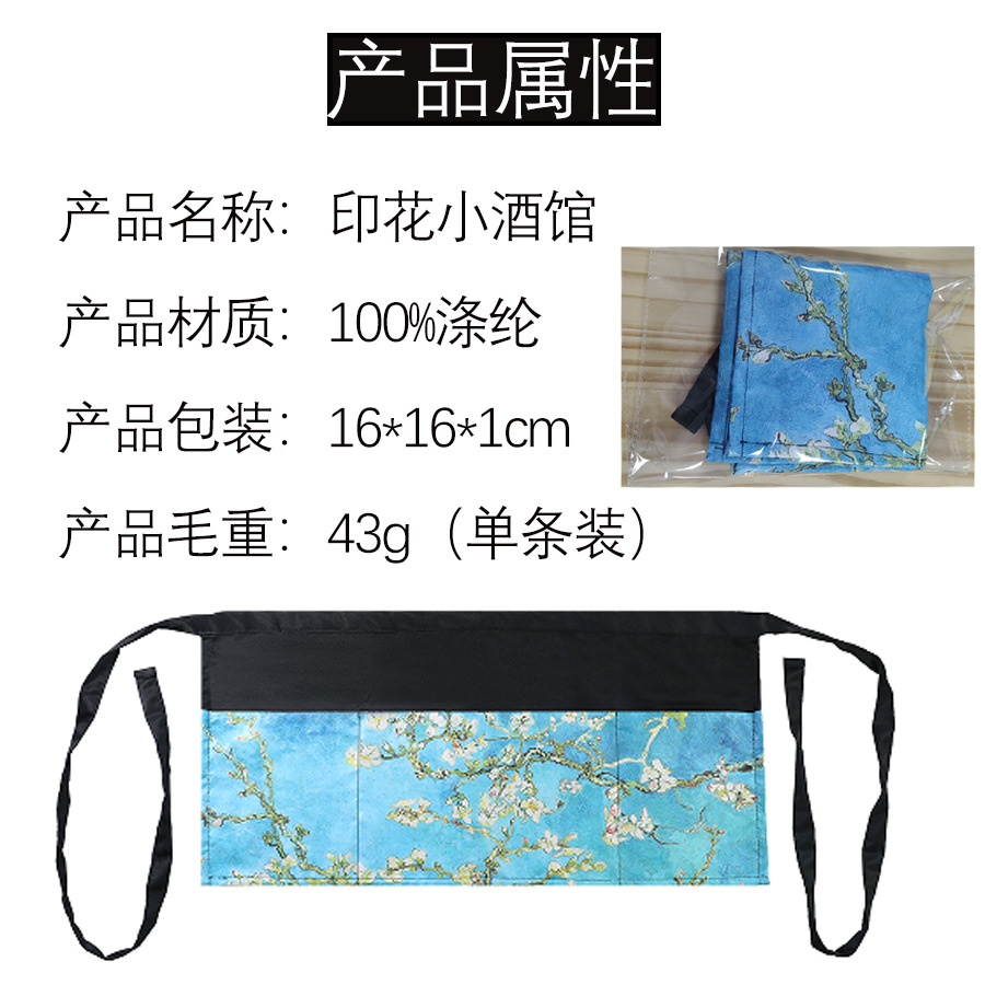 크로스보더 프린트 하프웨이스트 앞치마 폴리에스터 방수 및 방오 3포켓 레스토랑 카페 웨이터 프린트 앞치마스토어 가기