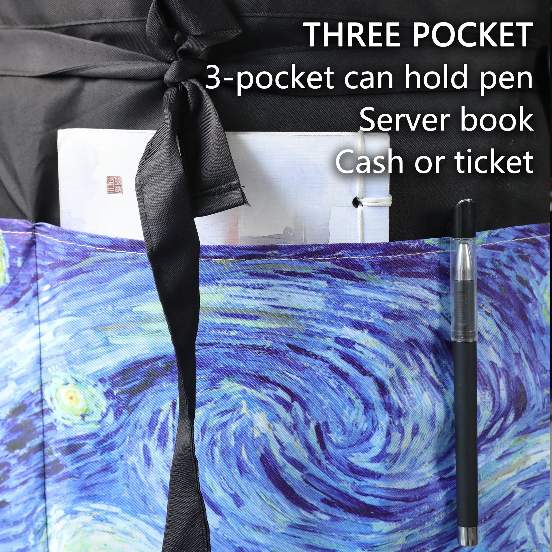 크로스보더 프린트 하프웨이스트 앞치마 폴리에스터 방수 및 방오 3포켓 레스토랑 카페 웨이터 프린트 앞치마