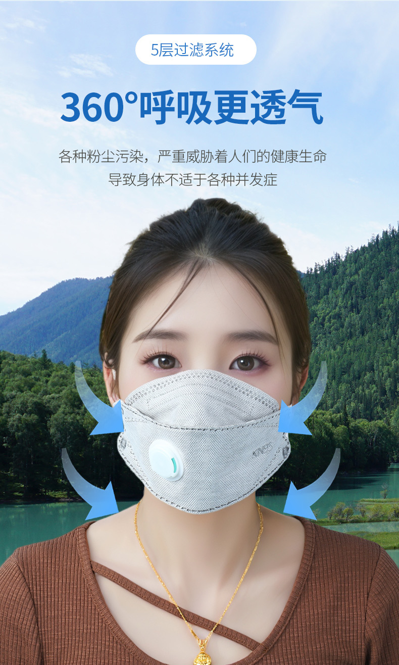 Kn95 호흡 밸브 통기성 먼지 마스크 일회용 활성탄 산업 먼지 3 차원 보호 마스크 도매스토어 가기