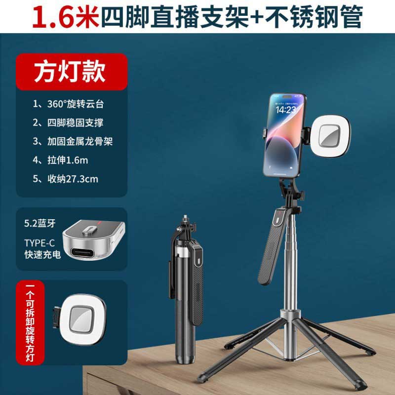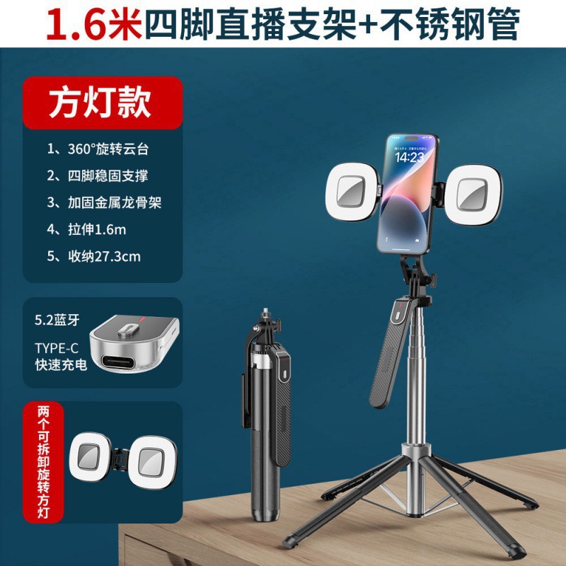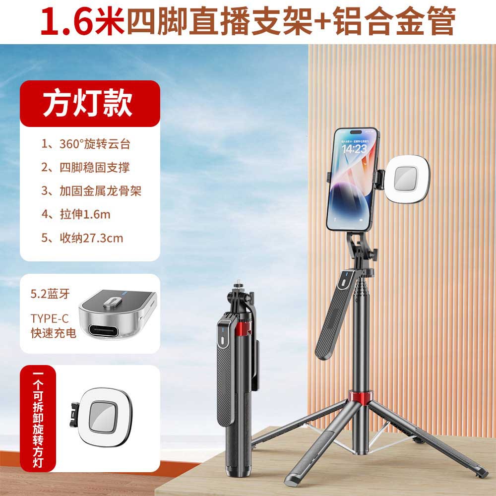 P185MINI 알루미늄 합금 4피트 블루투스 셀카봉 360 ° 회전식 휴대용 PTZ 플로어 라이브 방송 스탠드