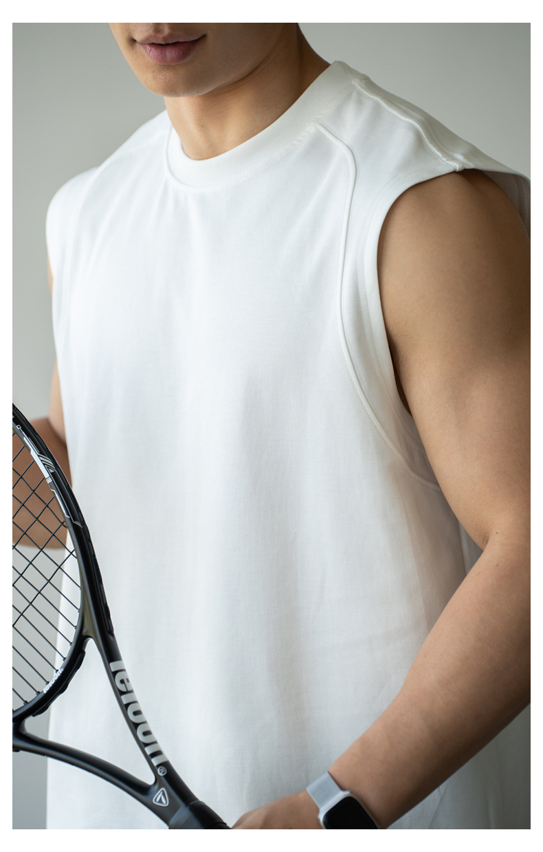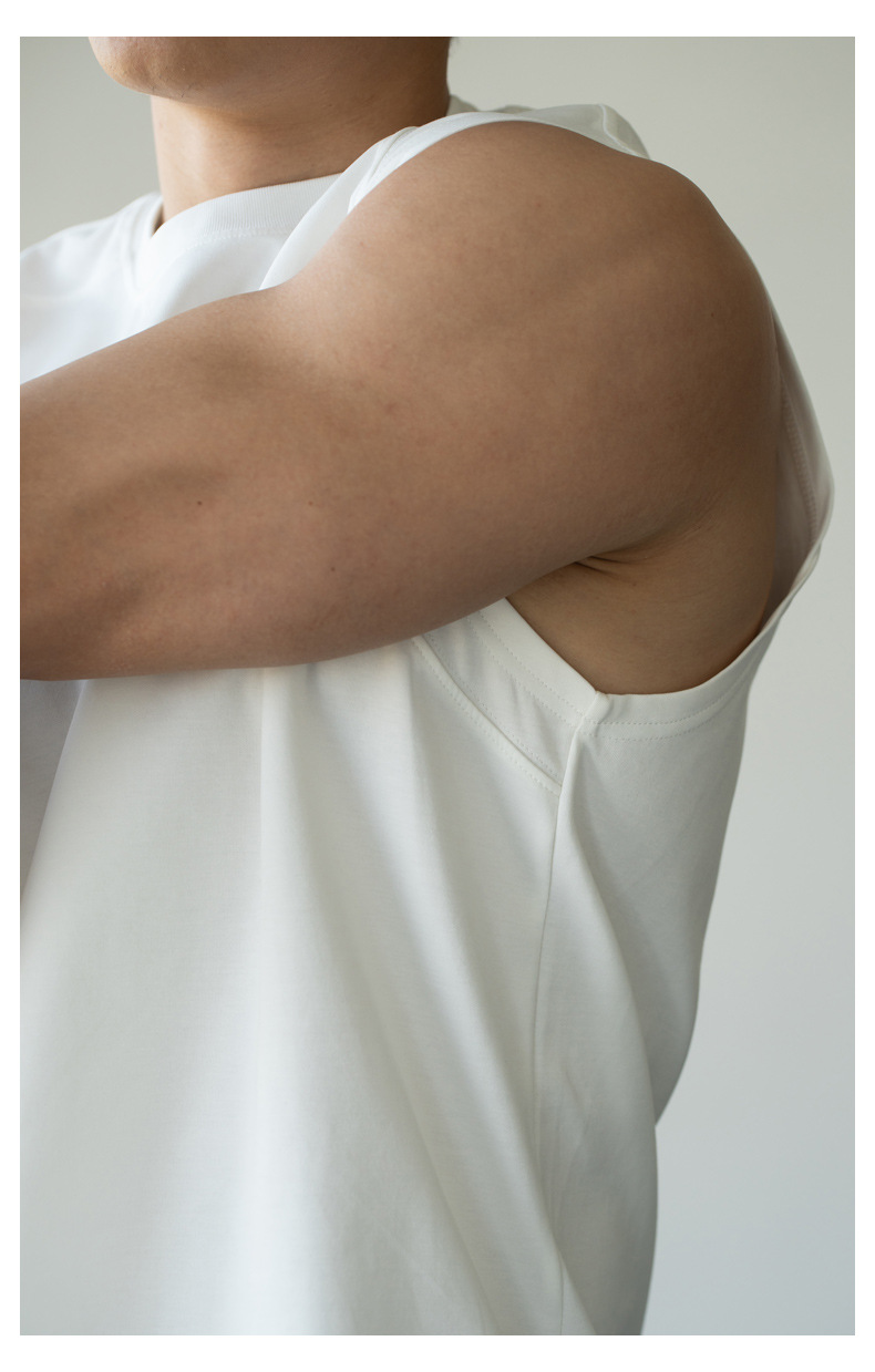 아메리칸 스타일 쿨 아이스 실크 베셋 티셔츠 남자 2025 년 여름 새로운 캐주얼 어깨 민소매 스포츠 탑 티셔츠스토어 가기