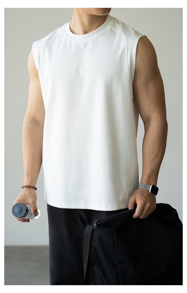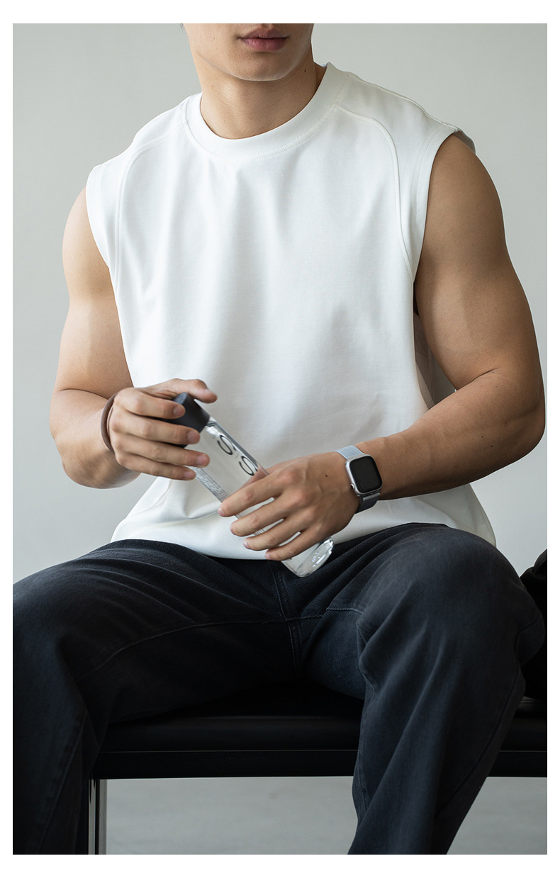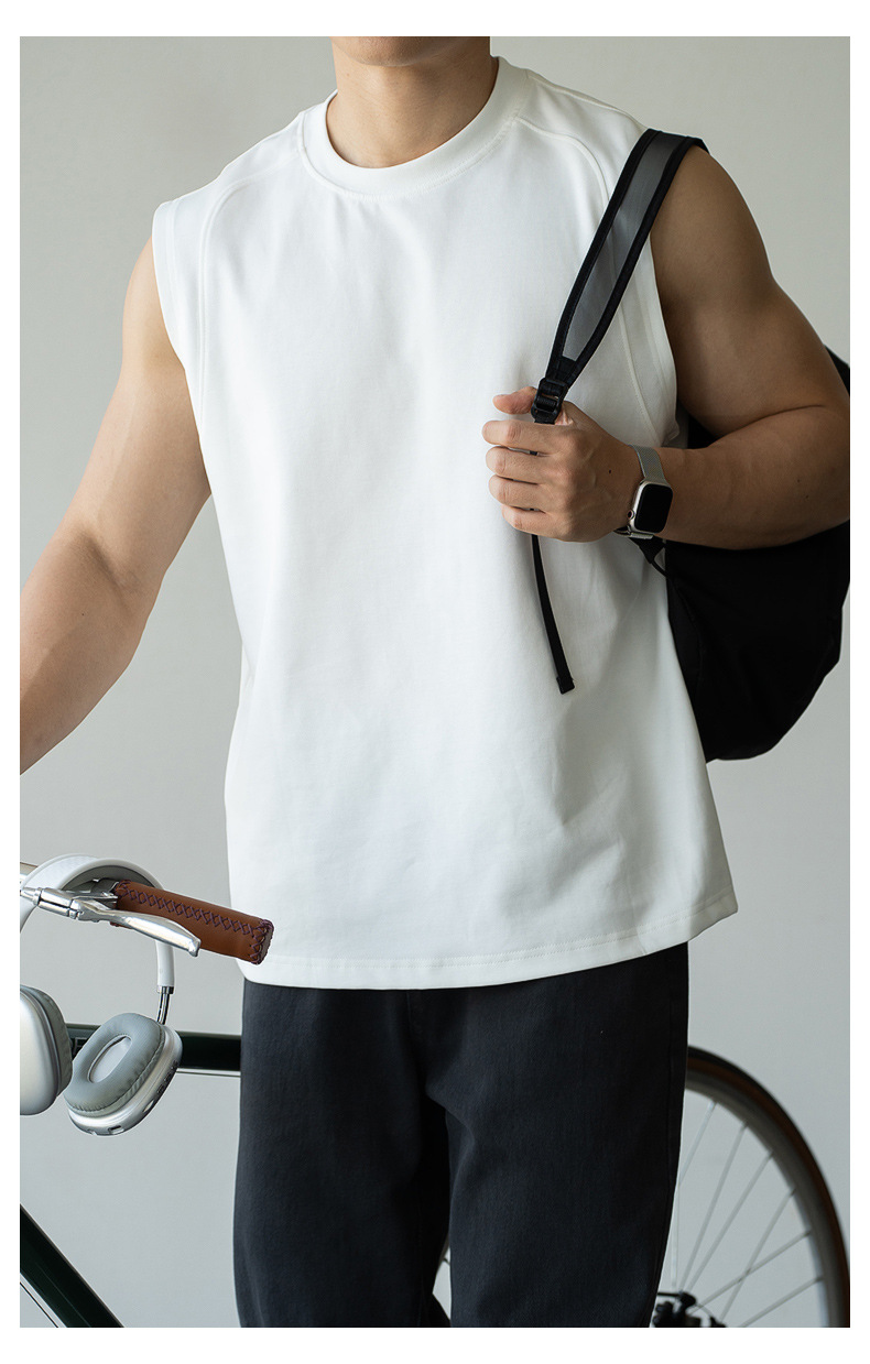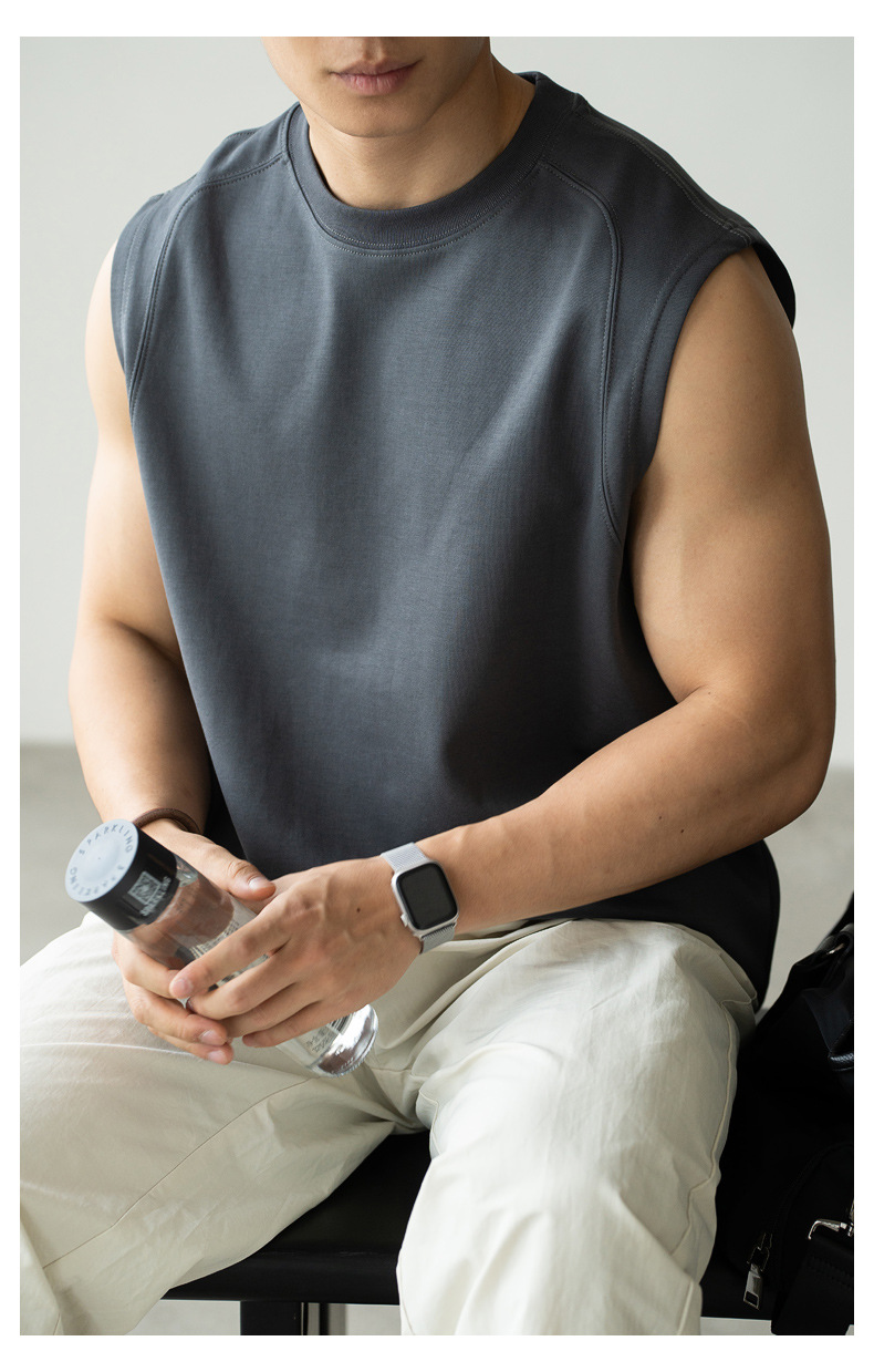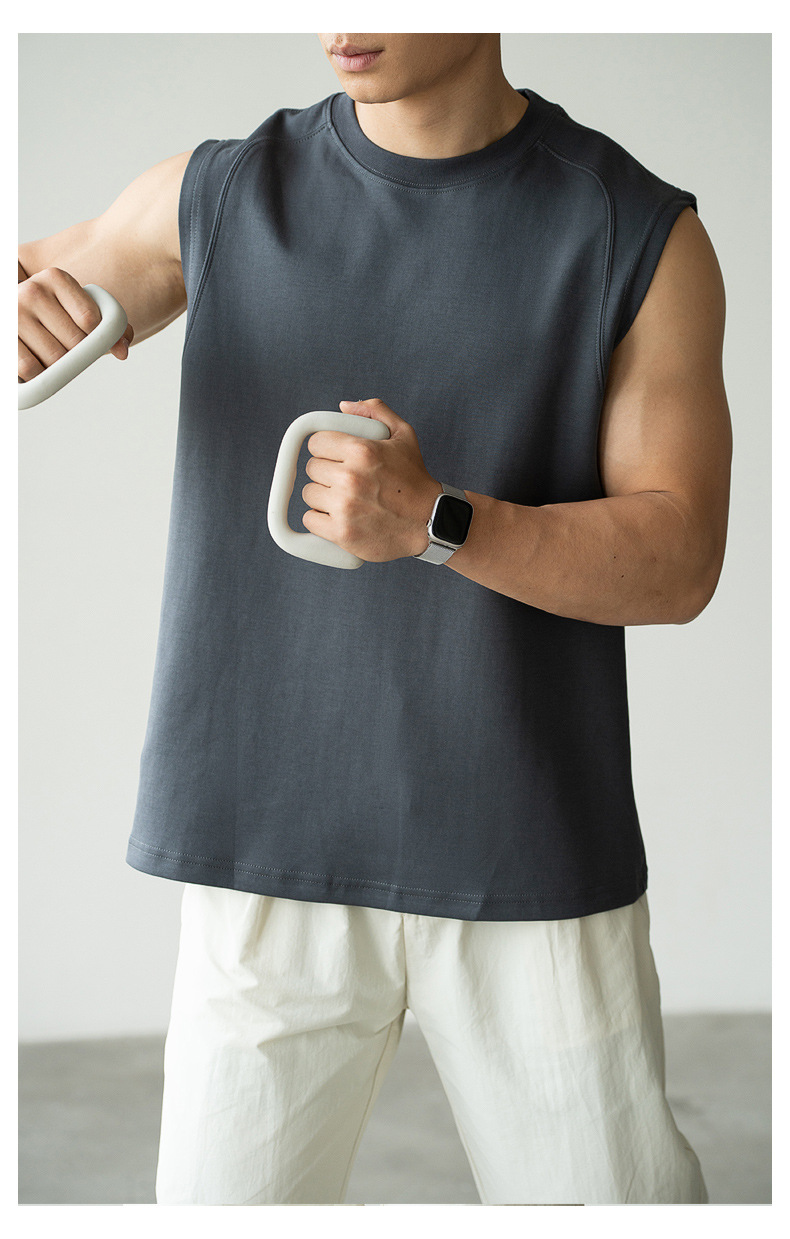 아메리칸 스타일 쿨 아이스 실크 베셋 티셔츠 남자 2025 년 여름 새로운 캐주얼 어깨 민소매 스포츠 탑 티셔츠
