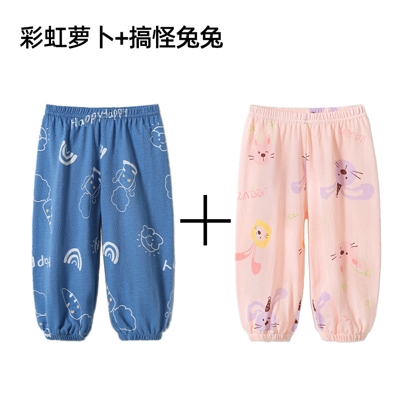 Jingqi 아기 모기 방지 바지 여름 얇은 남성과 여성의 아기 바지 야외 태양 보호 랜턴 바지 어린이 바지