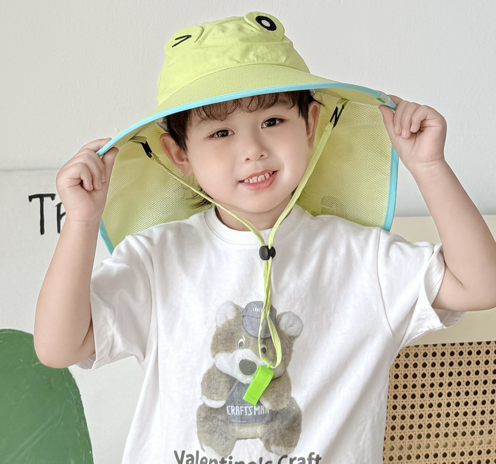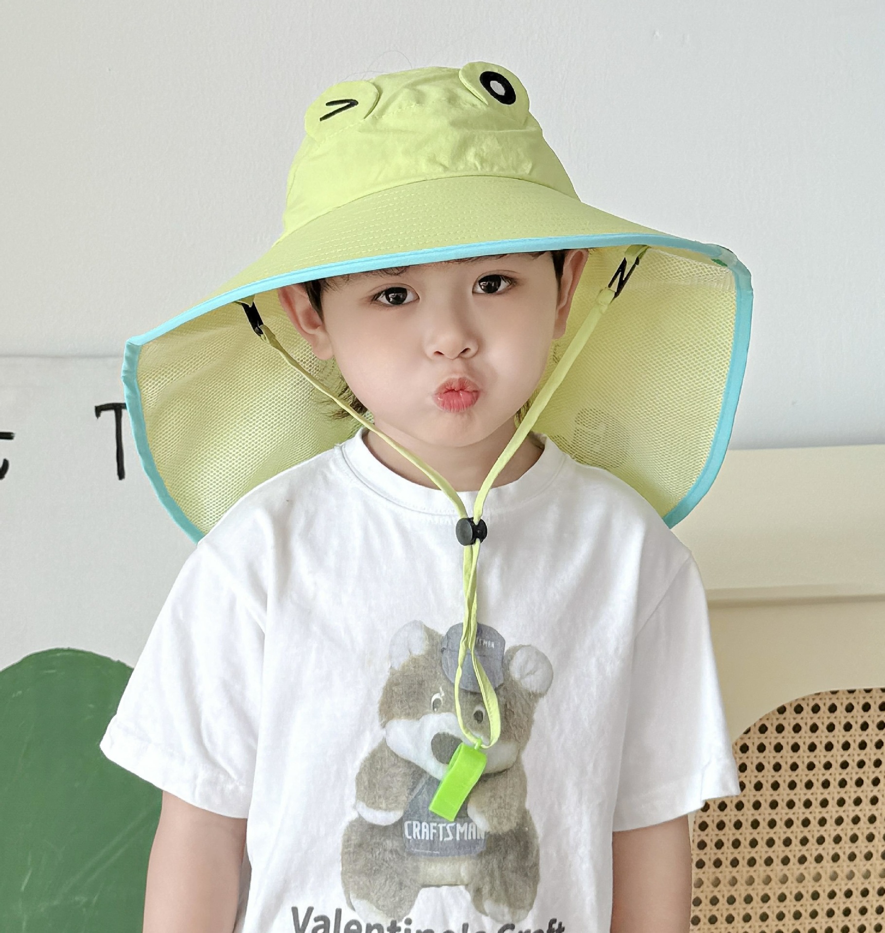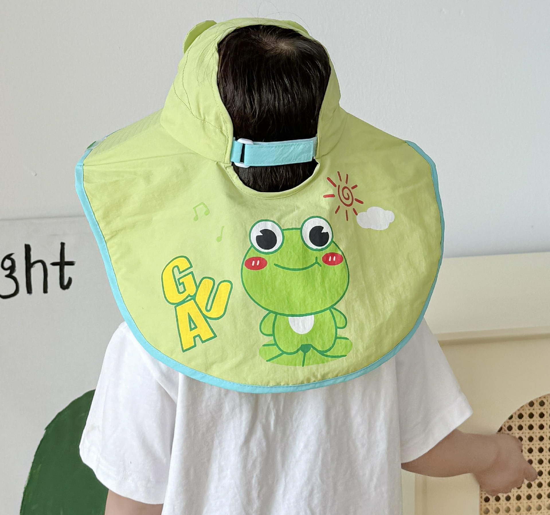 만화 귀여운 작은 개구리 어린이 태양 모자 2025 여름 큰 챙 빈 탑 목도리 태양 모자 야외 맞춤 모자