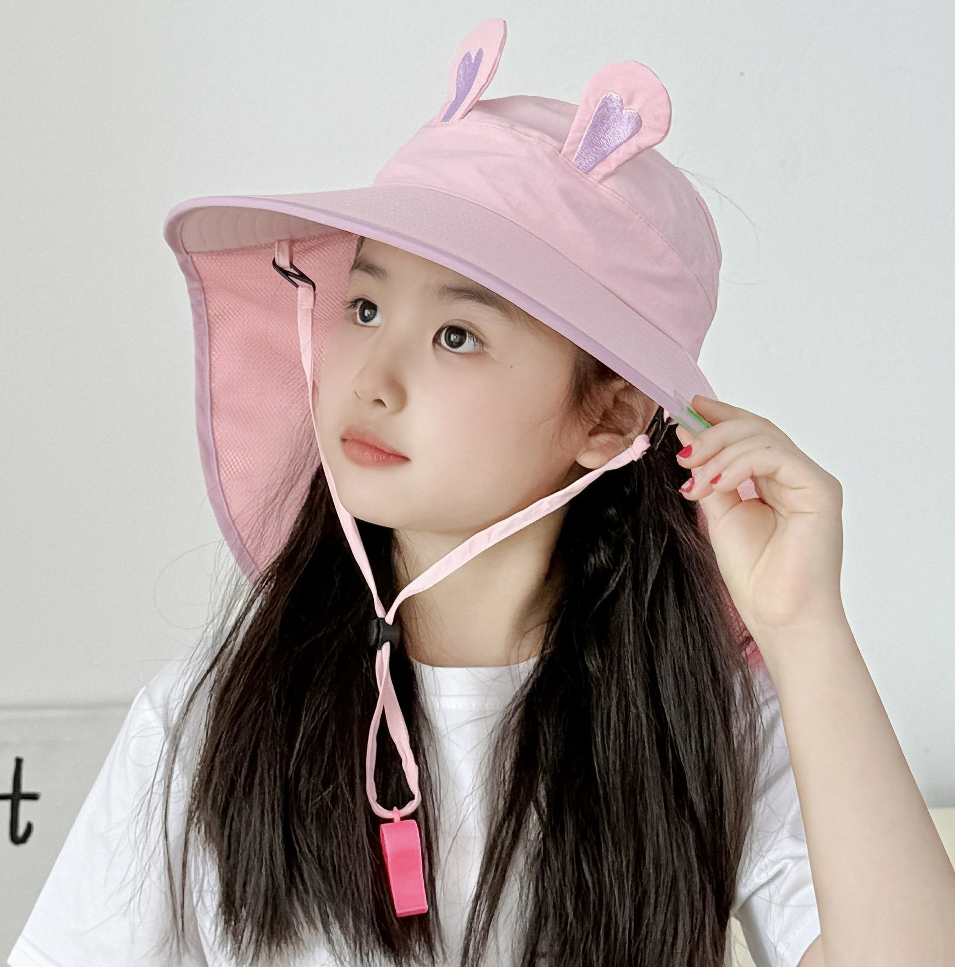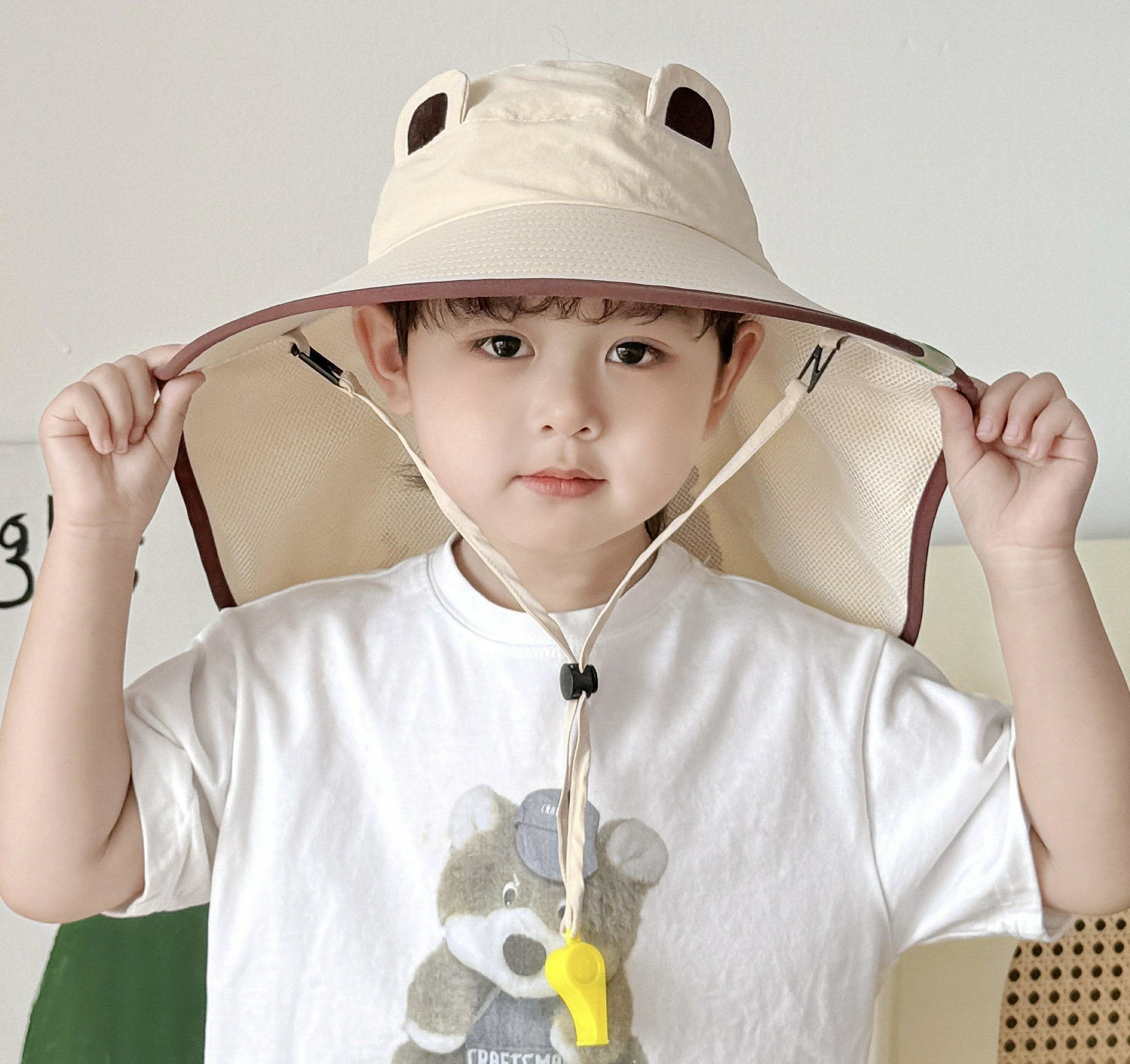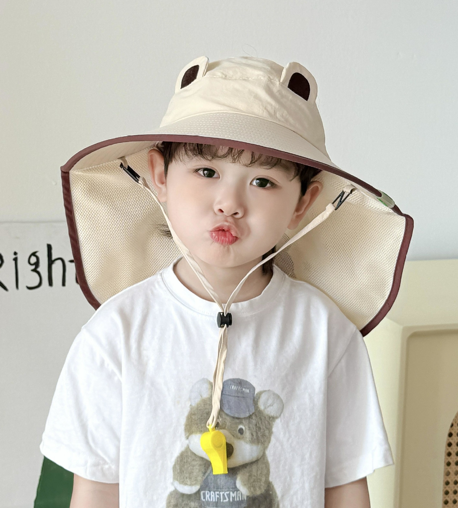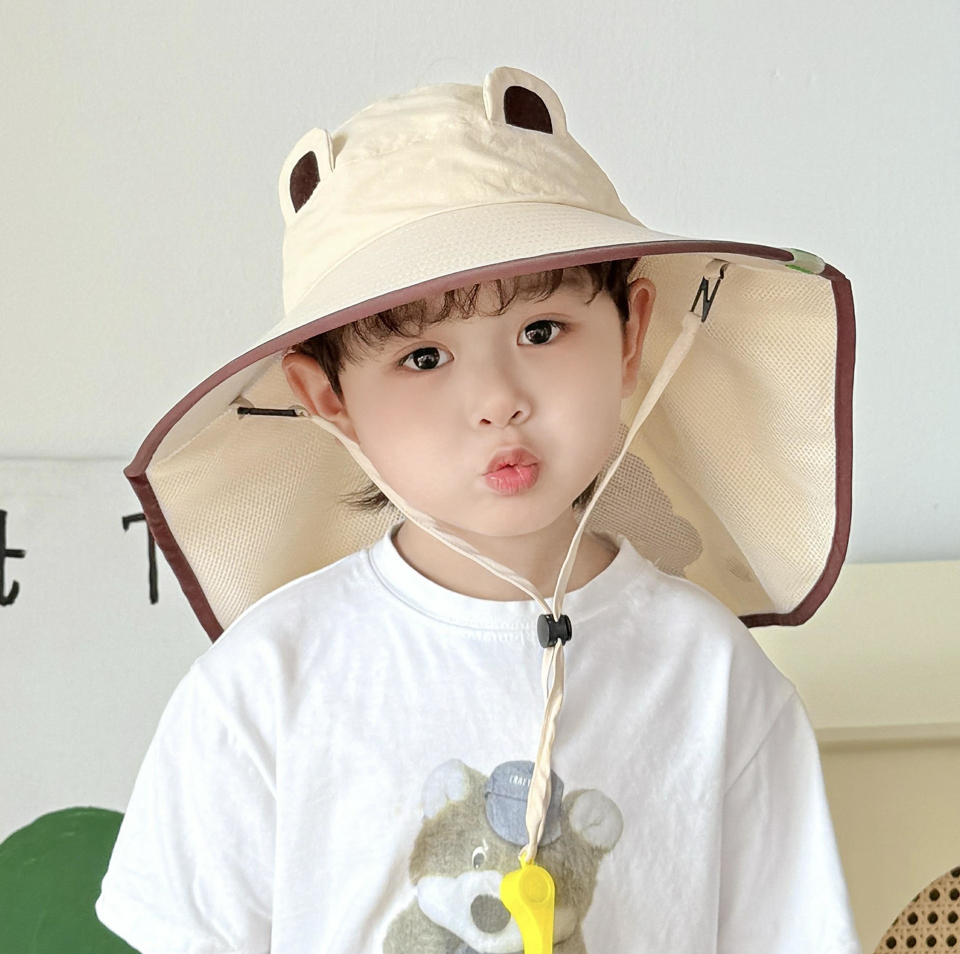 만화 귀여운 작은 개구리 어린이 태양 모자 2025 여름 큰 챙 빈 탑 목도리 태양 모자 야외 맞춤 모자