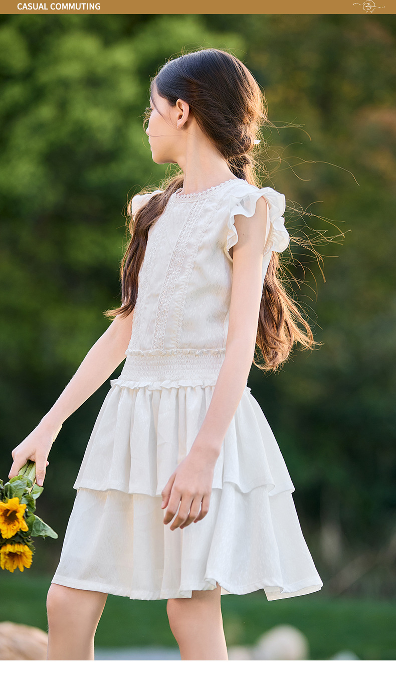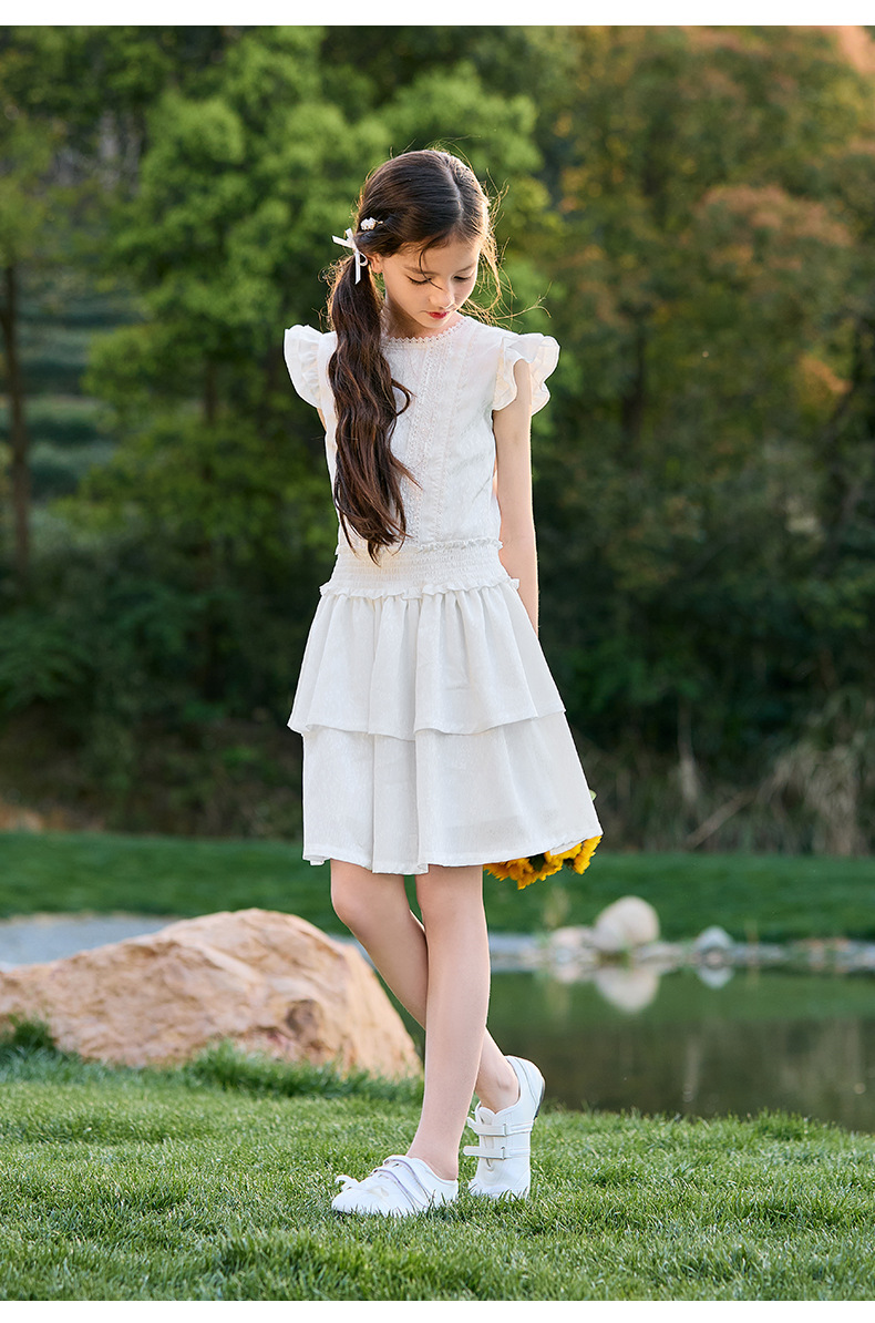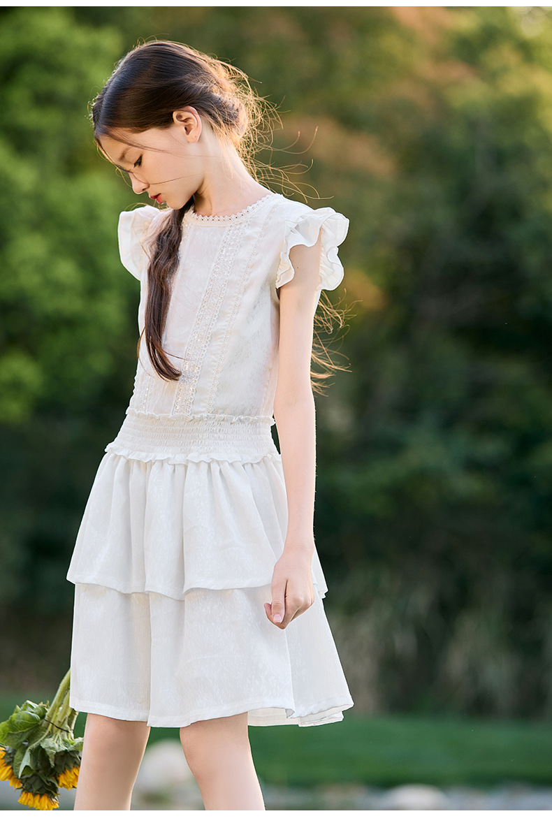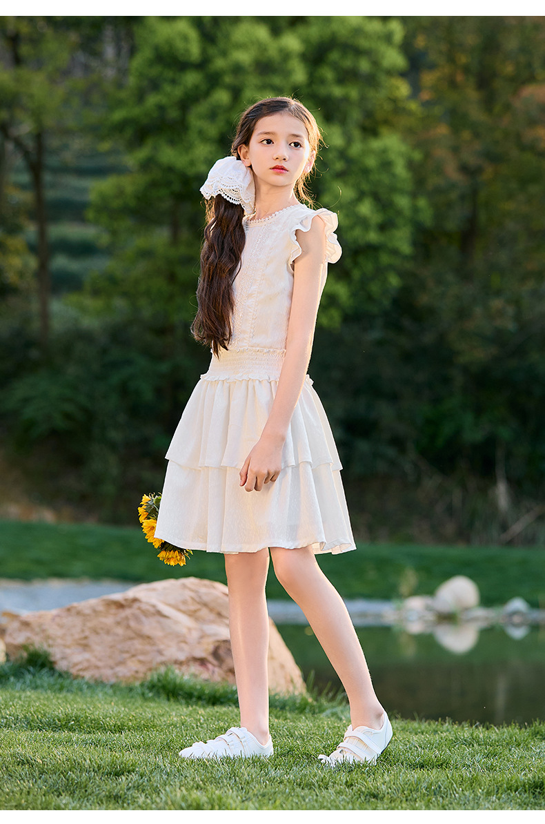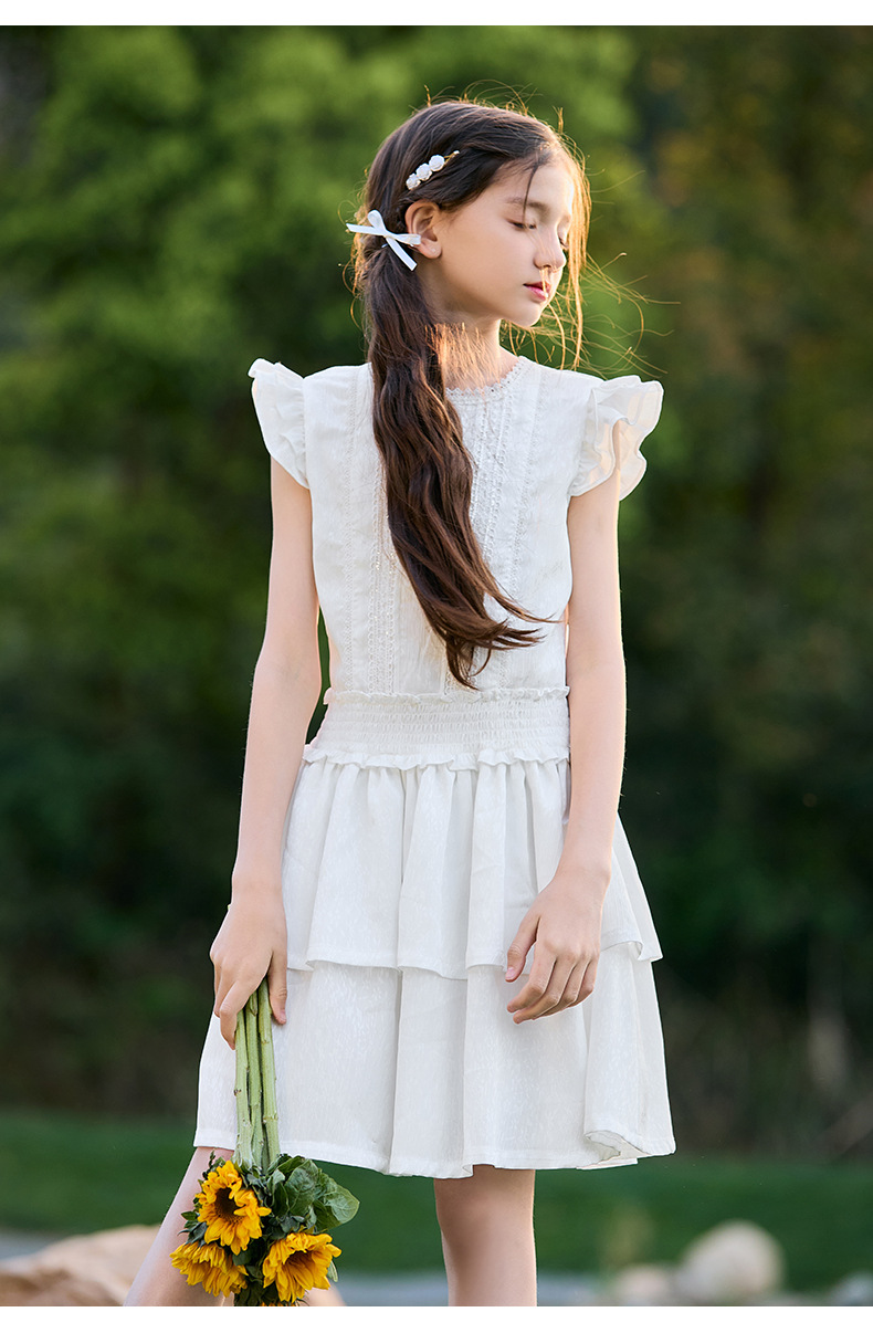 여아 작은 플라잉 슬리브 케이크 스커트 2025 여름 신작 중대형 어린이 프렌치 소녀 드레스 여름 스타일